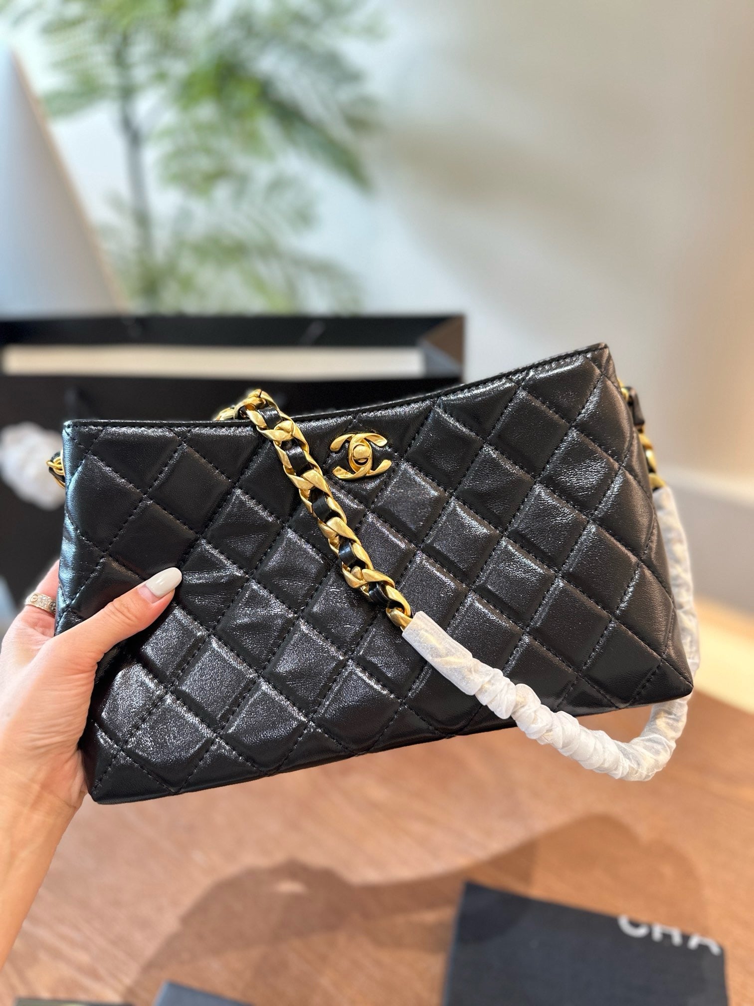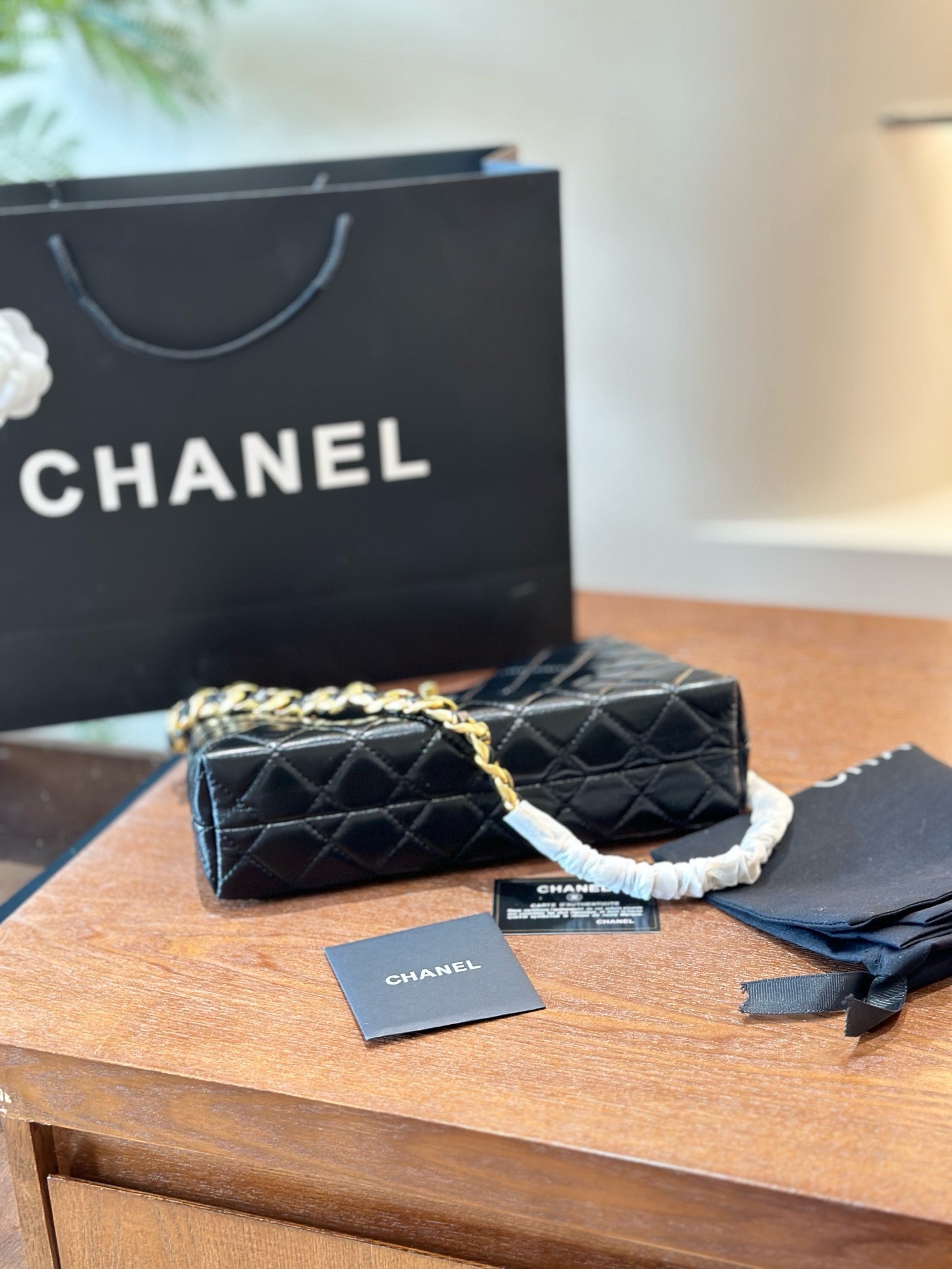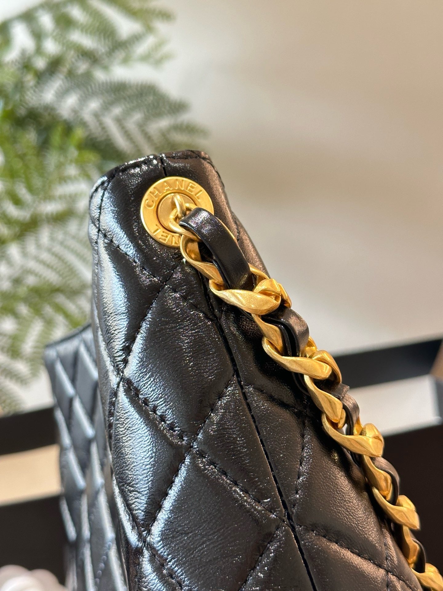 Shiny Calfskin & Gold-Tone Metal
