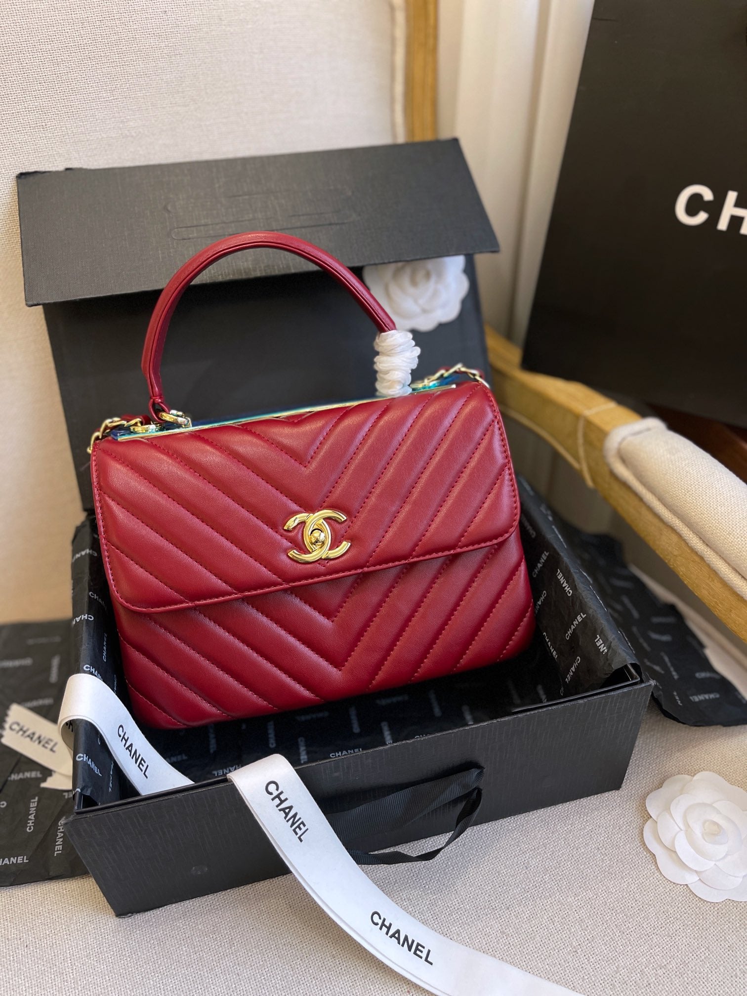 CC631 Flap Bag with Top Handle / 6.6 × 9.8 × 3.9 in
