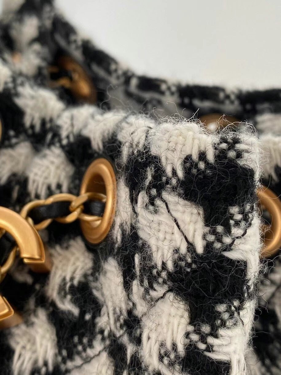 Wool Tweed & Calfskin & Gold-Tone Metal