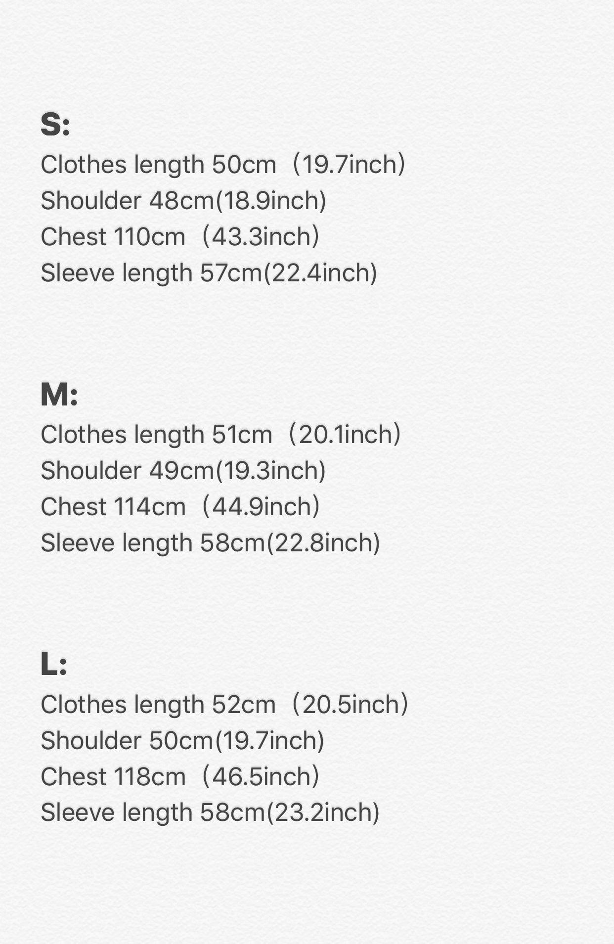 3. Measurements:S,M,L