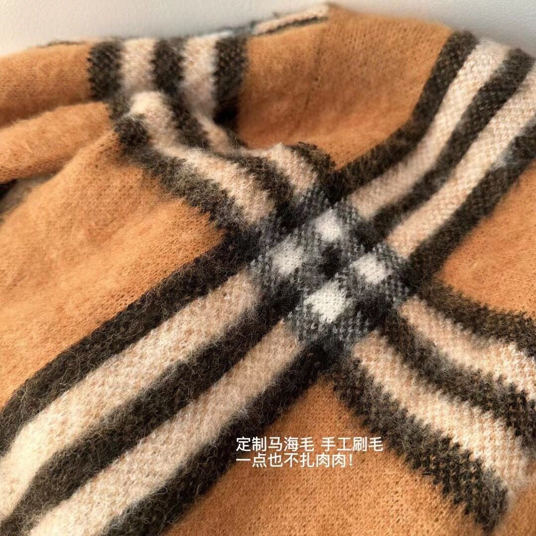 CLTH356 Check Mohair Wool Blend Cardigan / SizeS/M/L
