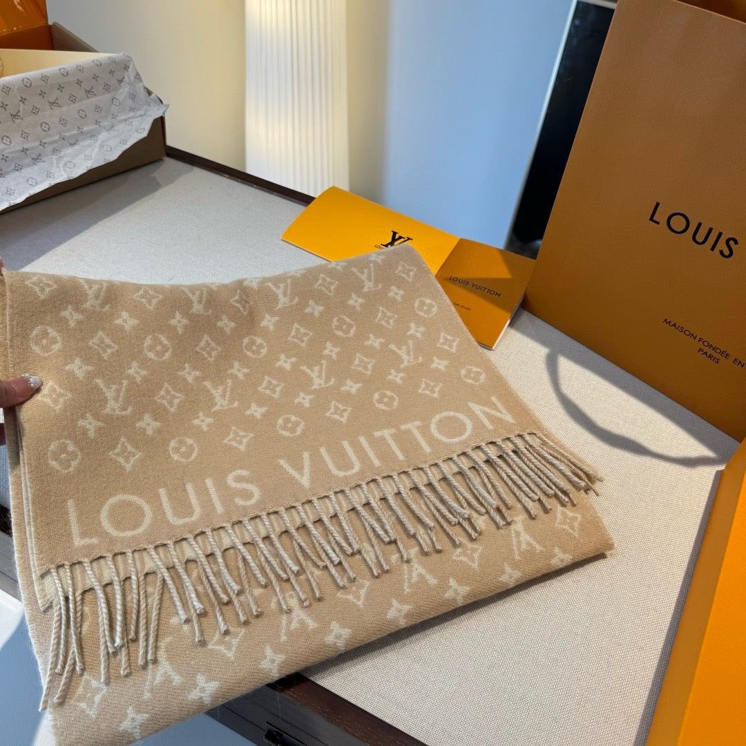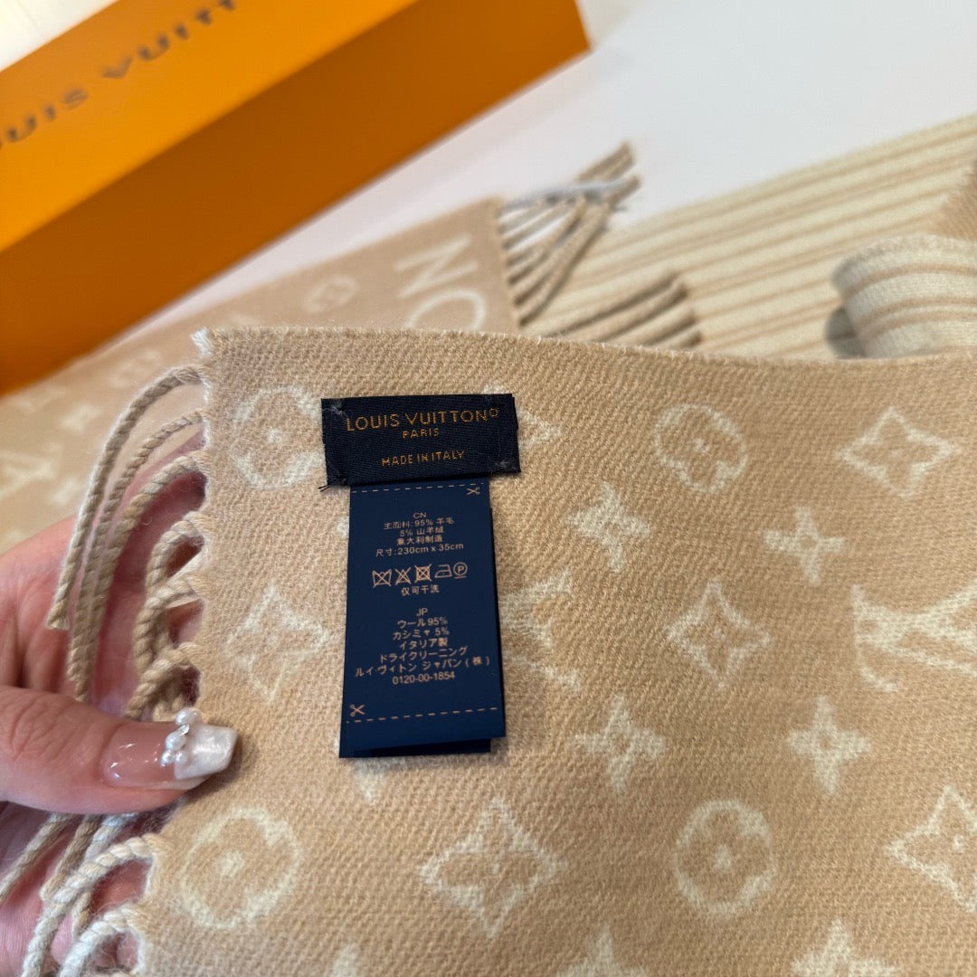 The versatile, stylish My Neverfull scarf adds a touch of classic sophistication to any winter outfit. Styled in a plush, warm wool-cashmere blend, it pairs the famous Monogram pattern with the iconic Neverfull stripes from the Louis Vuitton ready-to-wear range. A signature “Articles de Voyage” patch recalls the House’s history as a maker of exceptional travel accessories.
