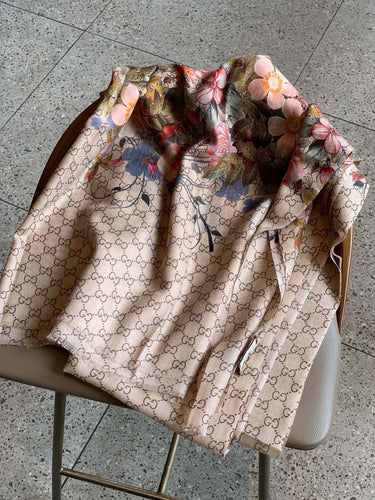 CLTH360 GG Flora Print Cashmere Scarf / 43.3x78.7inch