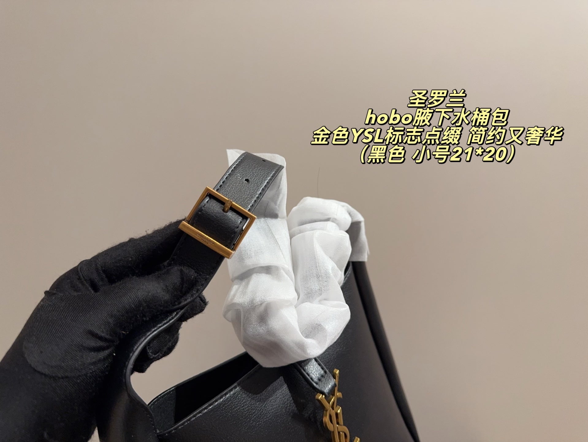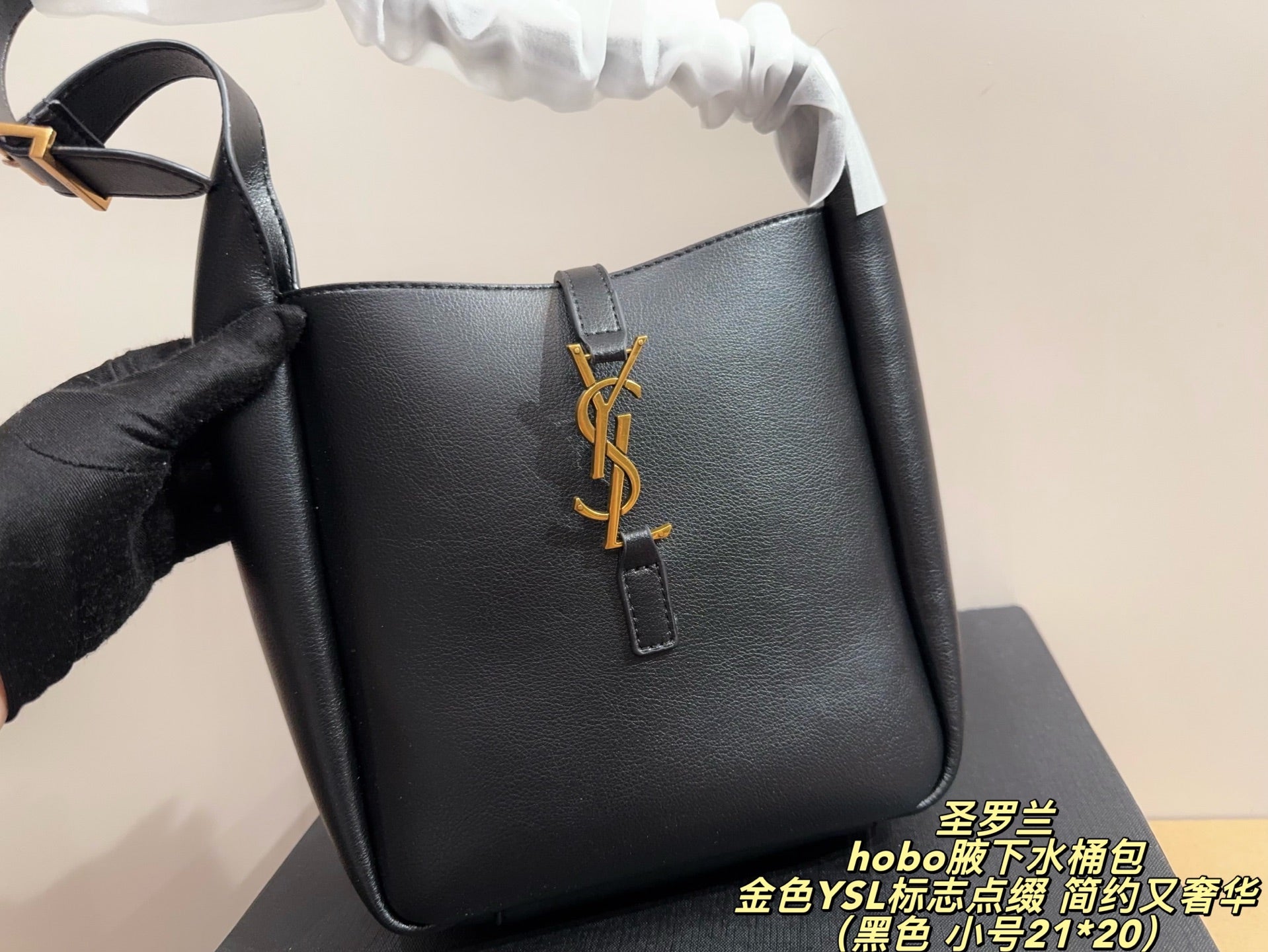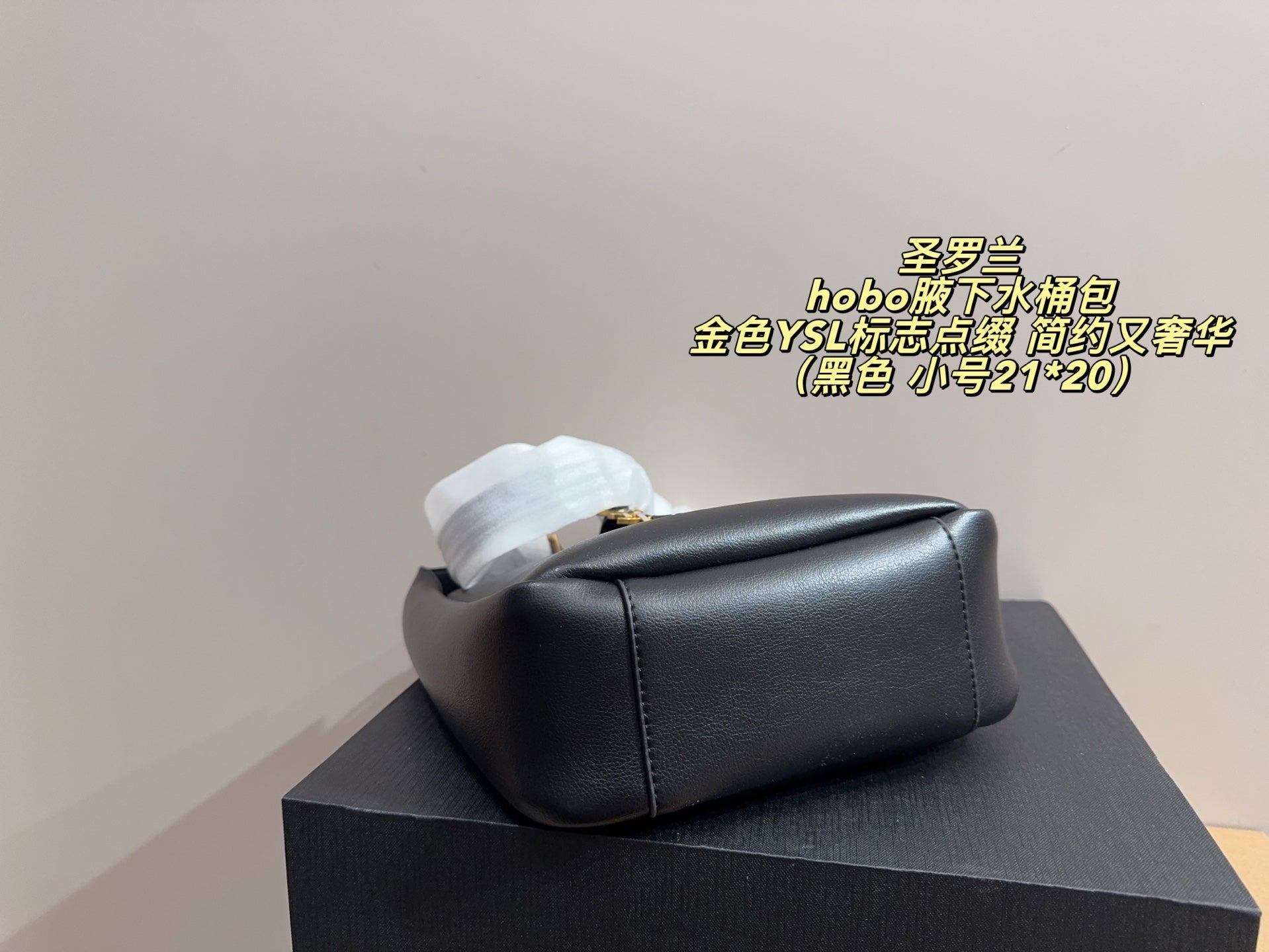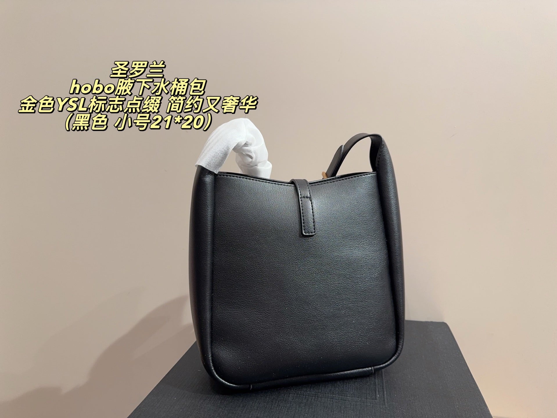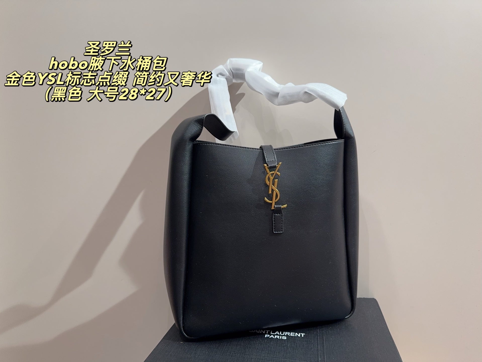 The Saint Laurent Le 5 à 7 Soft Cis the epitome of understated luxury. Crafted from buttery soft grained calfskin, it features the iconic gold-tone YSL logo hardware that doubles as a decorative accent. The design is minimalist yet functional, with a slouchy silhouette that sits perfectly under the arm. The interior includes a central compartment for better organization, ensuring your essentials stay tidy. This image showcases both the spacious Large size (28x27cm) and the compact Small size (21x20cm).