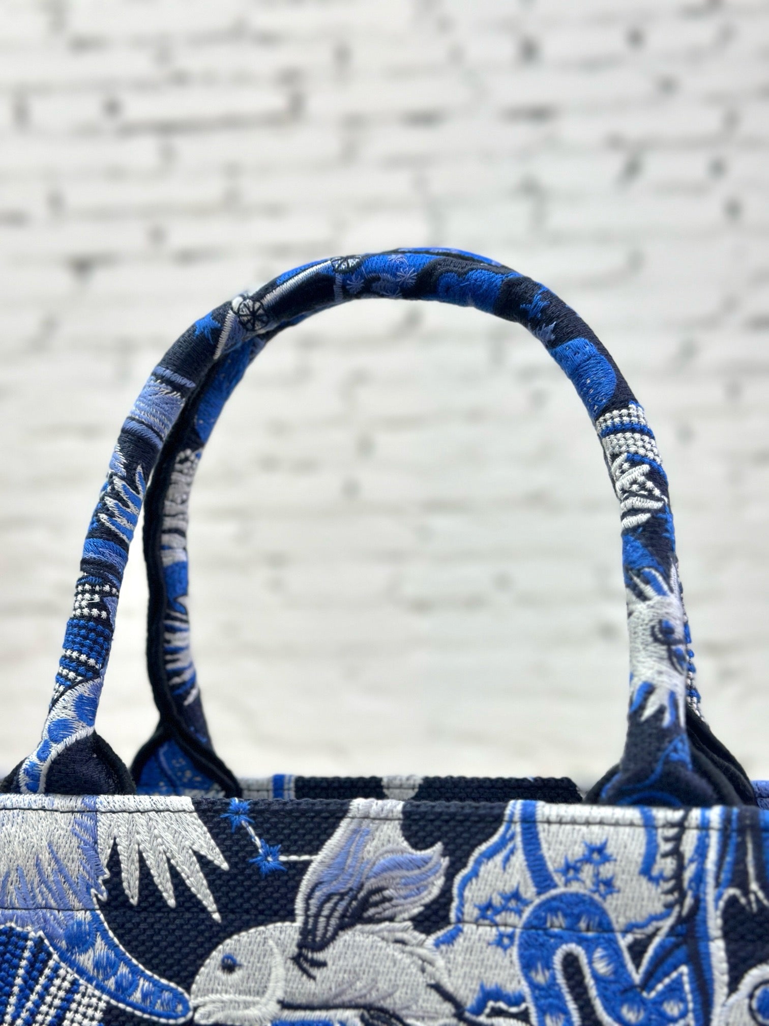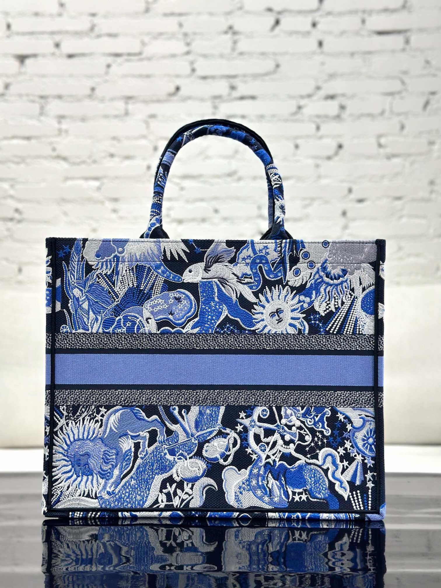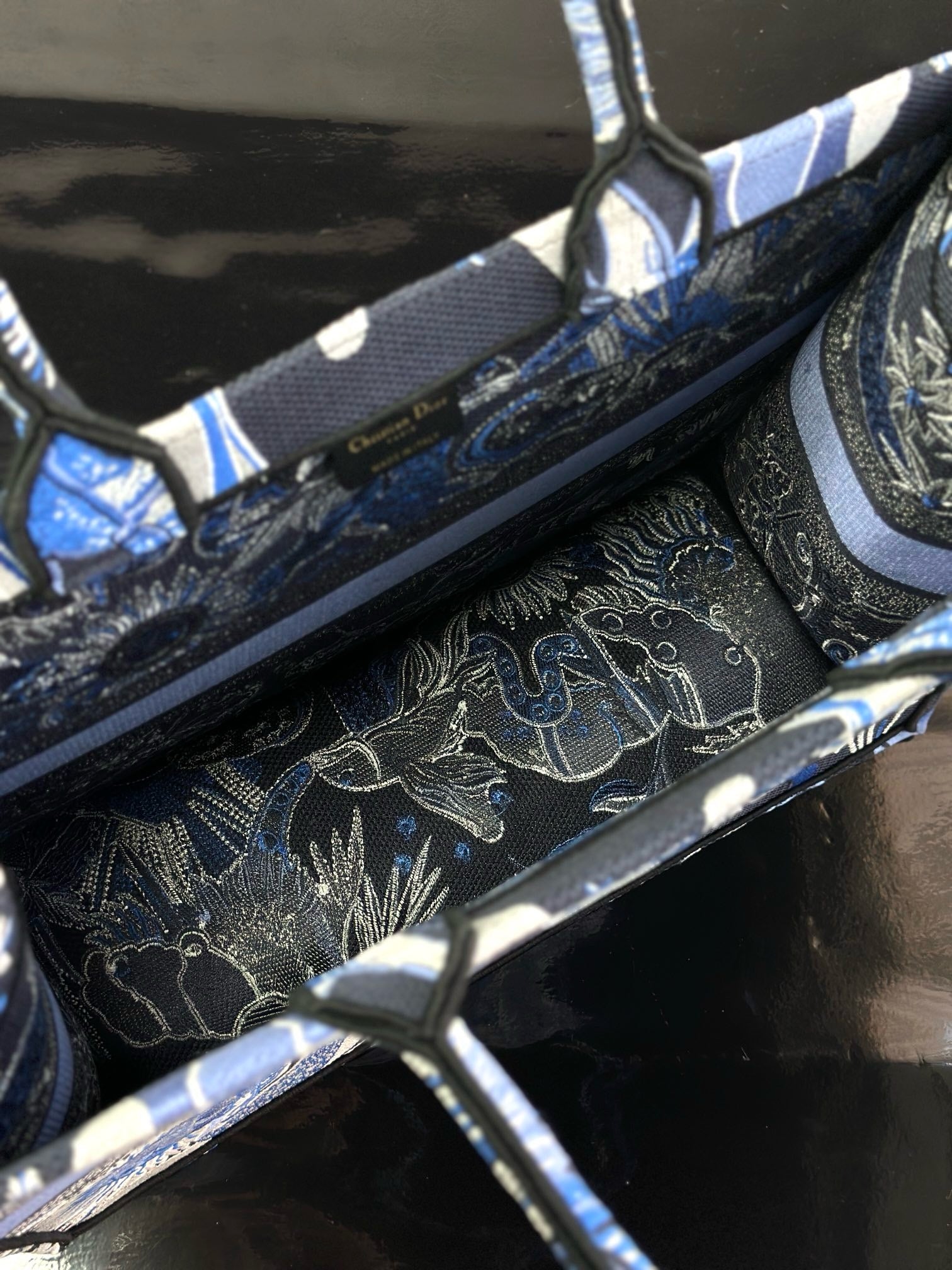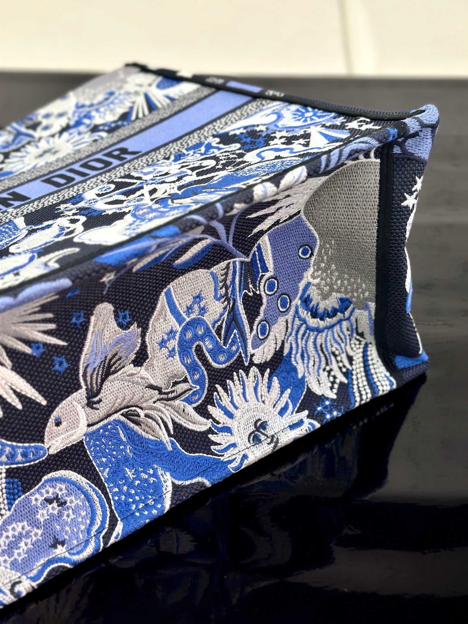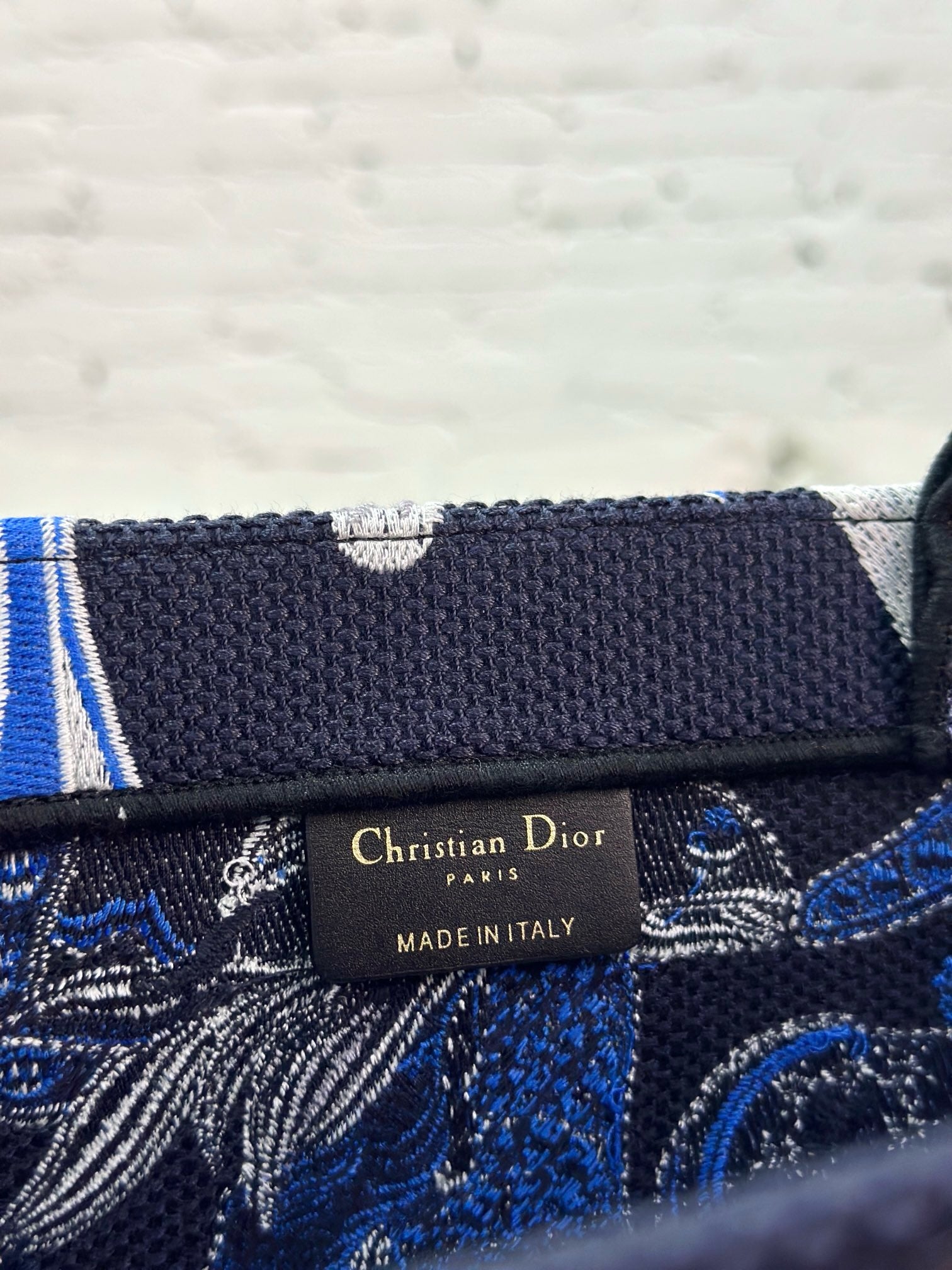 Introduced by Maria Grazia Chiuri, Creative Director of Christian Dior, the Dior Book Tote has become a staple of the Dior aesthetic. Designed to hold all the daily essentials, the style is fully embroidered with the Miss Dior Graffiti motif — in fuchsia and black on one side and purple and black on the other — in a nod to the 1967 debut ready-to-wear collection and a manifesto to Maria Grazia Chiuri's signature celebration of feminism. The large tote exemplifies Dior's savoir-faire and may be carried by hand or worn over the shoulder.