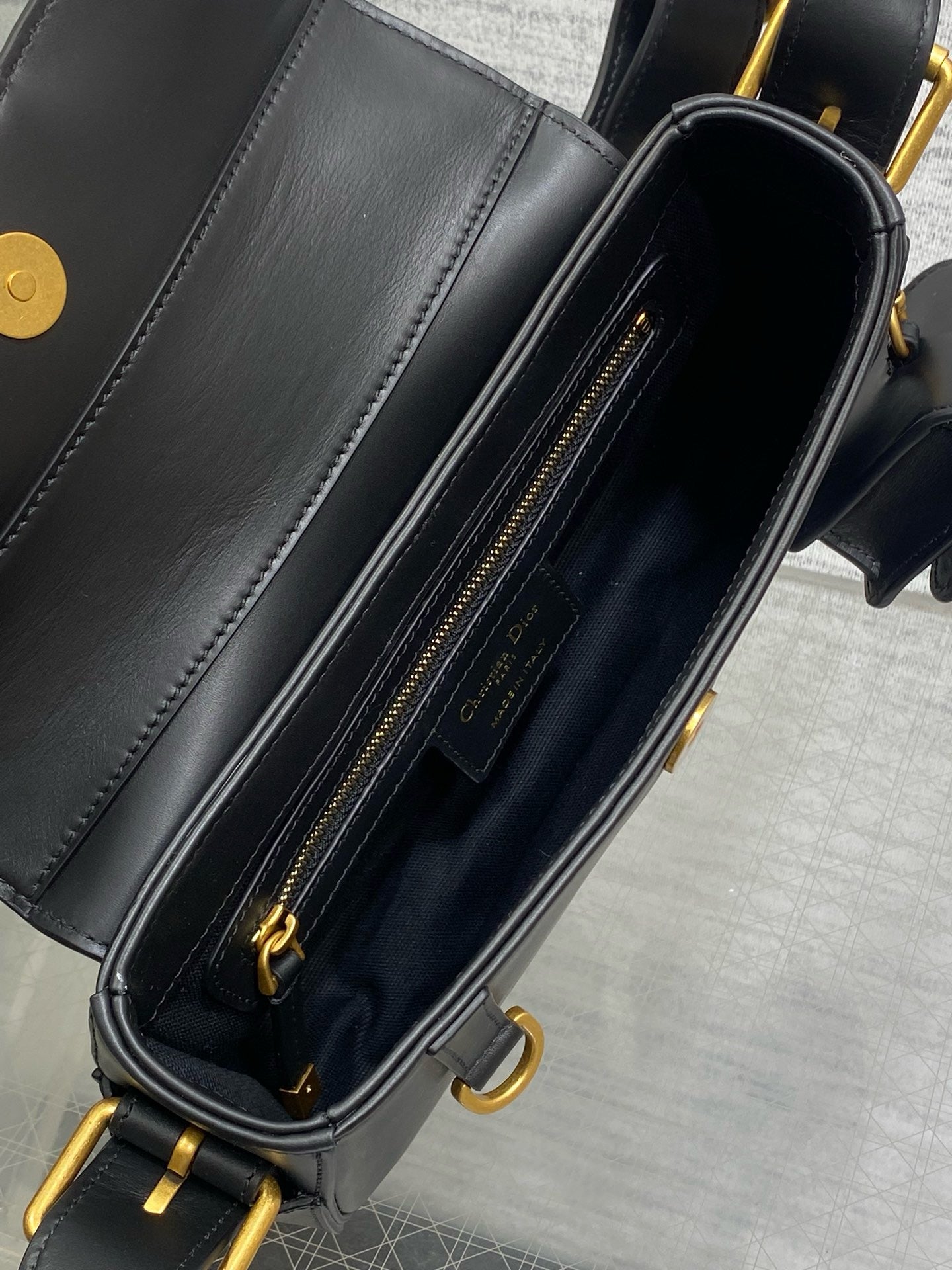 New for Summer 2025, the Streetchic bag redefines an iconic design from the House's 2002 archives. Crafted in blue Dior Oblique jacquard and tonal smooth calfskin, it features a magnetic flap elevated by an antique gold-finish metal Christian Dior Paris engraved plate. The style includes a removable pouch in tonal calfskin for wireless earbuds, which can attach to one of the numerous D-rings. Equipped with an adjustable and removable strap with Christian Dior Paris embroidery, the small modern bag can be worn over the shoulder or crossbody.