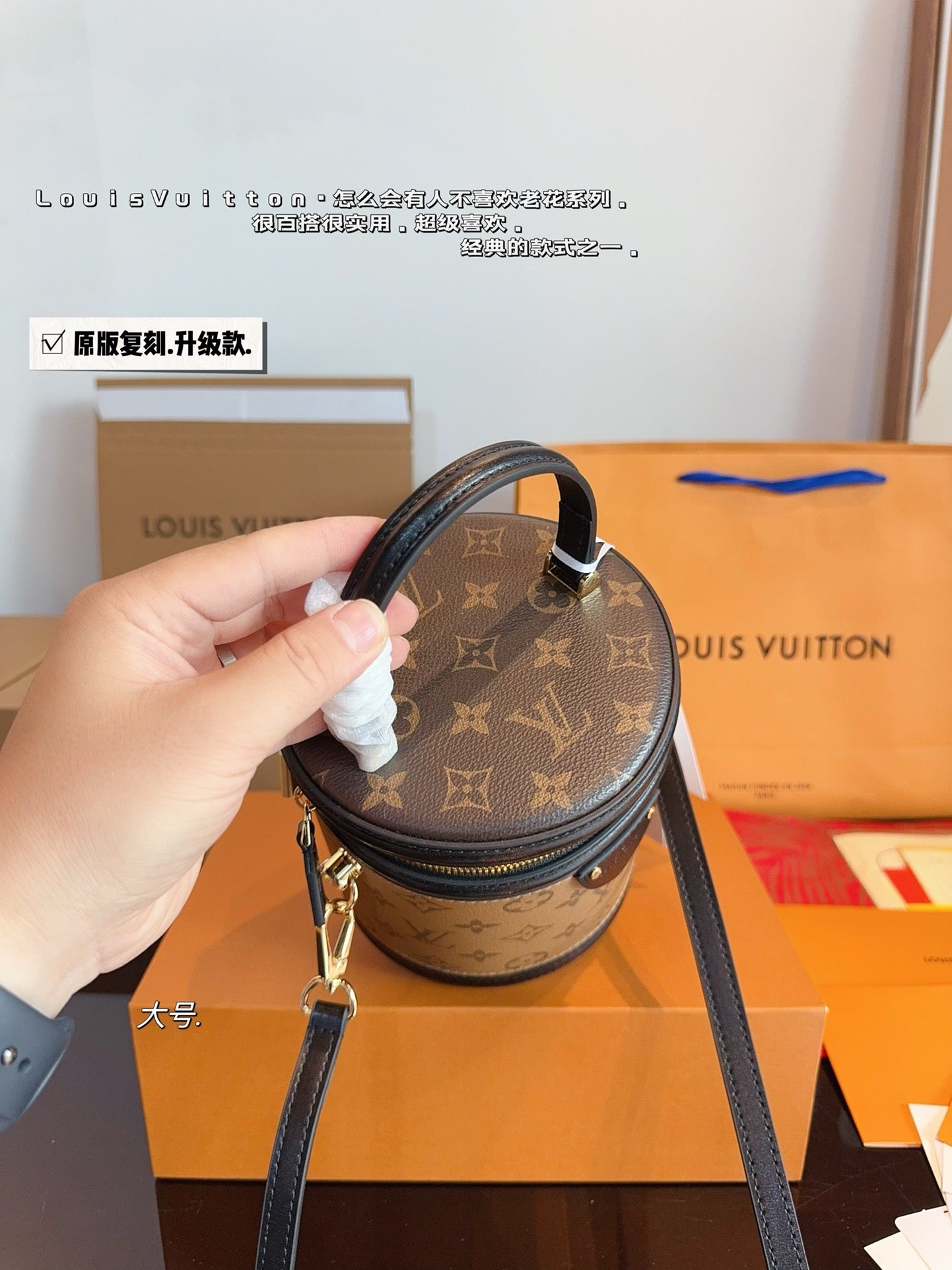 Featuring the historical shape of the LV Cannes beauty case, designer Nicolas Ghesquière revives a long-standing classic with the Cannes handbag. Petite in size and presented in a mix of Monogram and Monogram reverse coated canvas, the elegant piece reanimates a traditional silhouette steeped in Louis Vuitton heritage. A removable leather strap and top handle provide a range of carrying options.
