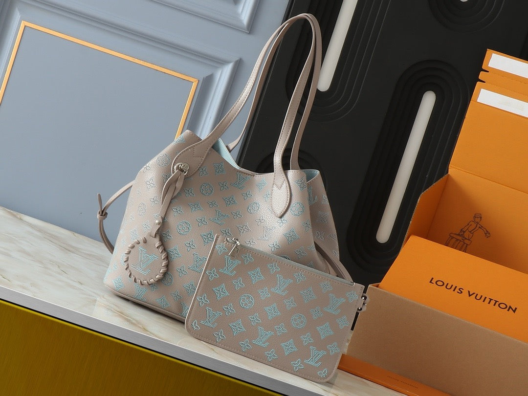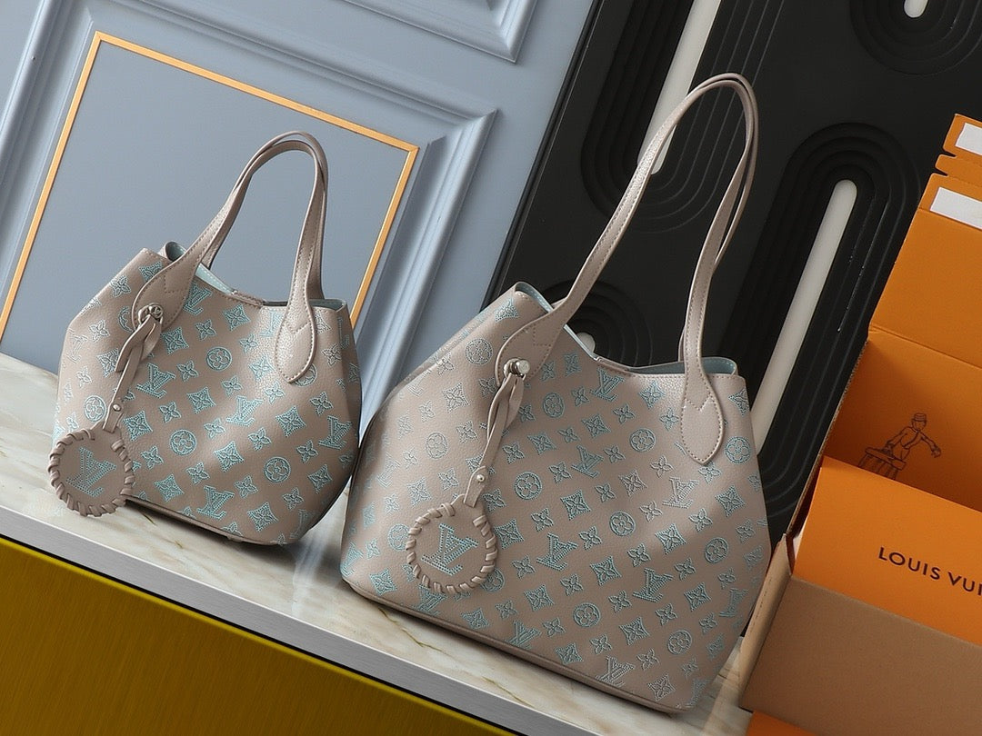 Made from Mahina Reverse calfskin, the Blossom PM is a lightweight tote with a delightfully soft hand. Lined and detailed in matcha green, it makes an appealing springtime accessory. The bag is embellished with a detachable braided LV charm and features a removable zipped pocket to keep small belongings secure. Top handles and a strap offer multiple styling options.