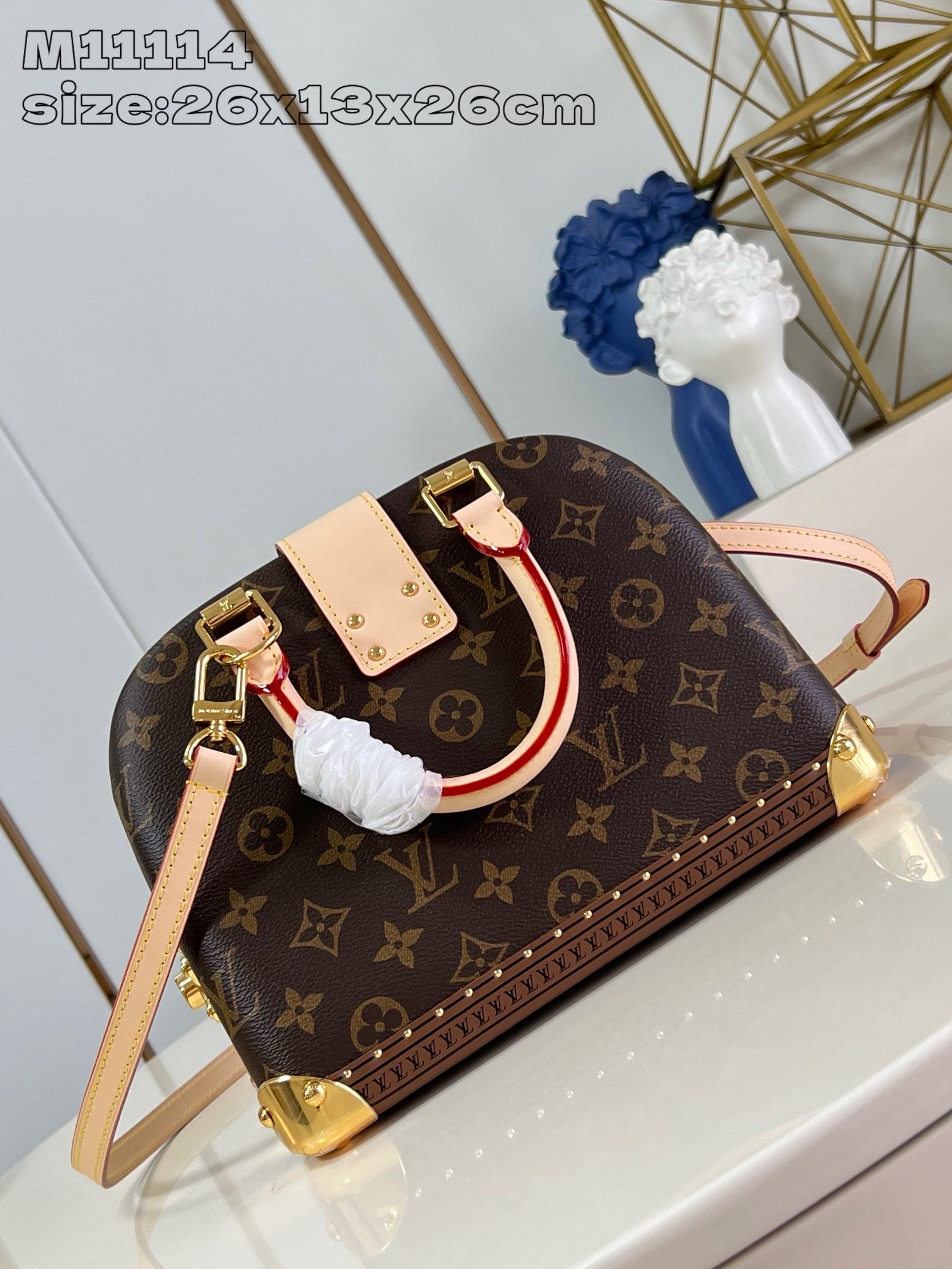 After the reinterpretation of the speedy in a hardsided shape, Nicolas Ghesquières reinterprets the iconic Alma by retaking the Hardsided codes, from the lozines to the metallic corners.