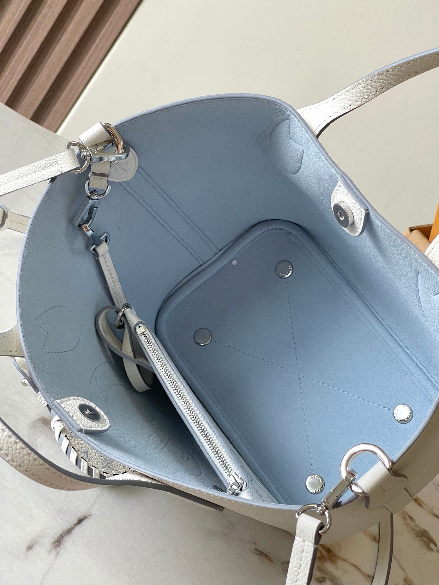 Made from Mahina perforated calfskin, the supple Blossom PM tote features a perforated LV Circle motif on the front and a removable LV braided-leather charm. There are two handles for hand or elbow carry as well as an adjustable and detachable leather strap for shoulder and cross-body wear.