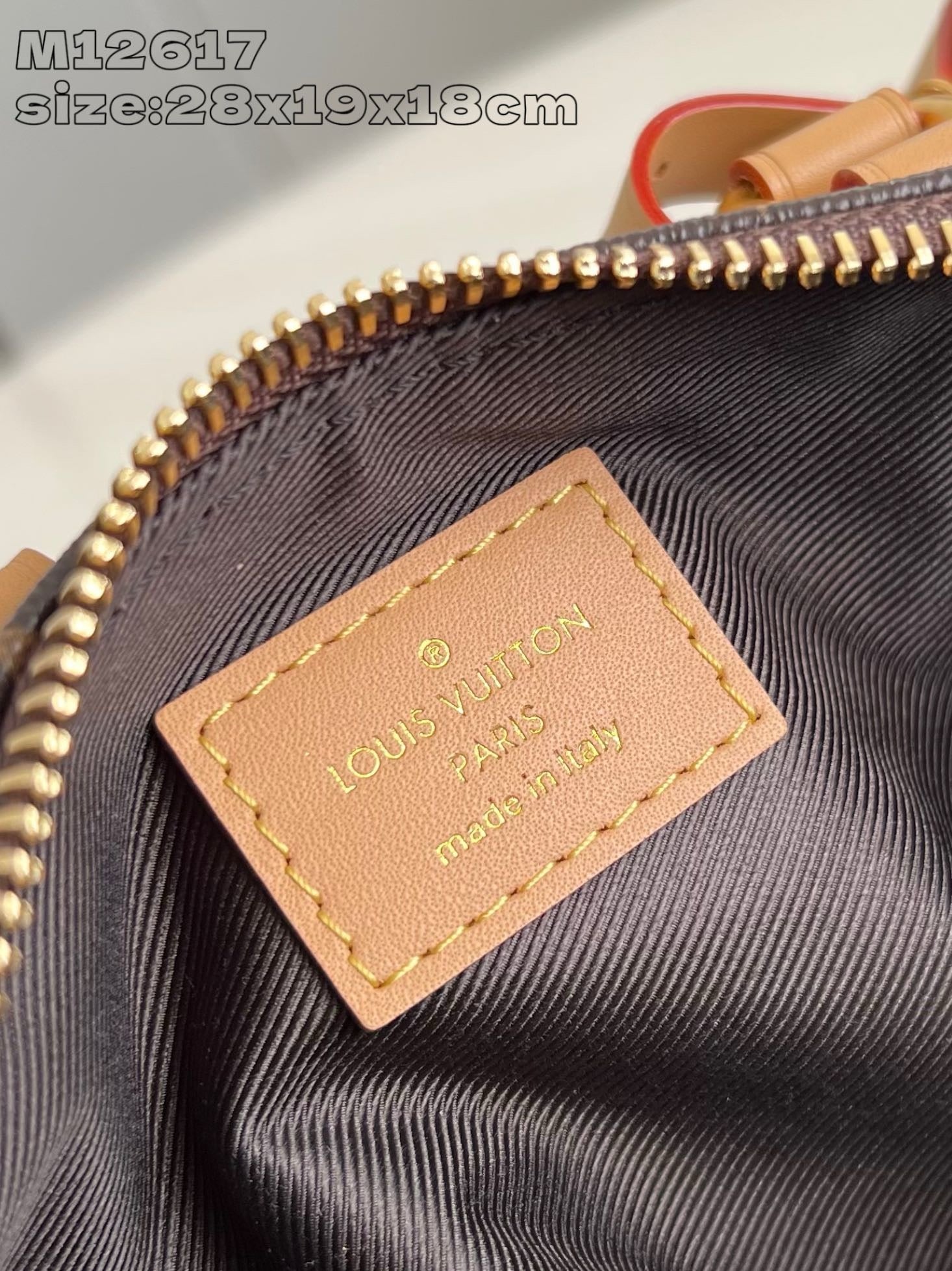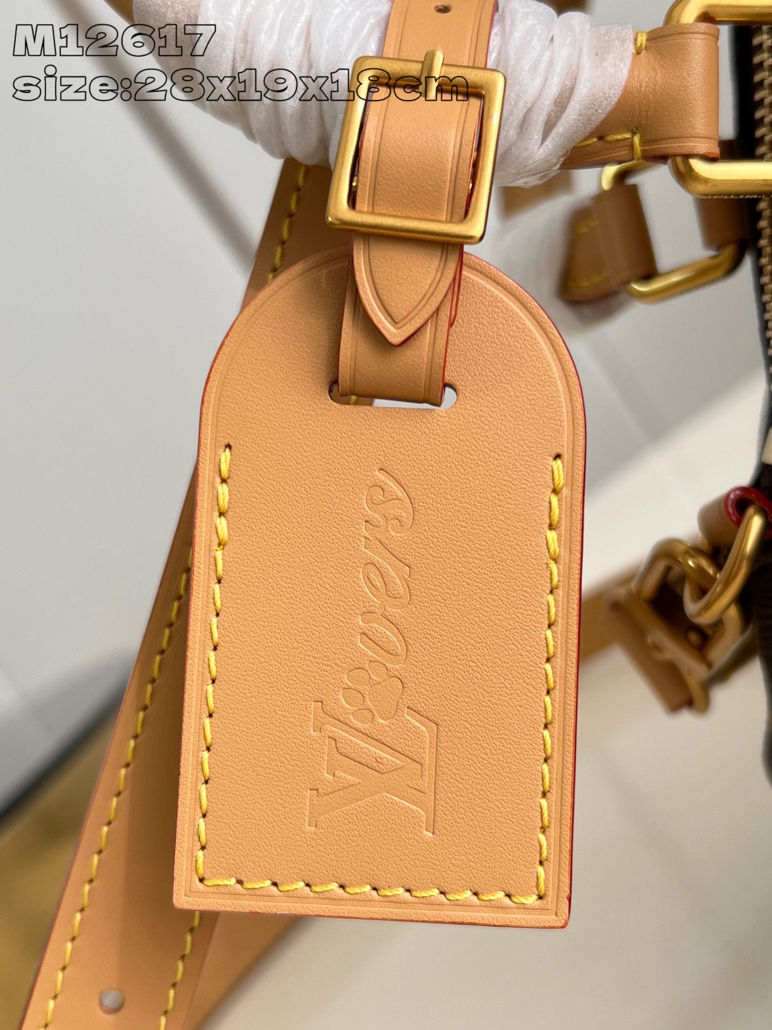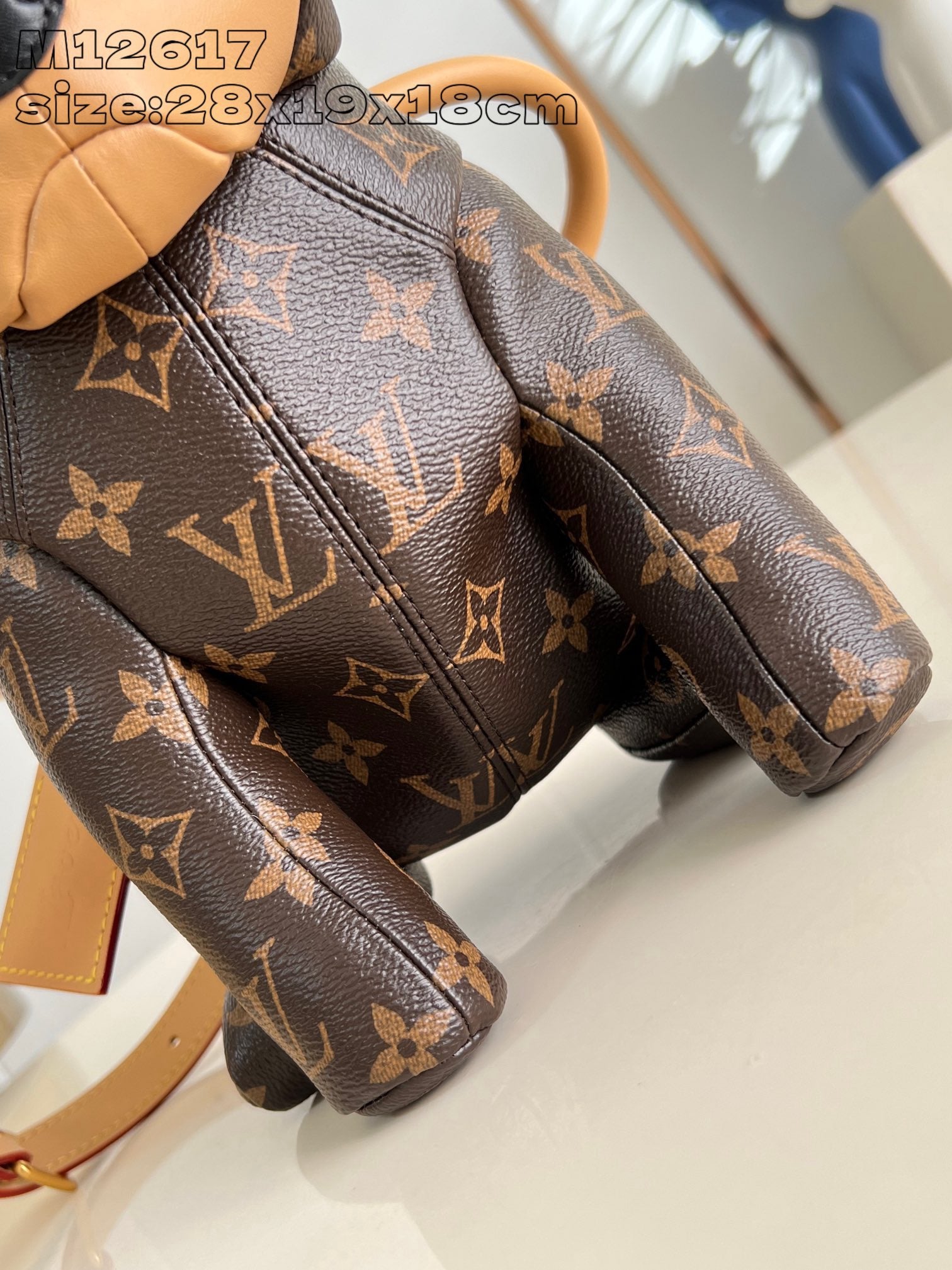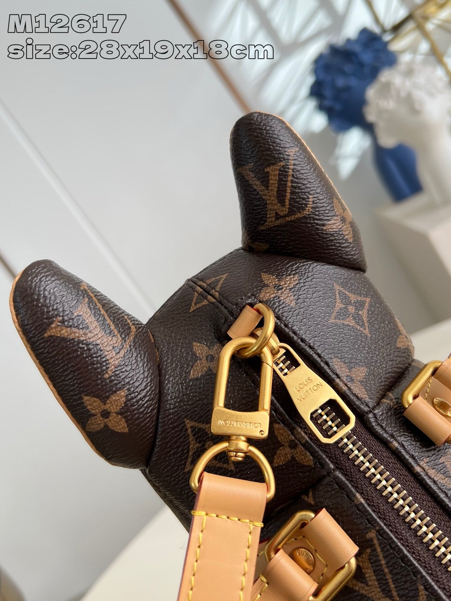 The Pooch Bag is an adorable small bag composed of classic House design elements, including Monogram canvas and aged-natural-leather trim, as well as rolled-leather top handles and leather handle mounts. It can be hand-carried thanks to its handles or worn cross-body with its adjustable leather strap. It’s signed with Pharrell Williams’ LV Lovers name tag.