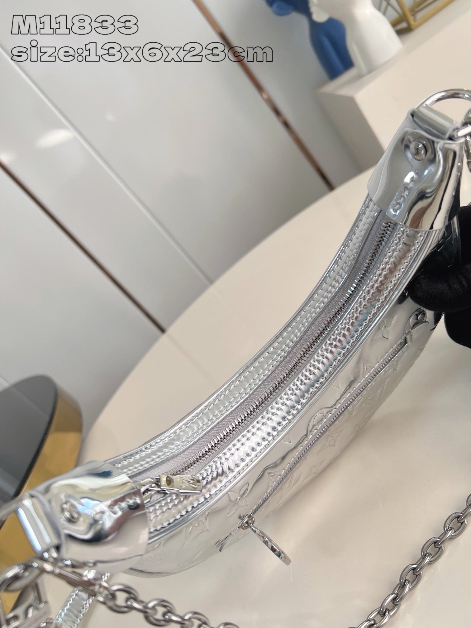 The Monogram Miroir effect takes cues from the House’s iconic metal trunks from 1892, putting a retro-futuristic spin on the original aesthetic. Crafted from monogram embossed coated canvas, this Loop PM from the LV Ski collection has multiple carrying options thanks to the removable and ajustable leather strap and removable chain. Use it by day or night to carry essential items as well as a long wallet.