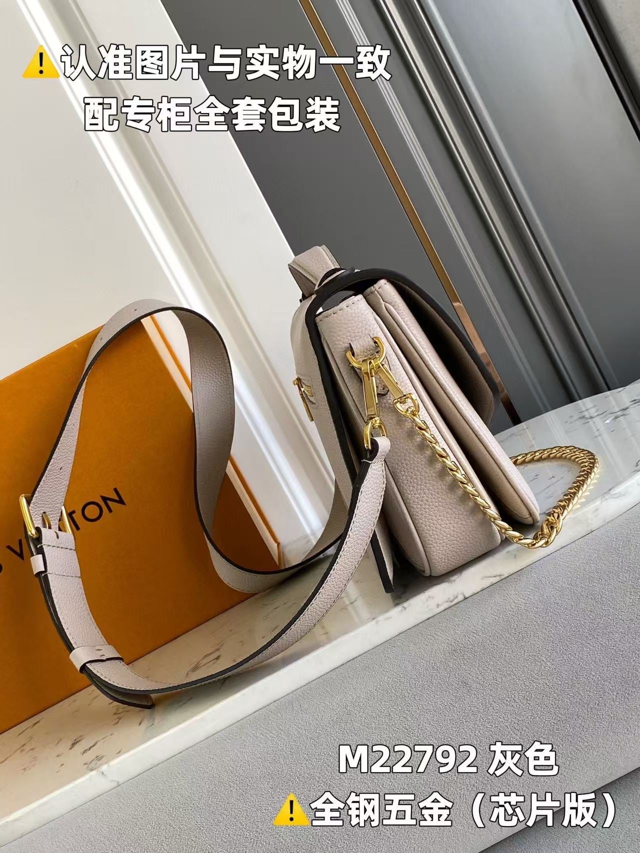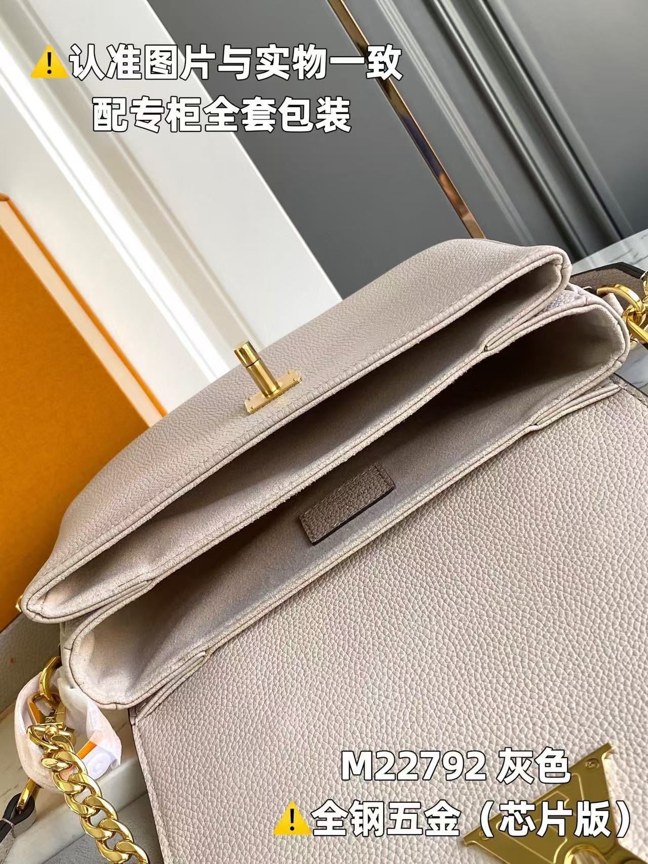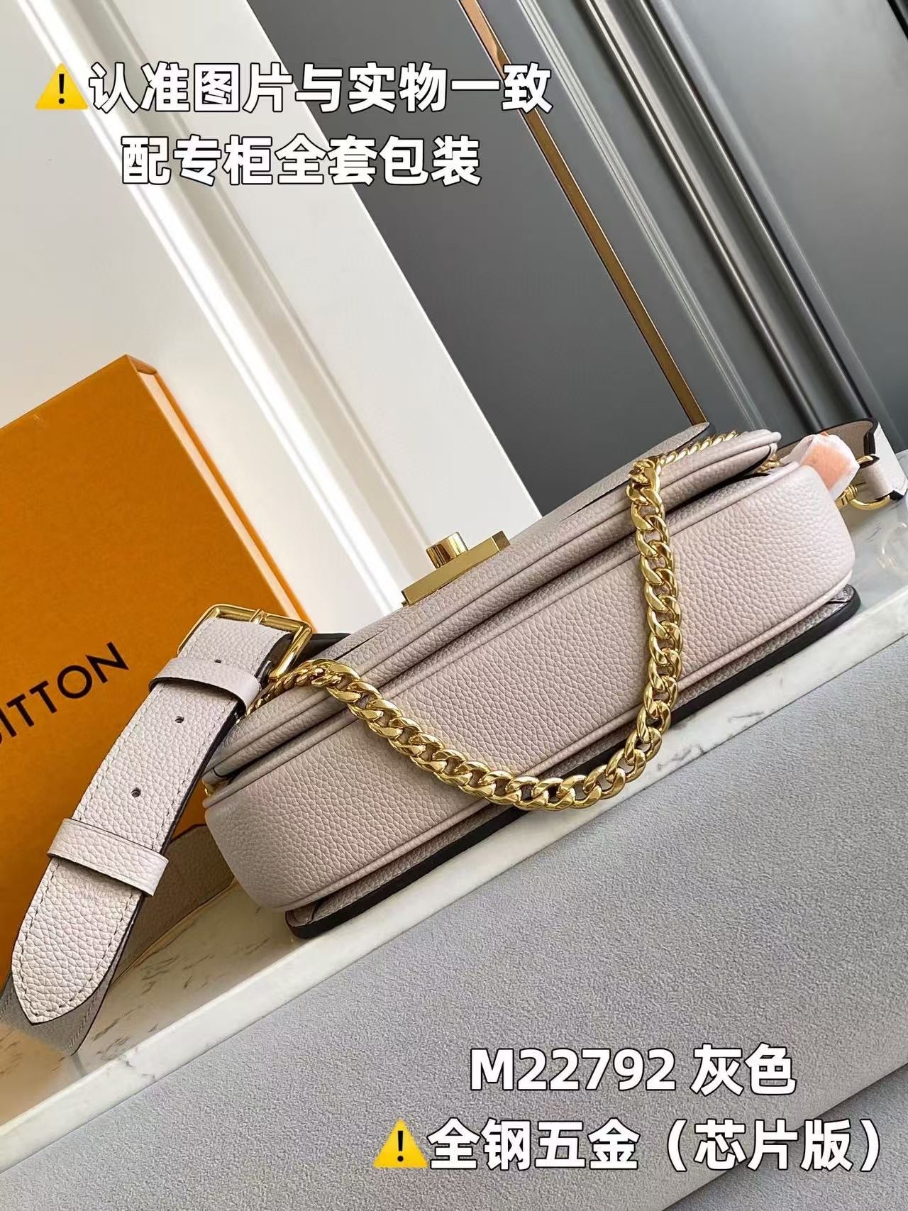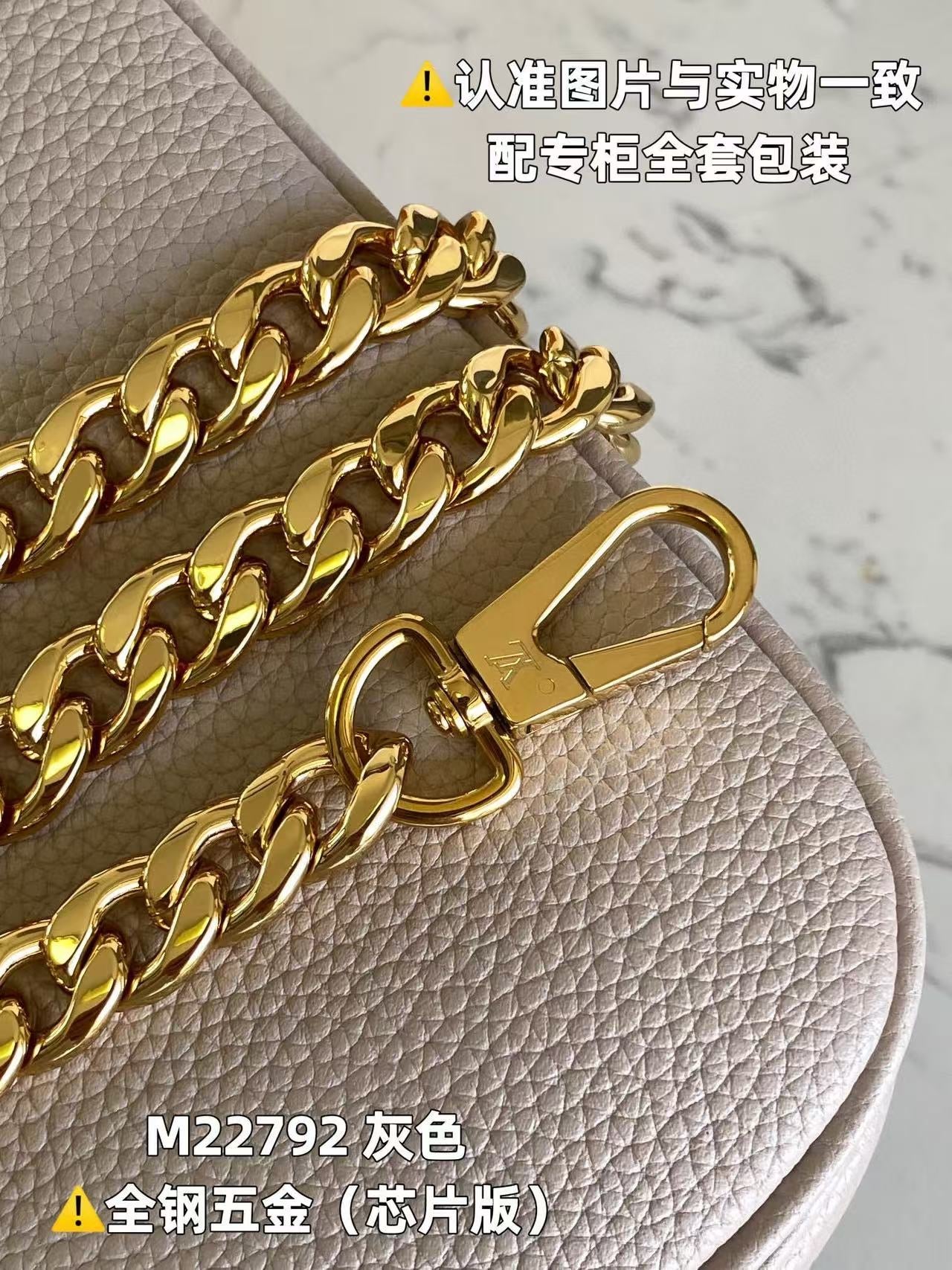 - Gold-color hardware