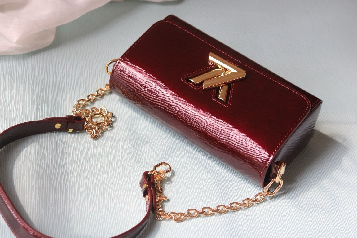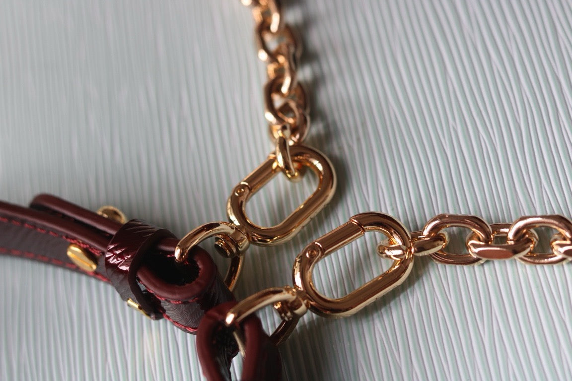 The Twist West Pochette in grained Epi leather is a chic way to carry essentials for day or evening. It reinterprets the iconic Twist bag in a fashionably elongated format, while offering the versatility of a removable, adjustable strap and a detachable chain. Its flap is secured with the collection's signature LV Twist lock.
