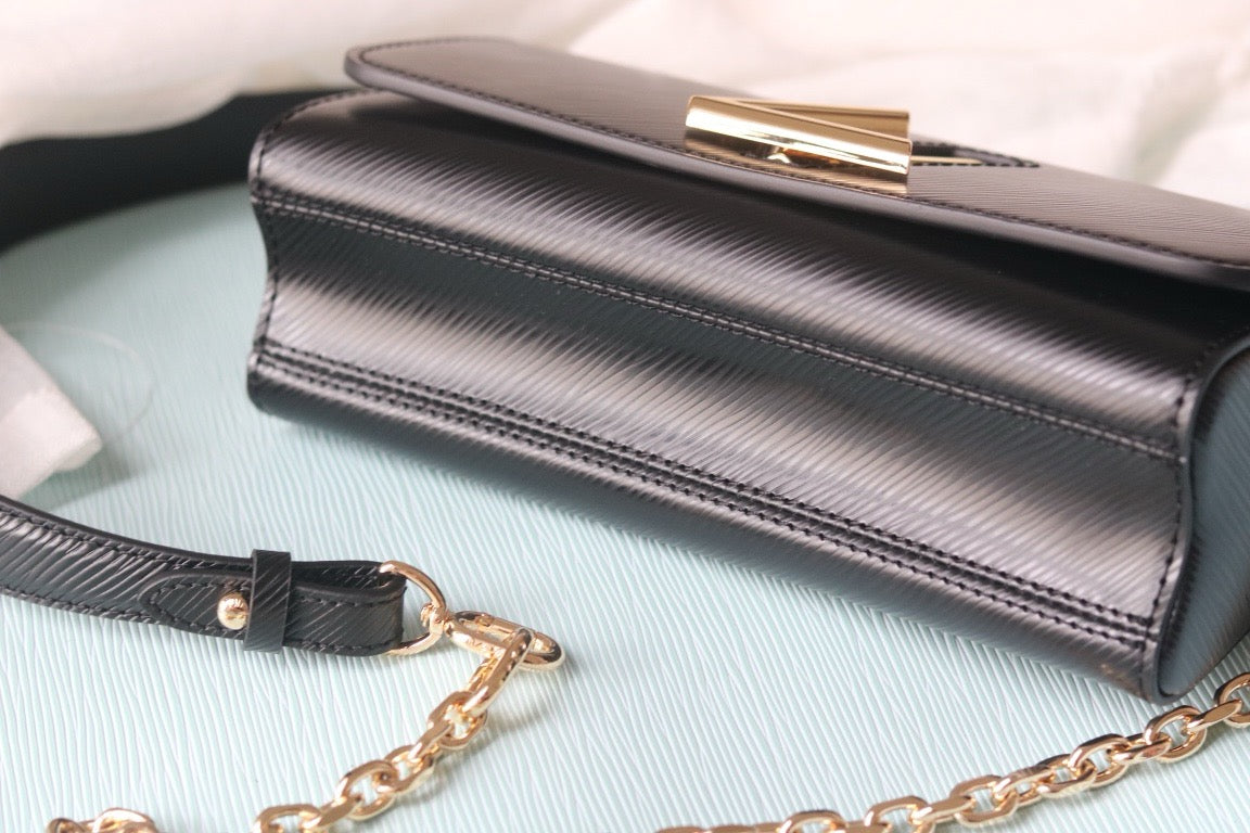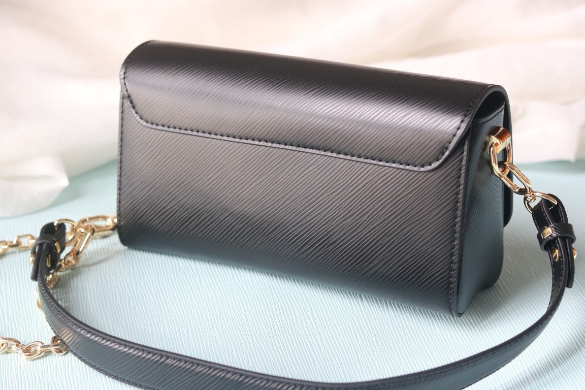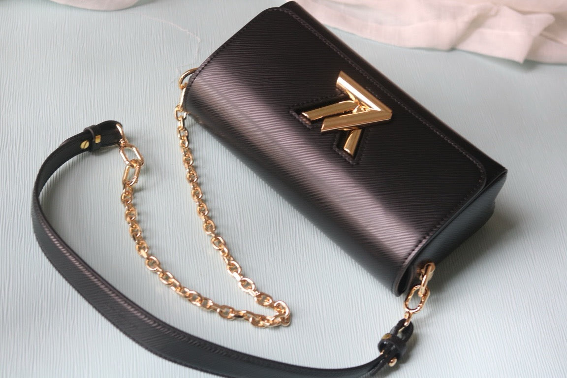 The Twist West Pochette in grained Epi leather is a chic way to carry essentials for day or evening. It reinterprets the iconic Twist bag in a fashionably elongated format, while offering the versatility of a removable, adjustable strap and a detachable chain. Its flap is secured with the collection's signature LV Twist lock.