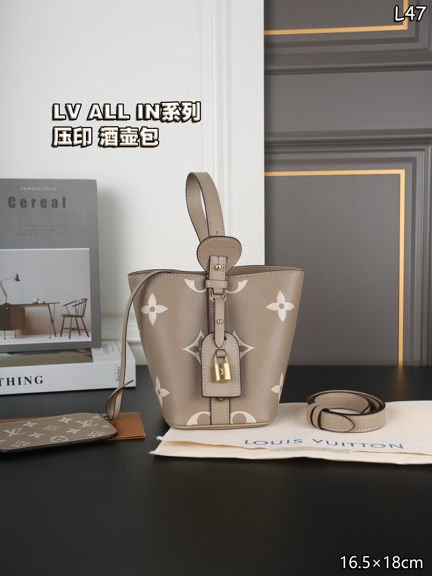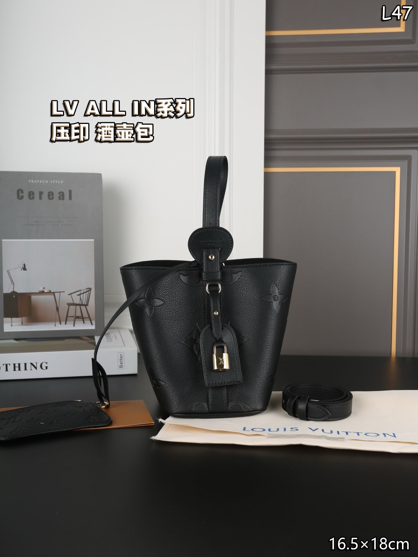 This timeless edition of the All In BB encapsulates modern versatility with an elegant design offering ample storage. This sleek bucket bag is crafted from Monogram Empreinte leather, elevated with signature details including a name tag and gold-toned padlock. The adjustable handle pays tribute to the House’s trunk-making heritage.