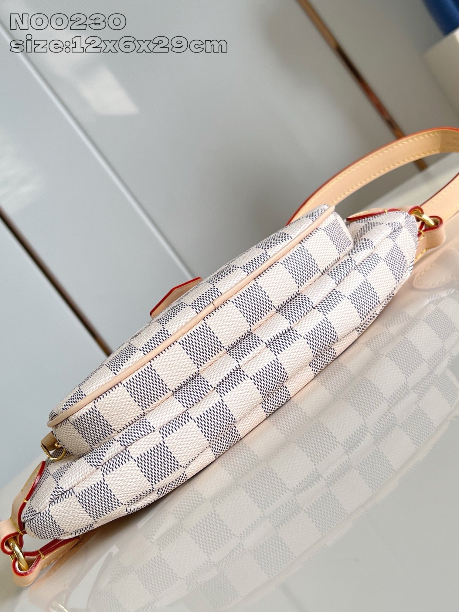 Showcasing the House's Damier Azur signature, the Keepit bumbag made its debut on the Spring-Summer 2025 runway. Accented with gold-toned hardware, it comes with an adjustable shoulder strap for multiple ways to wear and includes an outside zip compartment for smaller items. Note the leather tab detail at the front, which is stamped with the Louis Vuitton signature.