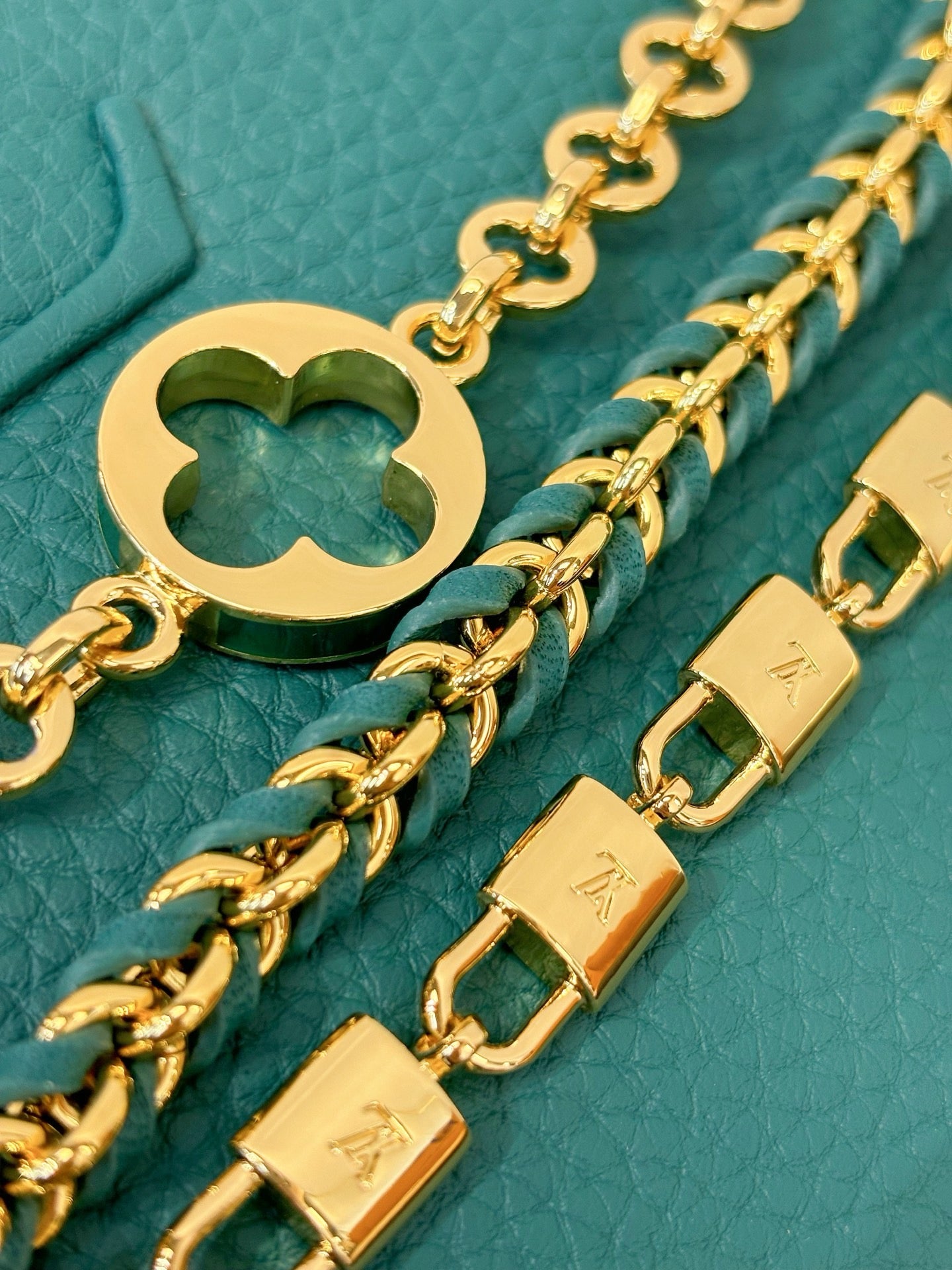 • Gold-toned hardware with enameled details