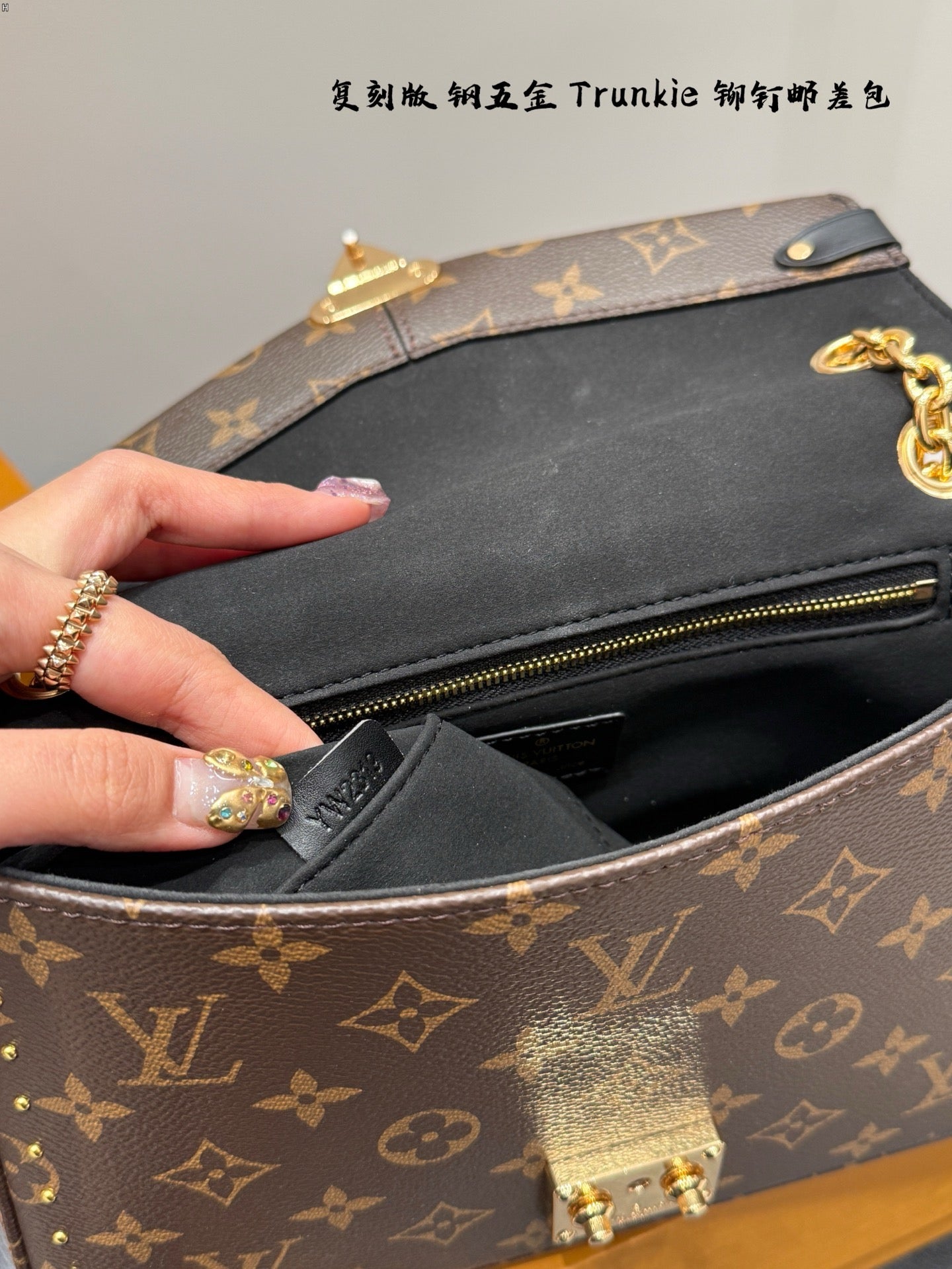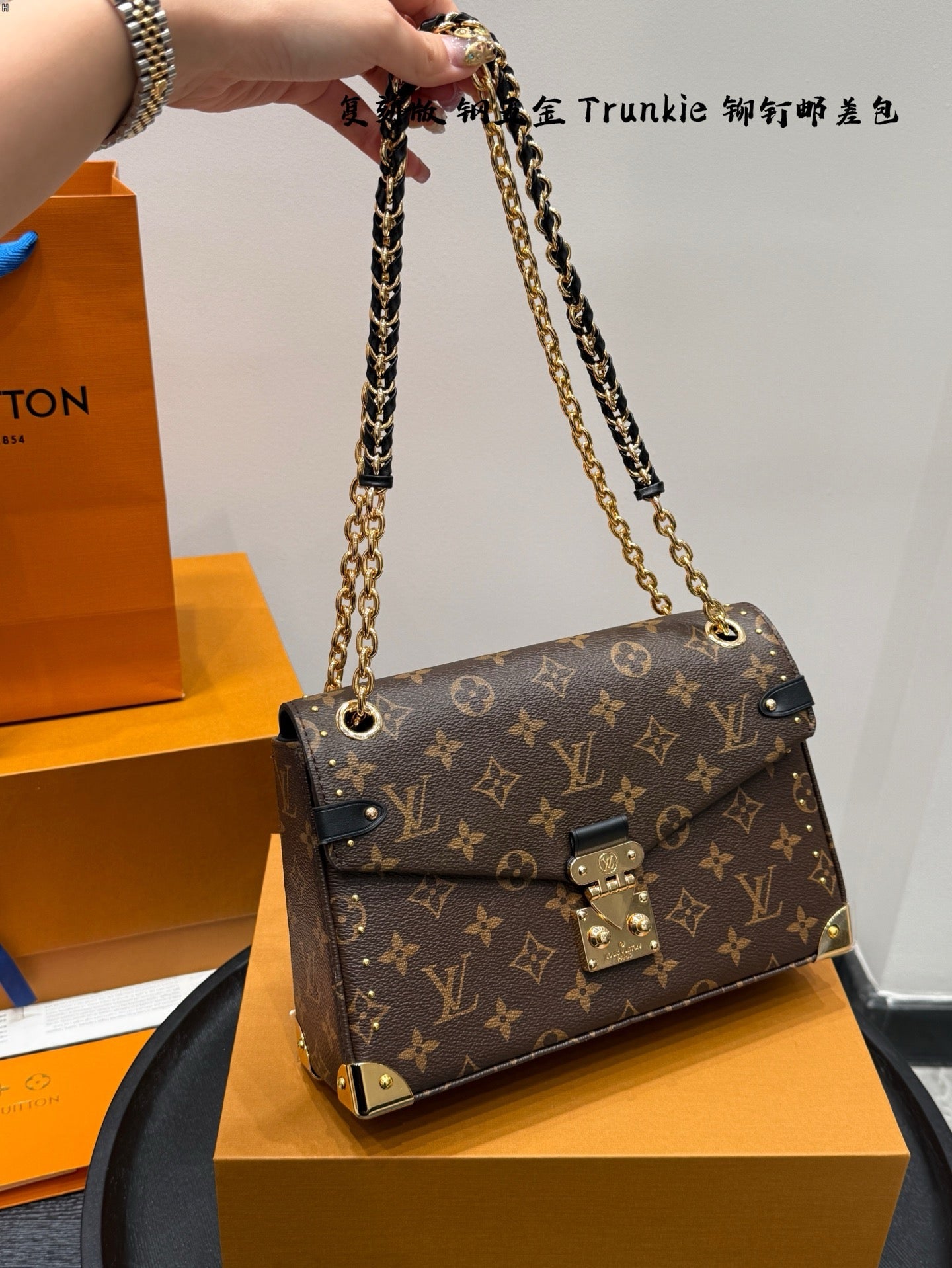 The Trunkie celebrates the House’s legacy, combining functionality with sophistication. It is crafted from Monogram canvas adorned with 38 gold-toned rivets, echoing vintage Louis Vuitton luggage. The contemporary design features metallic corners, as well as a signature S-lock and sliding chain to offer multiple carry options. The interior is sized to fit everyday essentials and includes a zipped pocket.