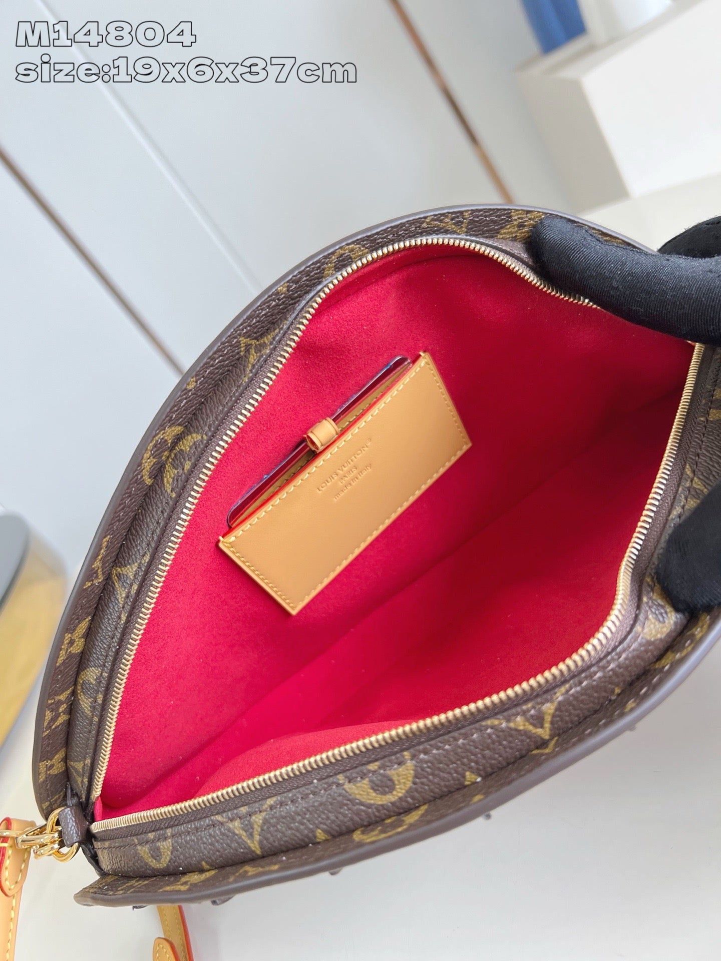 Introducing the LV Fan, a statement design that debuted on the Spring-Summer 2025 runway. This collector's piece is crafted from Monogram canvas. It can be worn cross-body or carried by hand. Note the Monogram flower signature detail on leather, which pay tribute to the House’s savoir-faire and legacy.