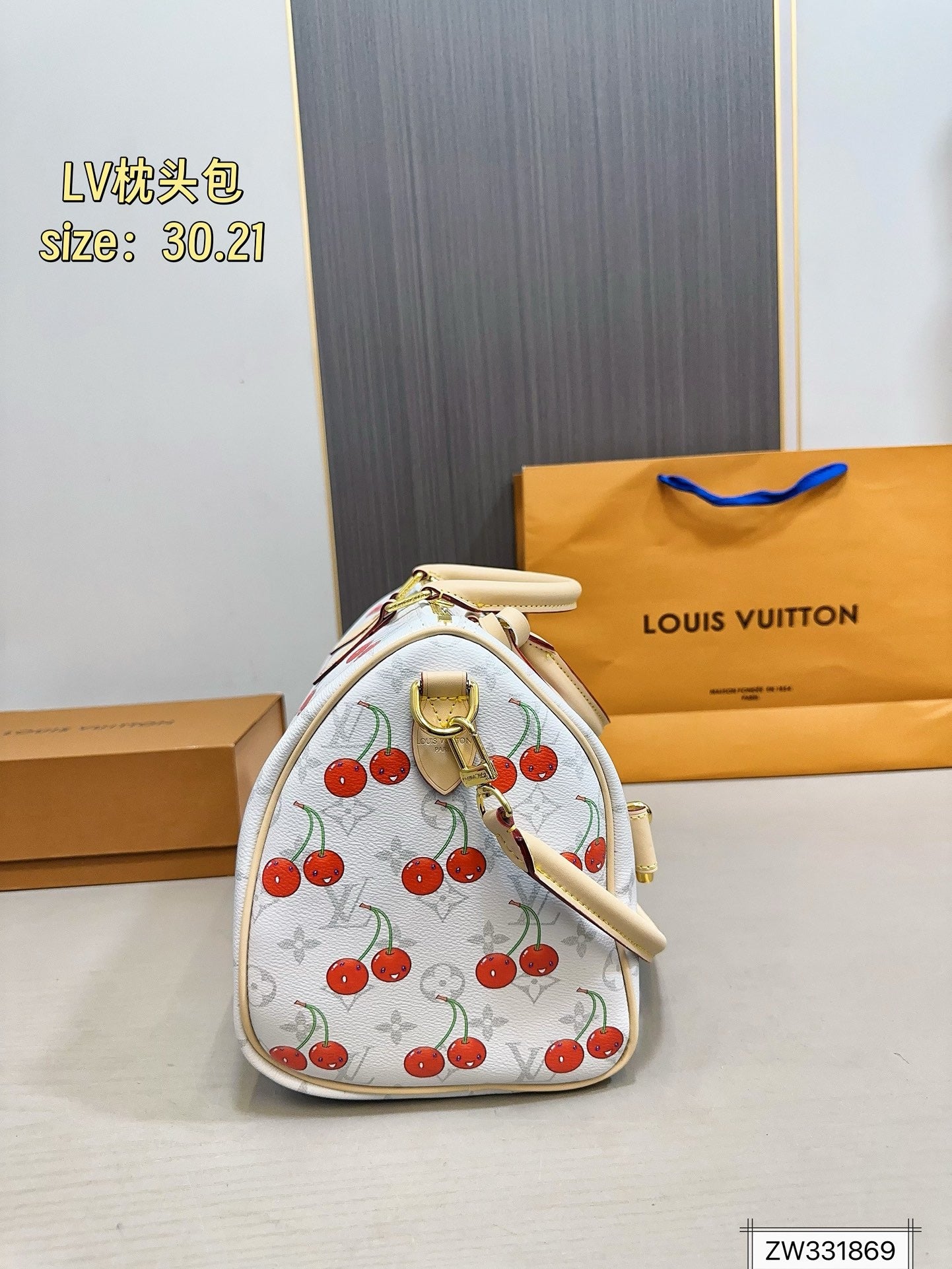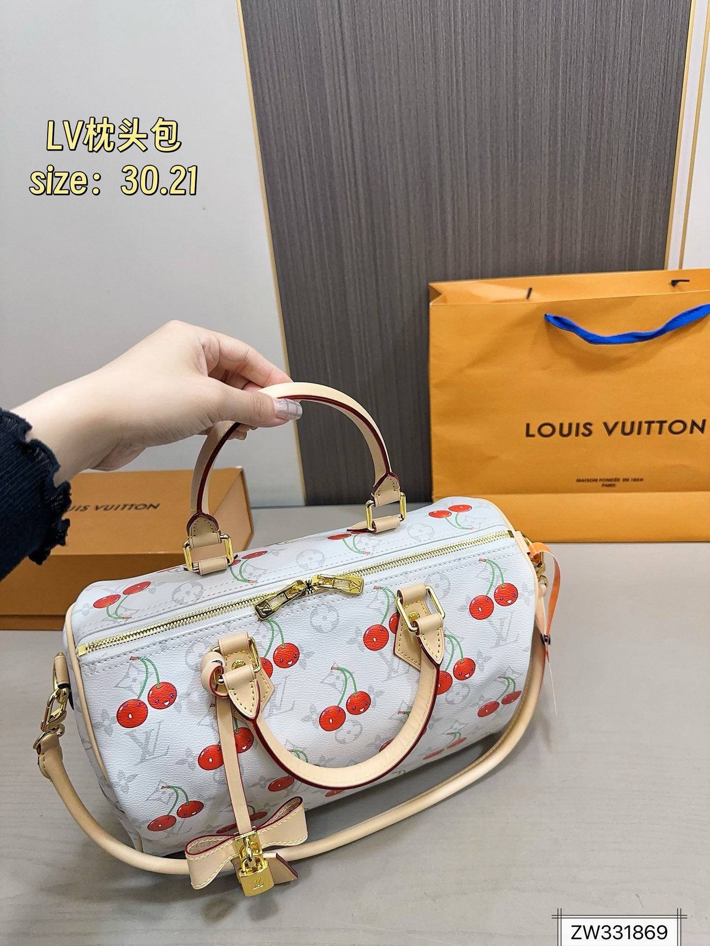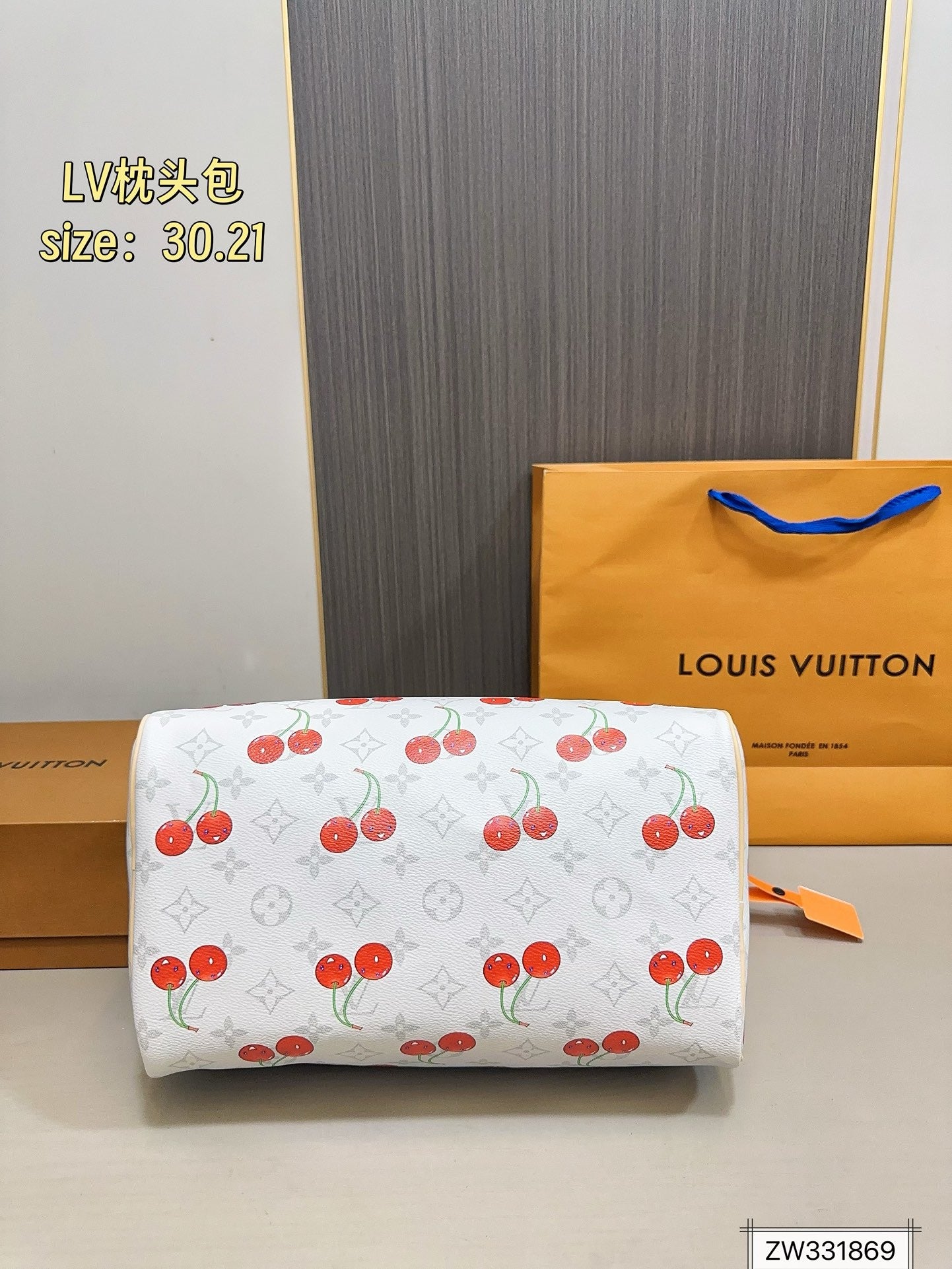 The Speedy Soft 30 exudes elegance as part of the spirited second edition of the Louis Vuitton x Murakami collection. Crafted from Monogram coated canvas in an understated shade, the Japanese artist’s exuberant cherry motifs introduce a bold burst of color. The Toron top handles and removable Toron shoulder strap strike a contrast in natural leather, while the inside is lined with denim. A bow-shaped keybell completes the look with a final flourish.