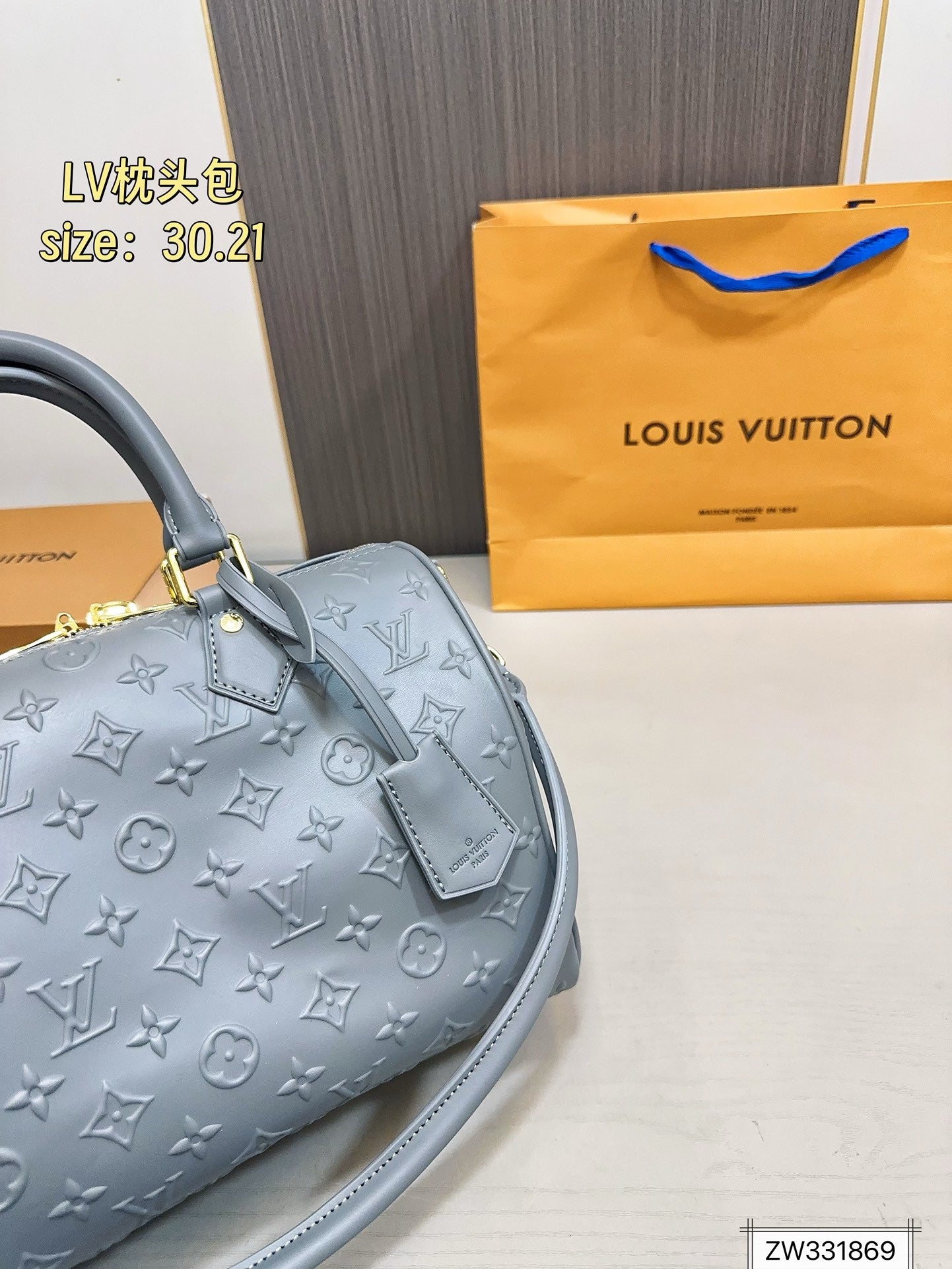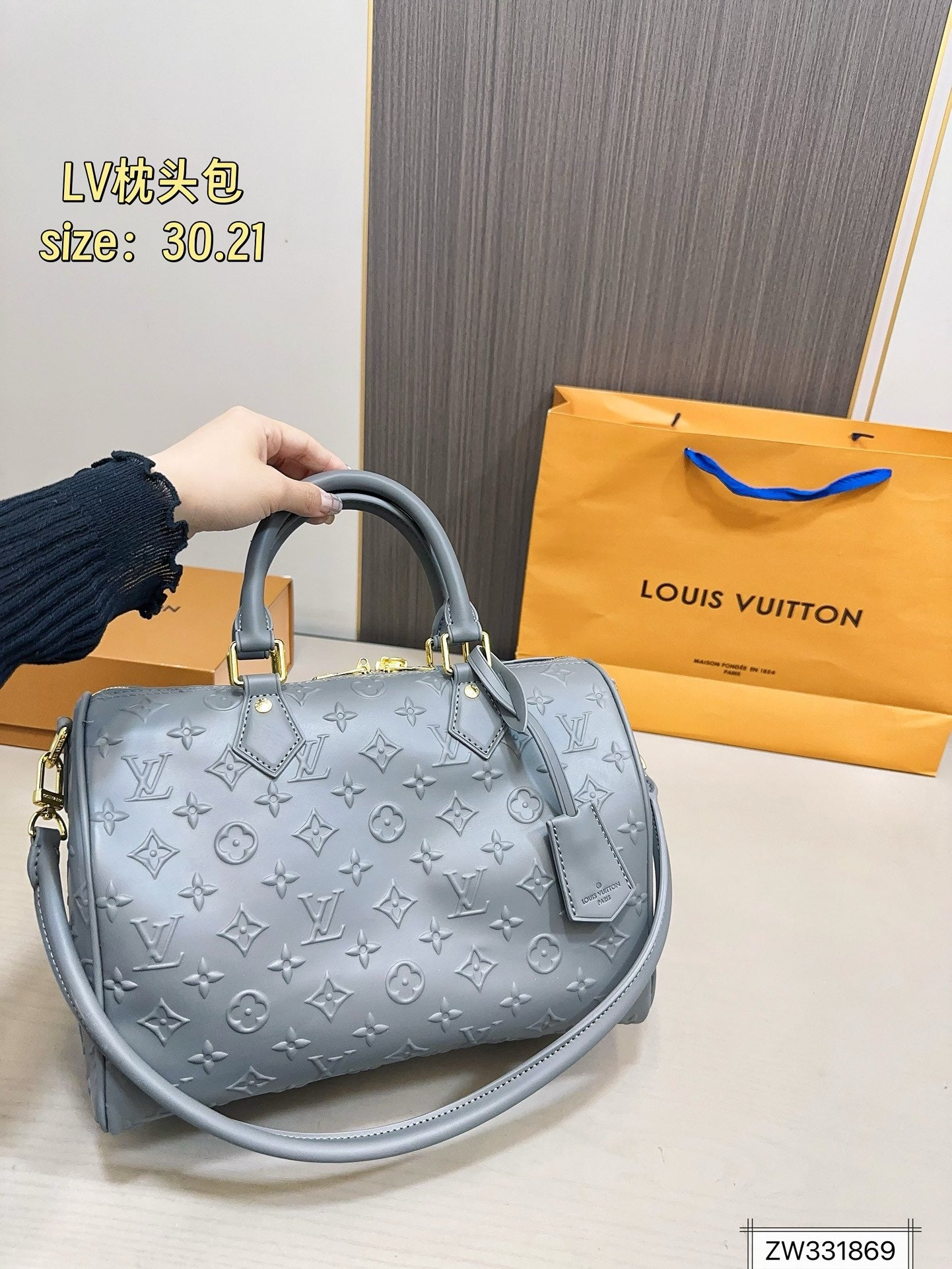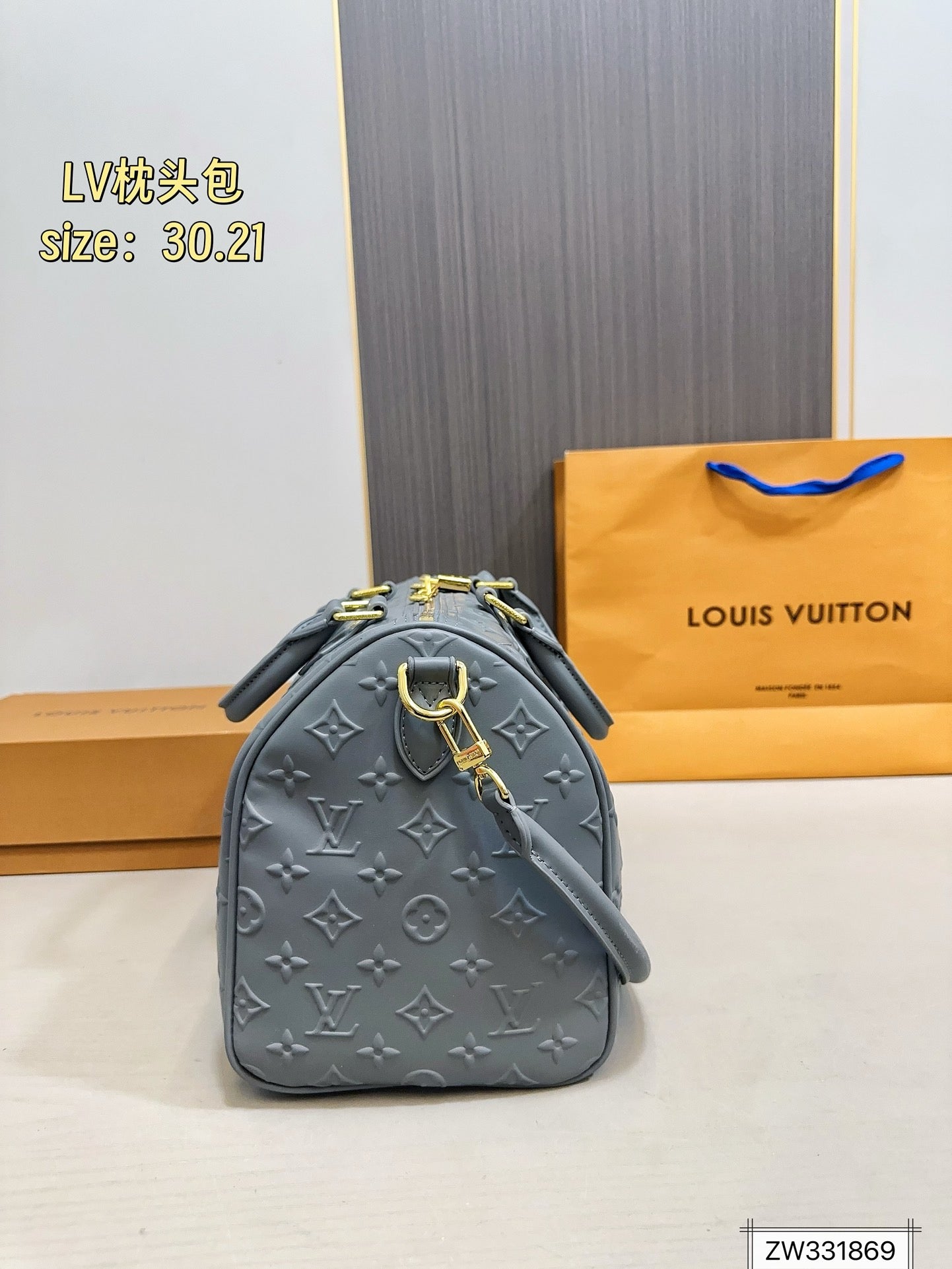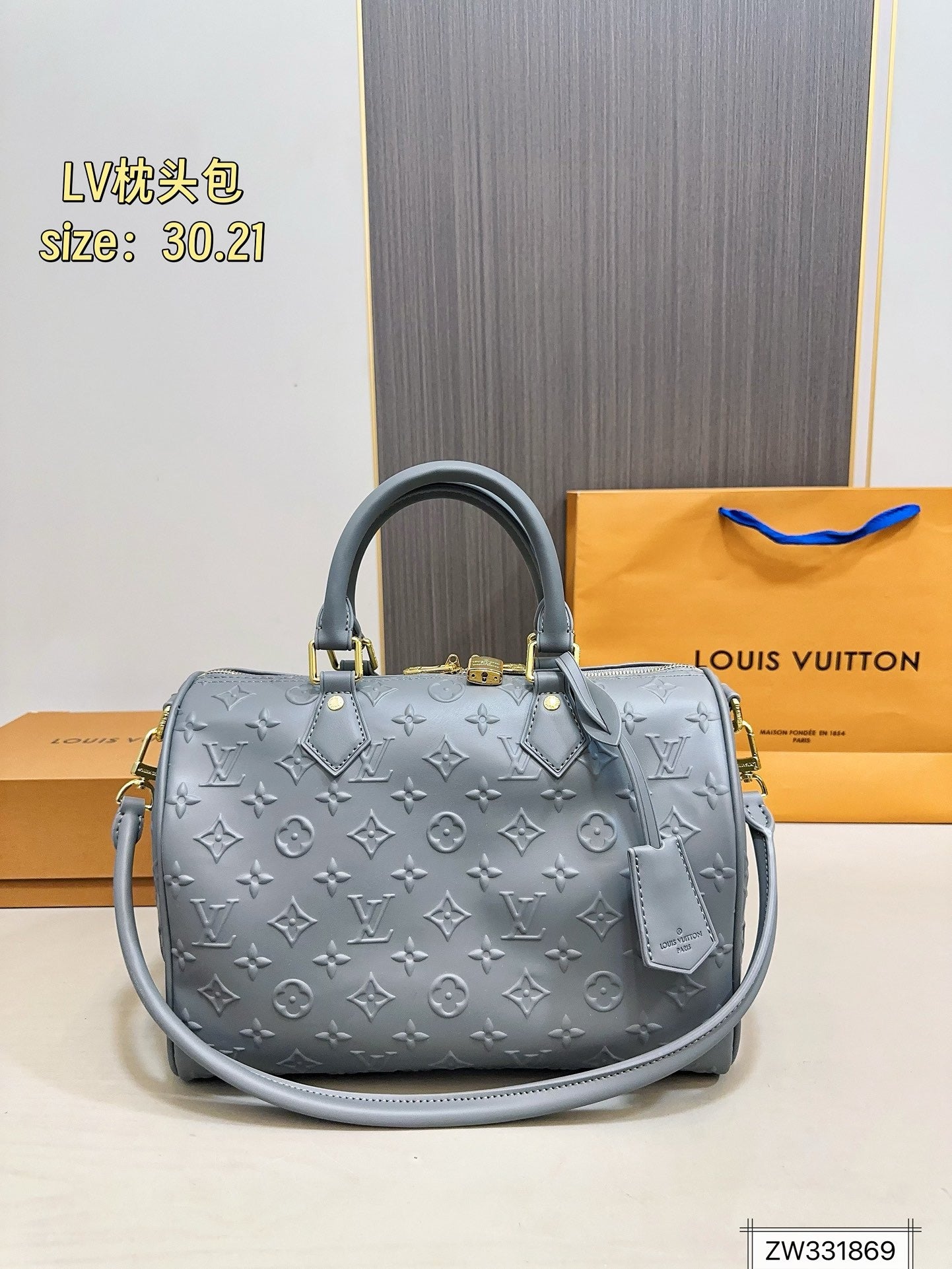 This Speedy Soft 30 showcases the Minigram Bold, a subtle take on the iconic Monogram Bold pattern from Spring-Summer 2025. It is crafted from debossed calfskin in a fresh spring palette, adorned with gold-toned hardware and a signature key bell. The colorful charm is exclusive to the design and represents the Petite Malle from Nicolas Ghesquière’s Pre-Fall 2024 collection. Attach the longer strap to wear it cross-body.