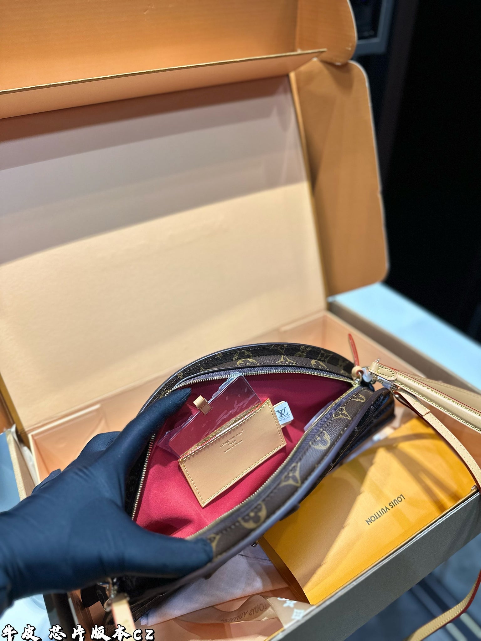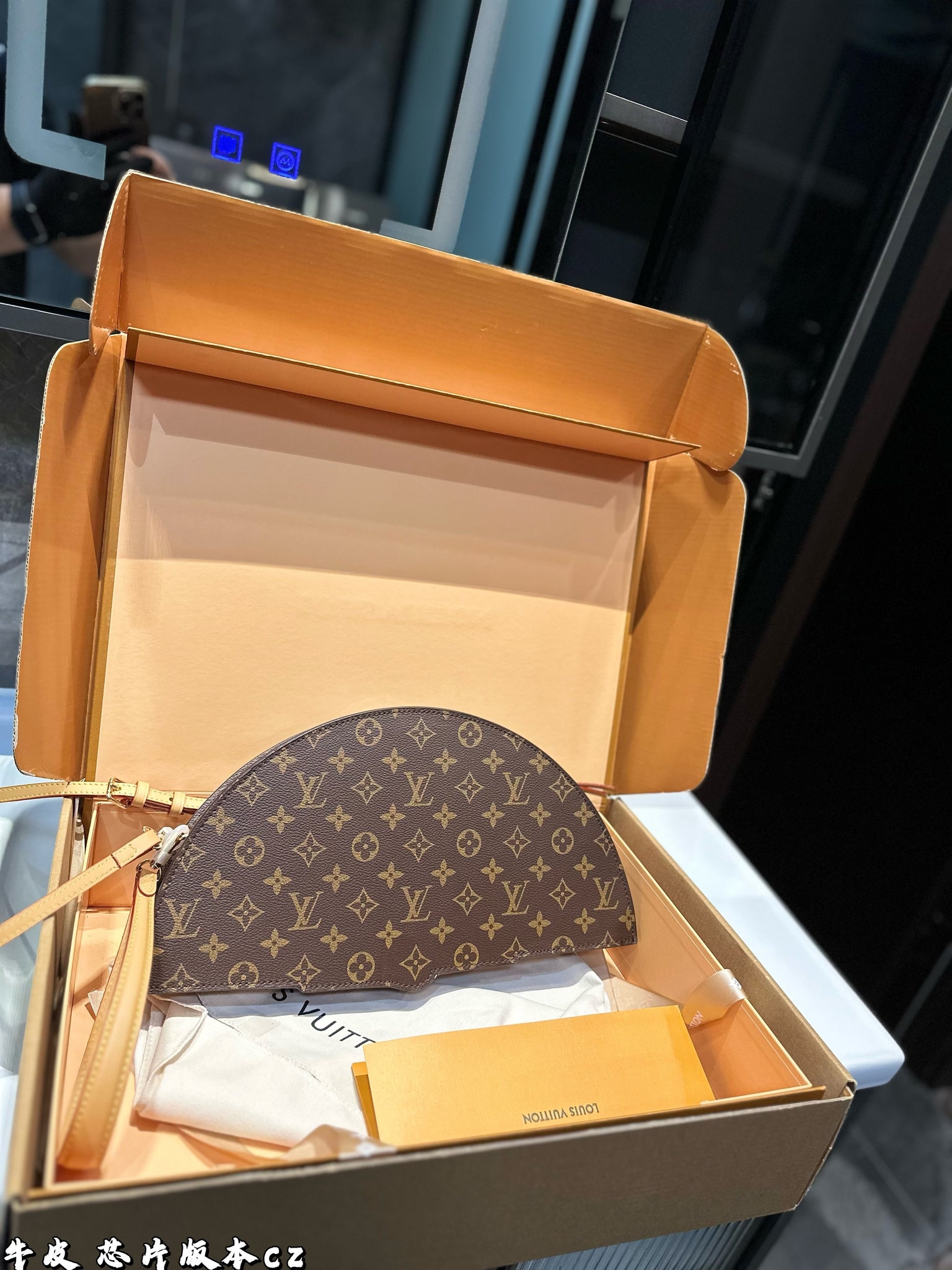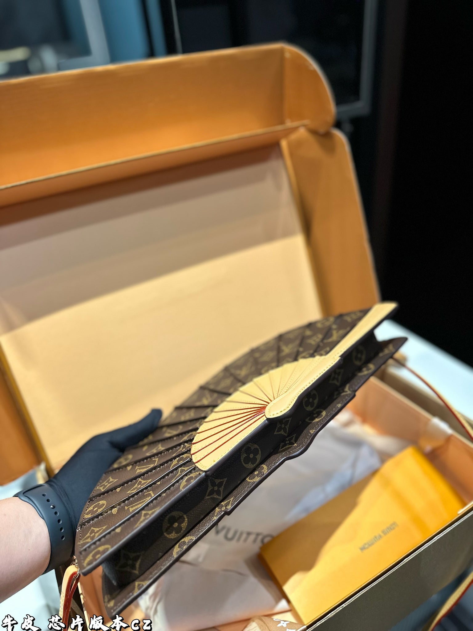 Introducing the LV Fan, a statement design that debuted on the Spring-Summer 2025 runway. This collector's piece is crafted from Monogram canvas. It can be worn cross-body or carried by hand. Note the Monogram flower signature detail on leather, which pay tribute to the House’s savoir-faire and legacy.