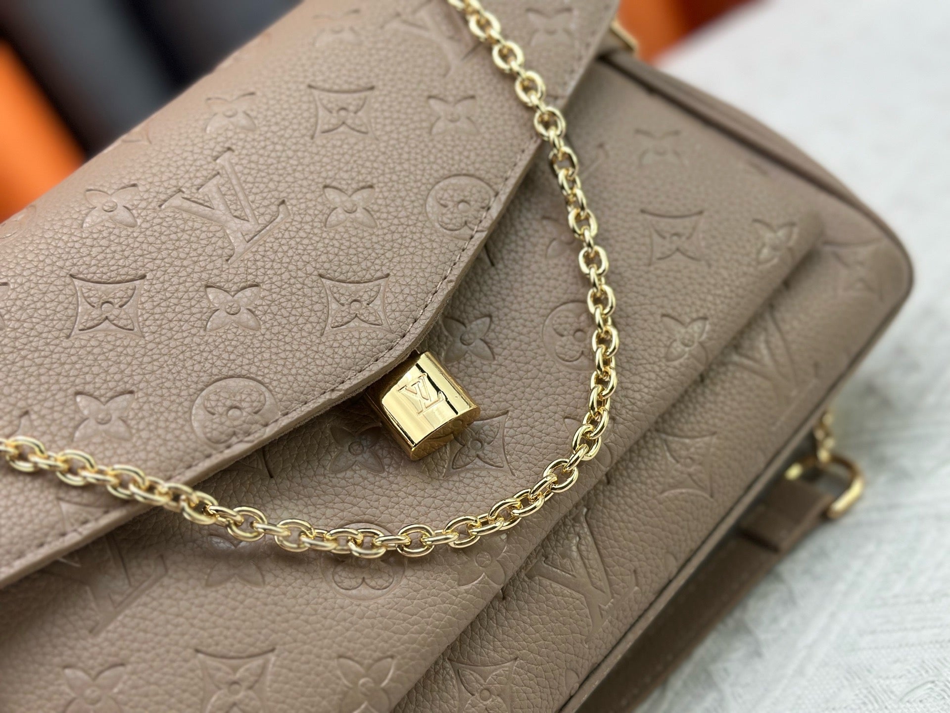 This chic day-to-evening style is the sister design to the Anytime Shopper. It is crafted from Monogram Empreinte leather with a sliding gold-toned chain that complements the signature LV padlock. With multiple carry options, it has an expandable structure thanks to the side buckles, offering plenty of space for everyday essentials.