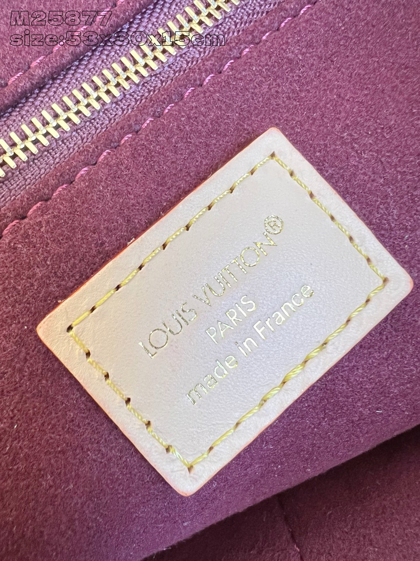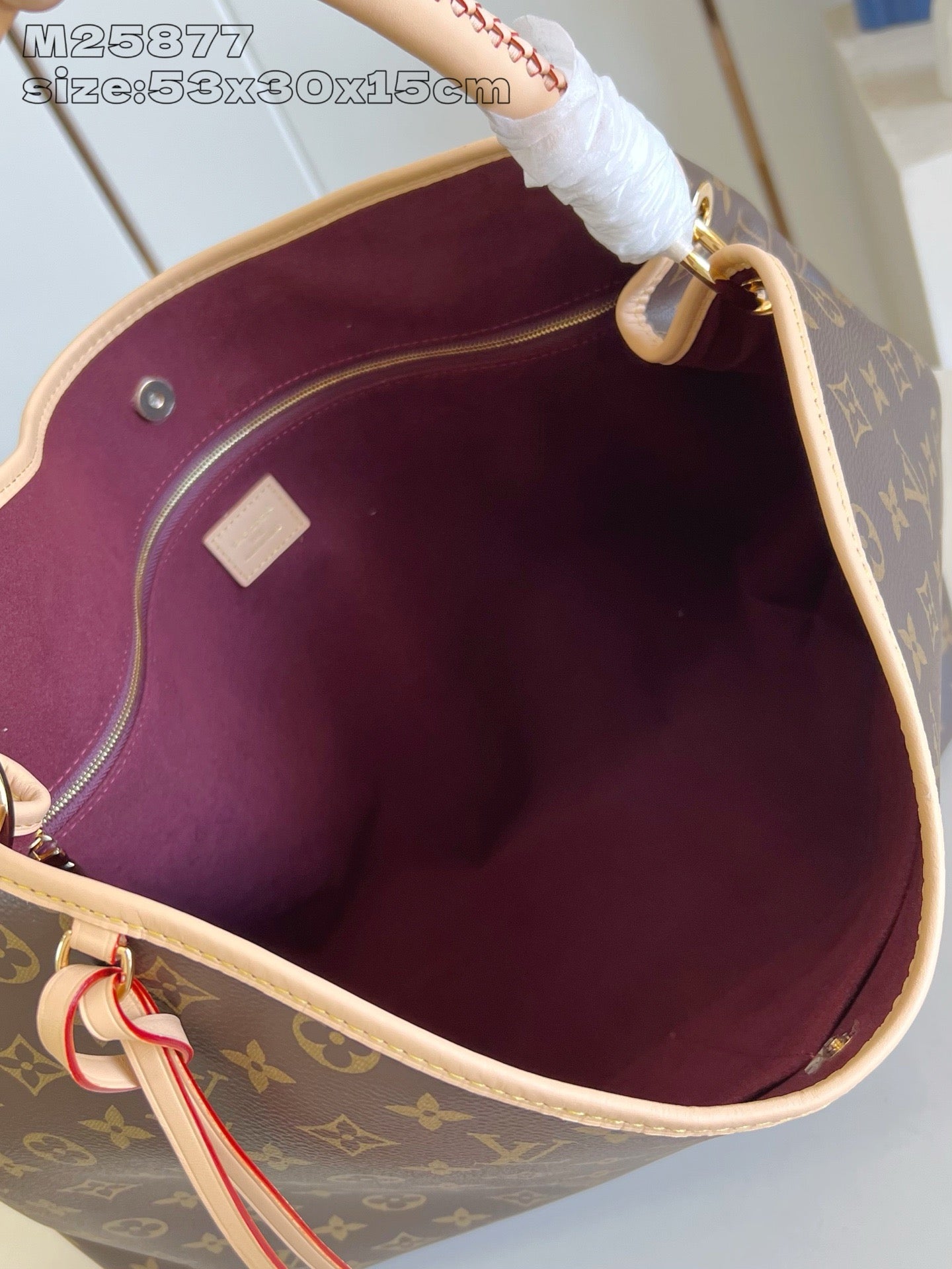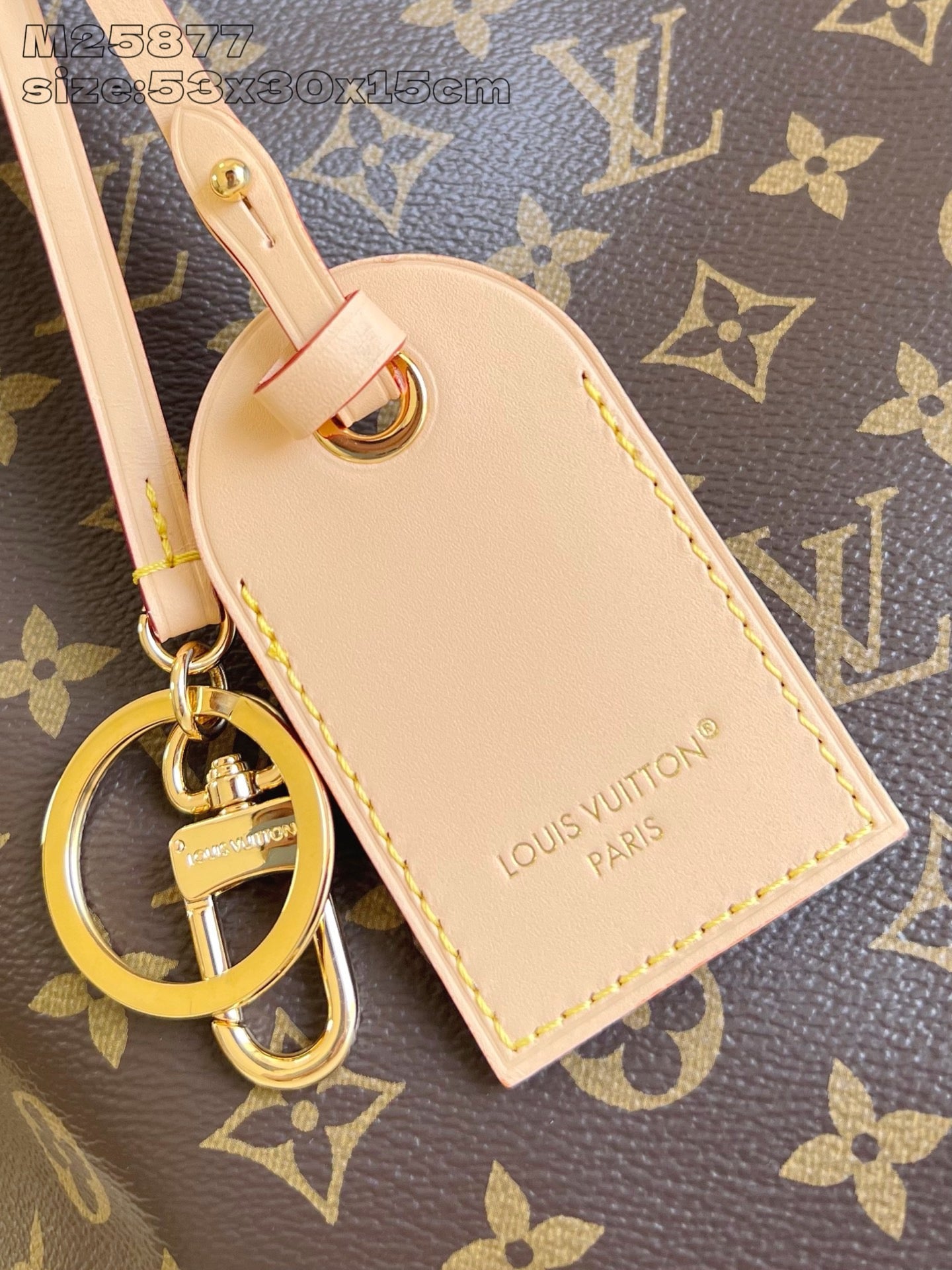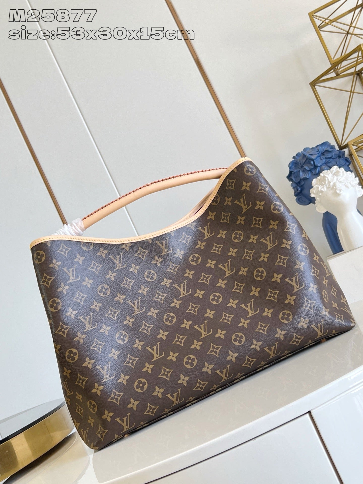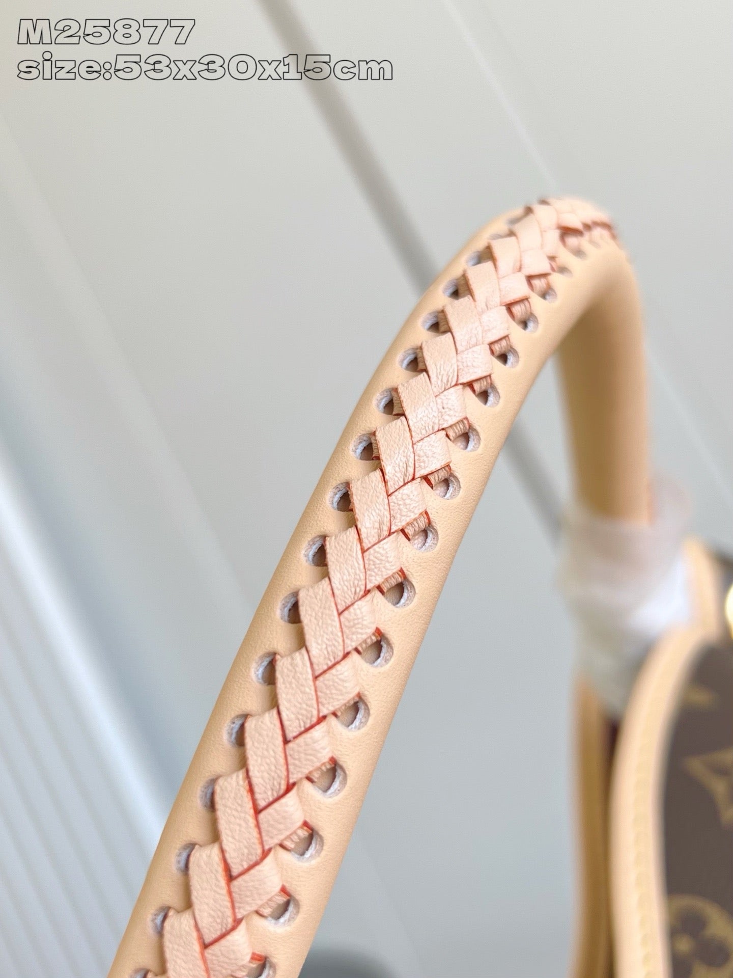 Introducing the Again handbag, a fresh interpretation of the iconic Artsy design that first launched in 2010, now more supple, more iconic, and more meticulously crafted. This edition is rooted in LV DNA, paying tribute to the House’s savoir-faire with a classic Monogram canvas base, a hand-braided handle, and a customizable name tag. It is generously sized to store a laptop and opens to reveal several pockets. The gold-tone hook can be used to attach playful charms.