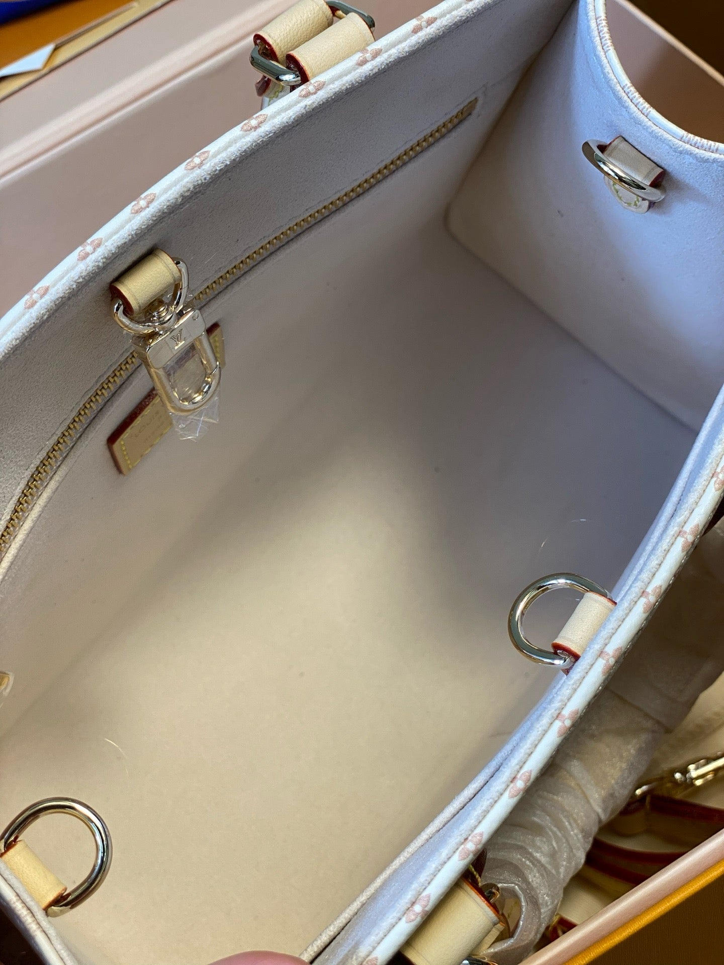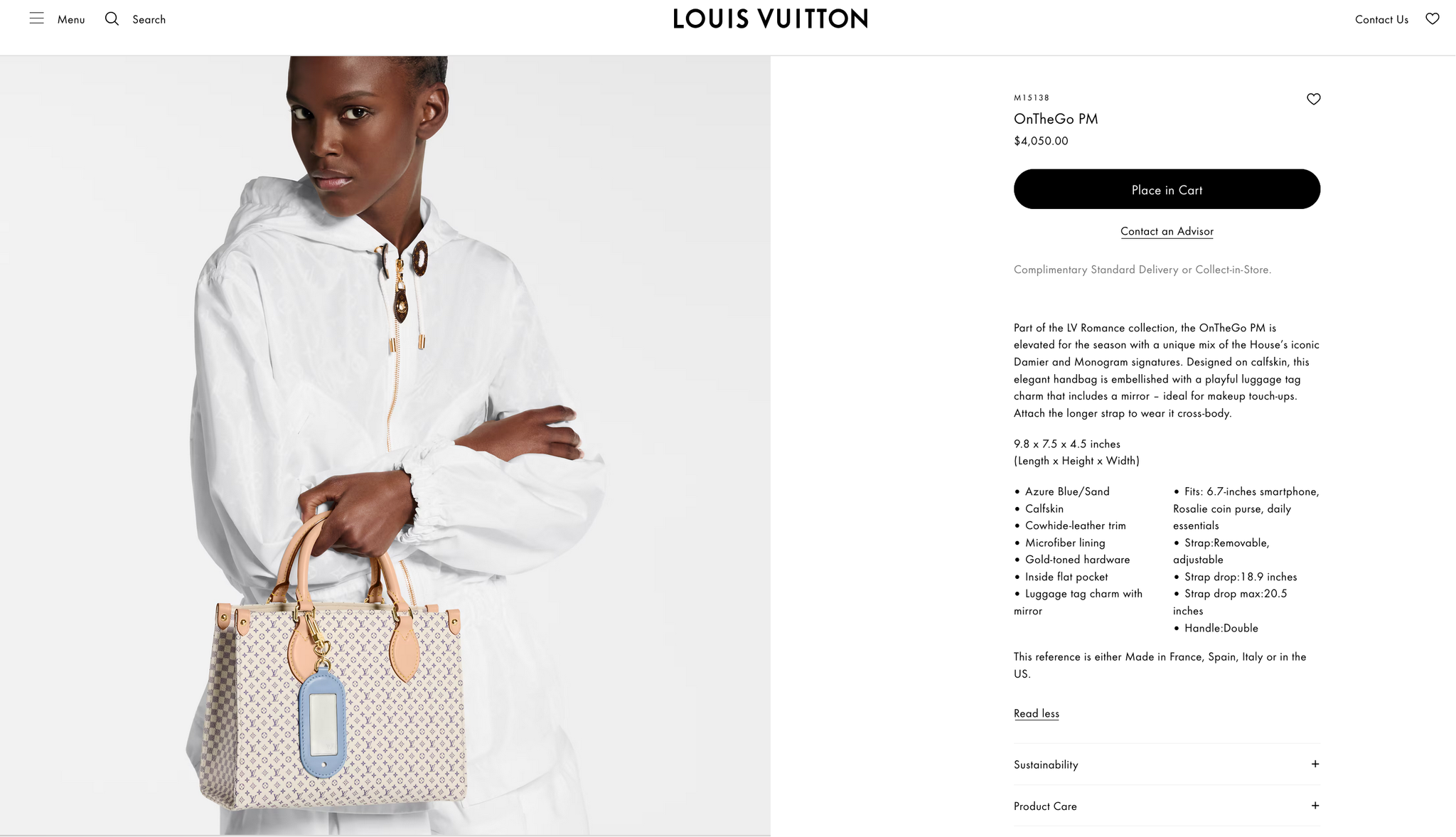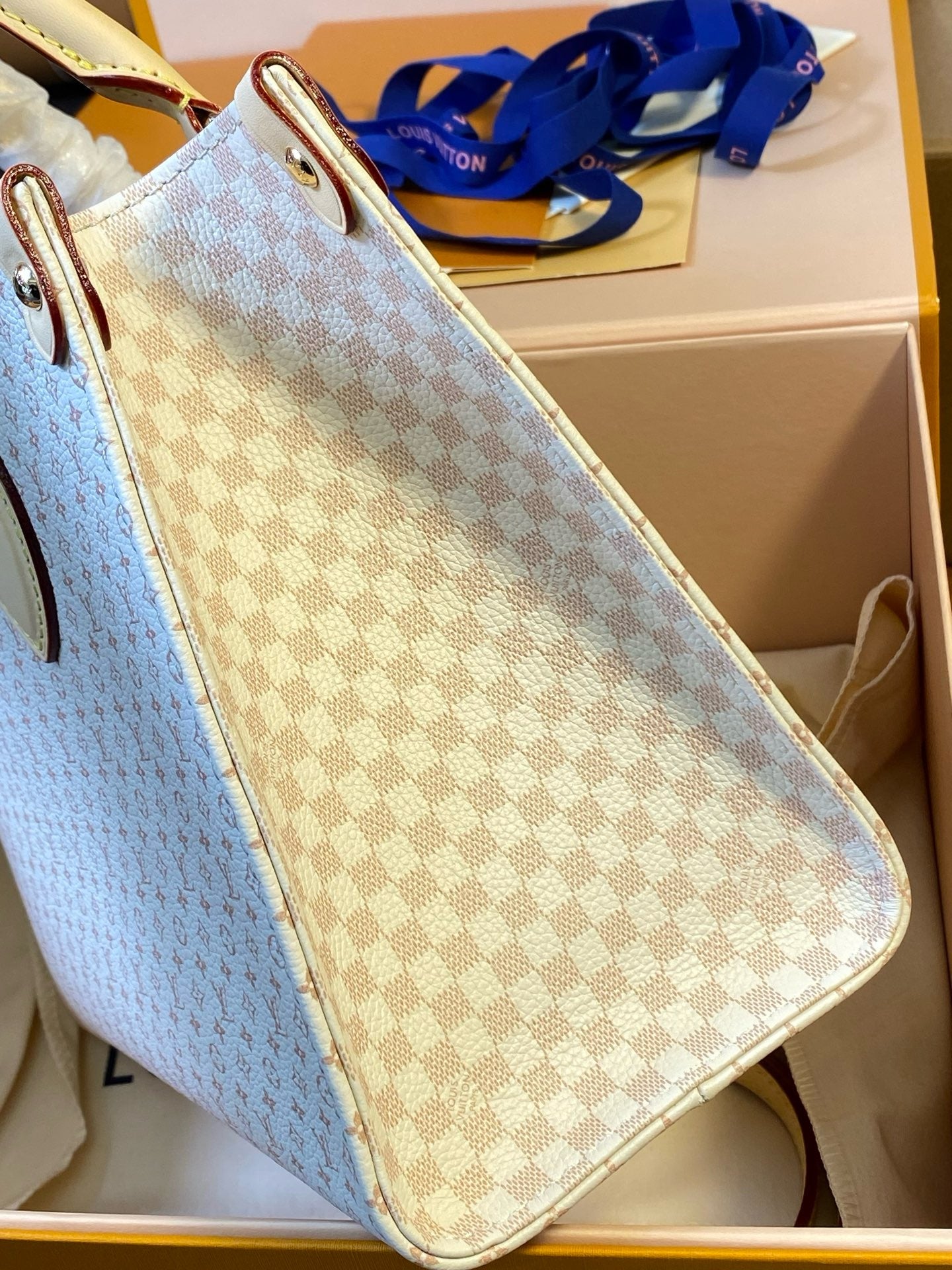 Part of the LV Romance collection, the OnTheGo PM is elevated for the season with a unique mix of the House’s iconic Damier and Monogram signatures. Designed on calfskin, this elegant handbag is embellished with a playful luggage tag charm that includes a mirror – ideal for makeup touch-ups. Attach the longer strap to wear it cross-body.