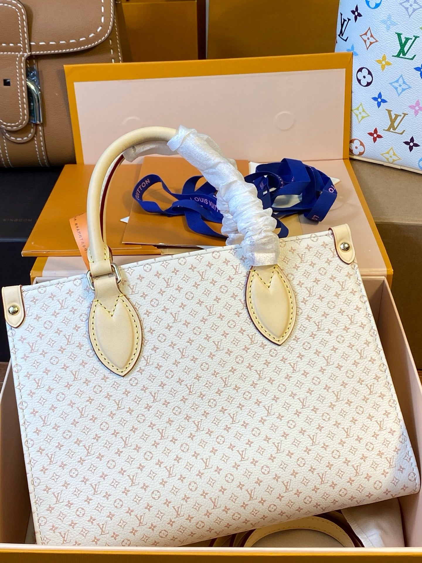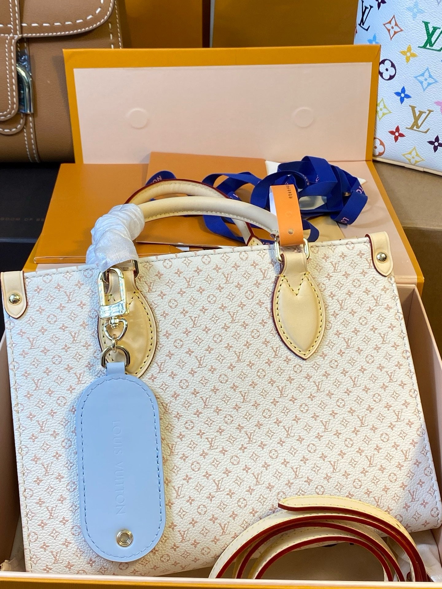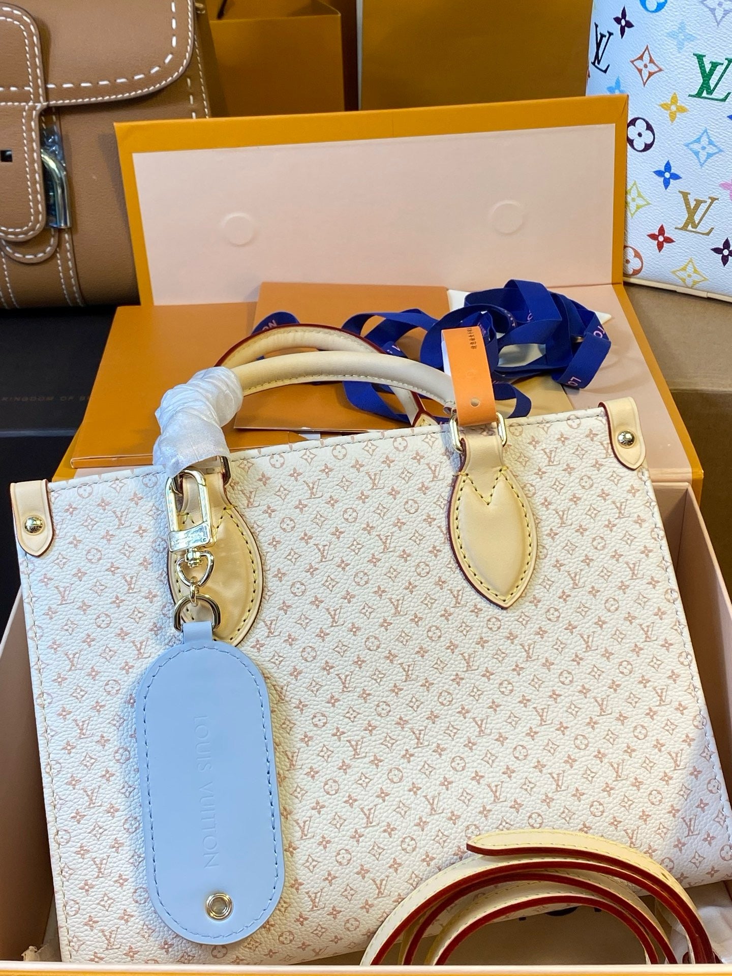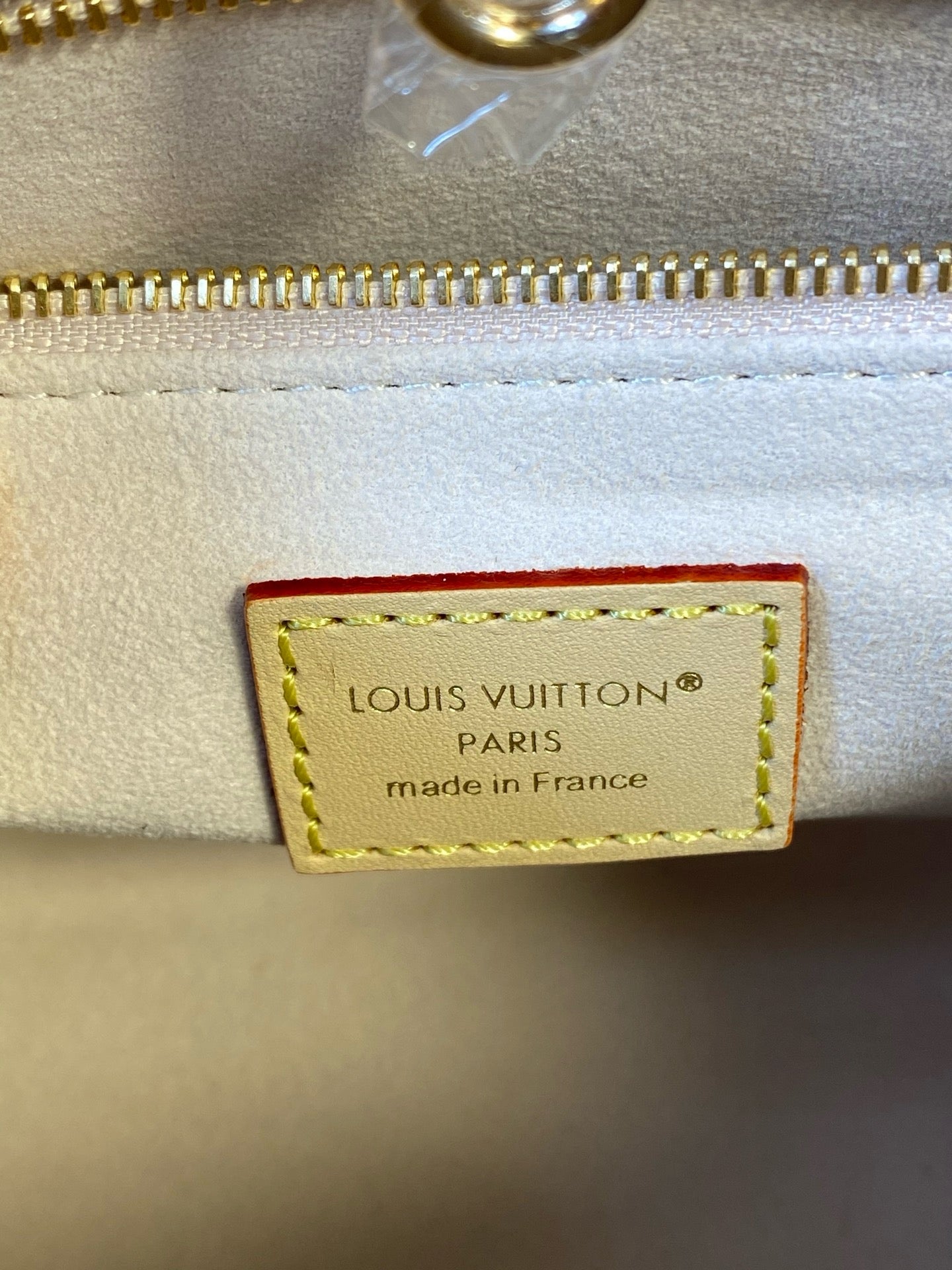 Part of the LV Romance collection, the OnTheGo PM is elevated for the season with a unique mix of the House’s iconic Damier and Monogram signatures. Designed on calfskin, this elegant handbag is embellished with a playful luggage tag charm that includes a mirror – ideal for makeup touch-ups. Attach the longer strap to wear it cross-body.
