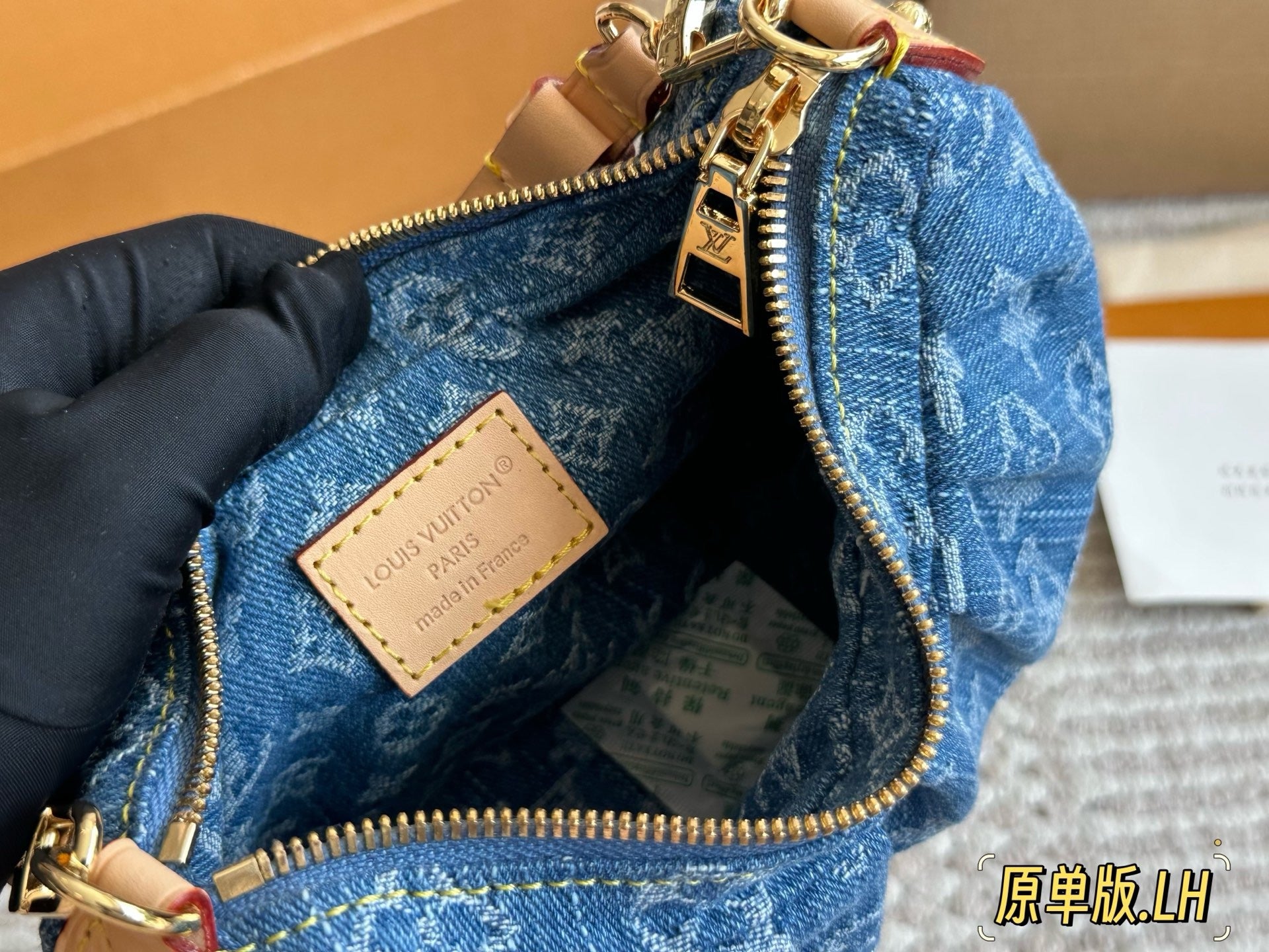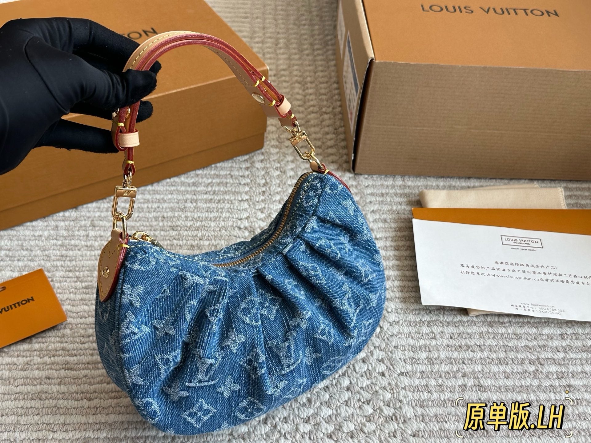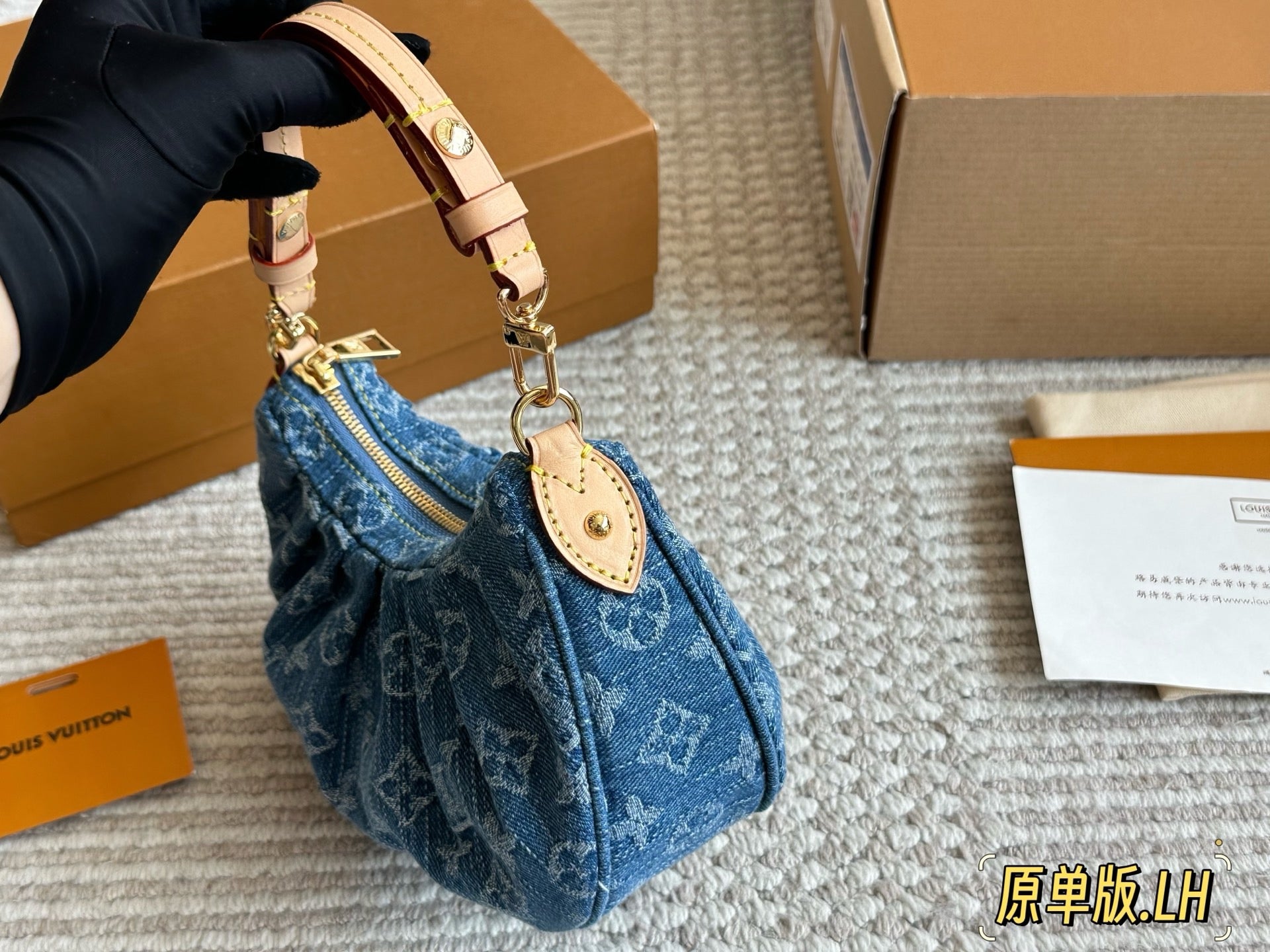 The Pochette Valley handbag is reimagined in Monogram Denim, offering a contemporary take on the classic design. It is made from organic cotton, trimmed with cowhide leather in a contrasting neutral tone that complements the gold-toned hardware. The handle is removable so it can be carried as a pochette, just as its name suggests.
