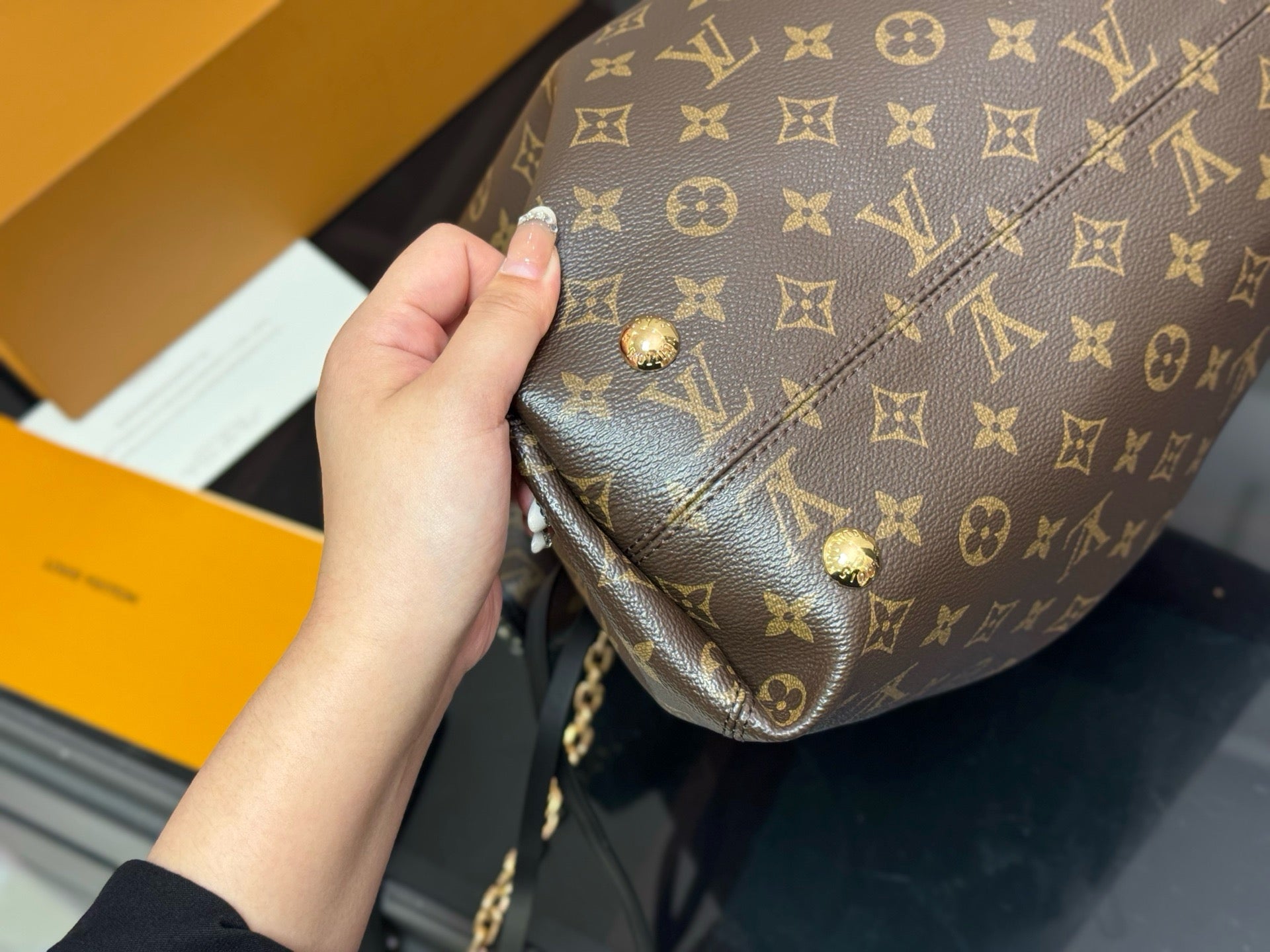 This Off Duty MM belongs to the LV Vibe collection, offering functionality while adding a subtle rock inspired edge to any look. It is crafted from lamb leather adorned with silver-toned hardware, and includes a signature LV Circle on one side.