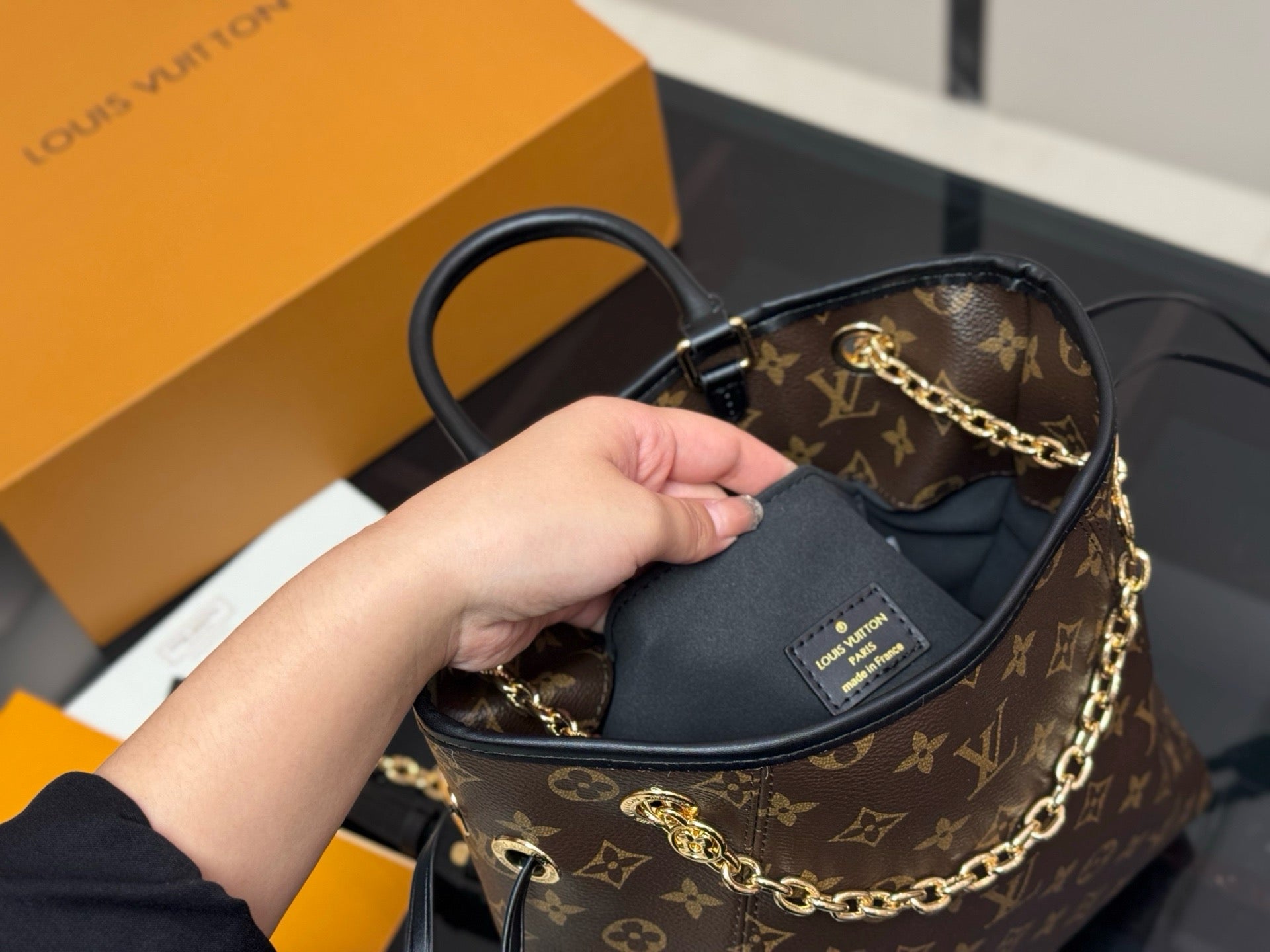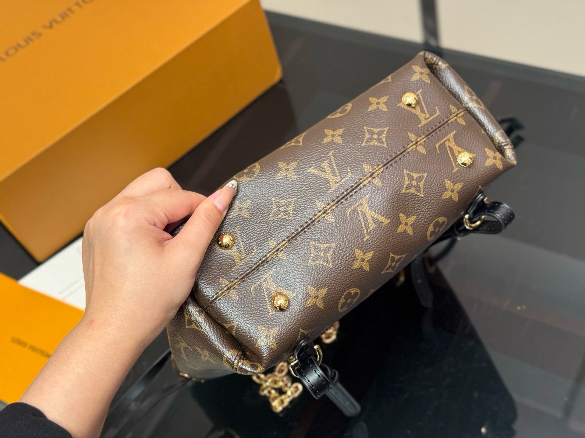 The LV Vibe collection introduces the Off Duty Backpack, a nonchalant hobo style that is perfect for everyday wear. Crafted from lamb leather, it is elevated with a jewel-inspired silver-toned chain that is adorned with a signature LV Circle. The functional design can be worn multiple ways, with options to transform it into a backpack or into a chain hobo.