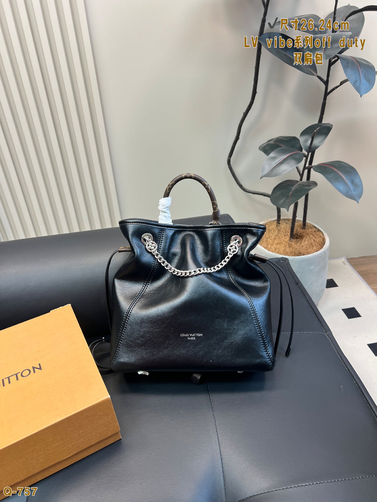 The LV Vibe collection introduces the Off Duty Backpack, a nonchalant hobo style that is perfect for everyday wear. Crafted from lamb leather, it is elevated with a jewel-inspired silver-toned chain that is adorned with a signature LV Circle. The functional design can be worn multiple ways, with options to transform it into a backpack or into a chain hobo.