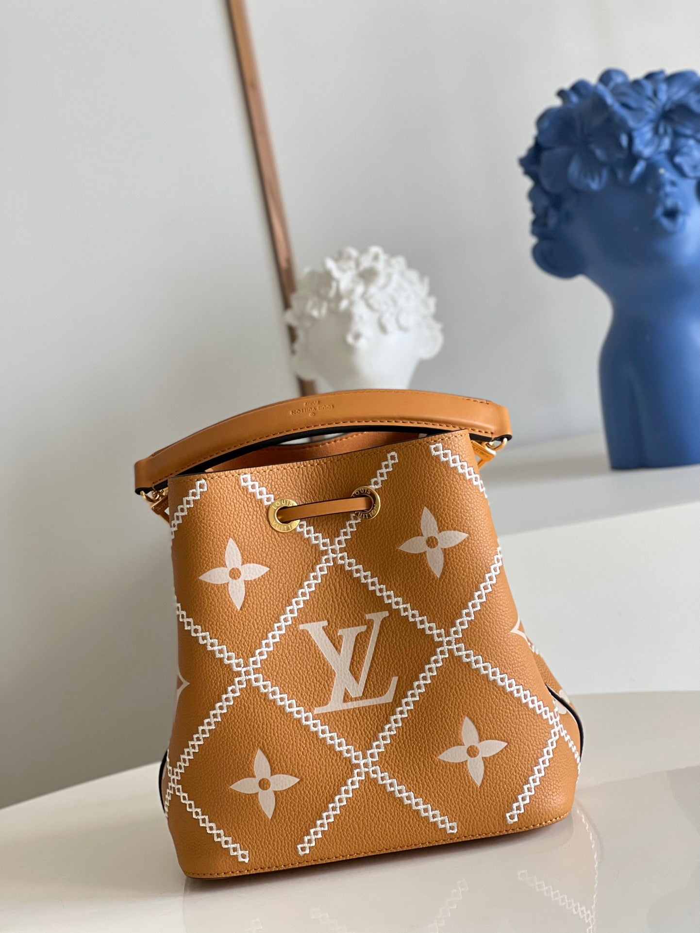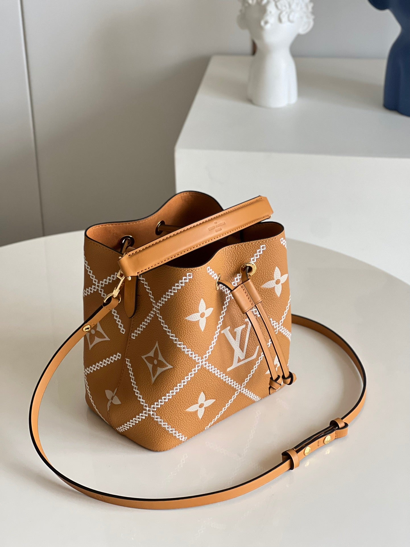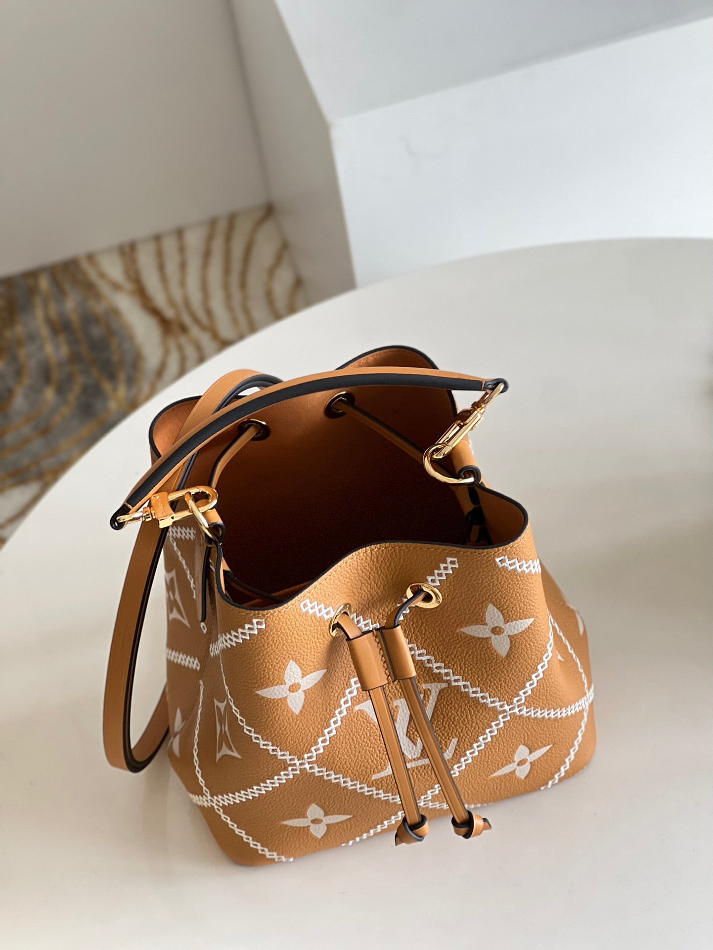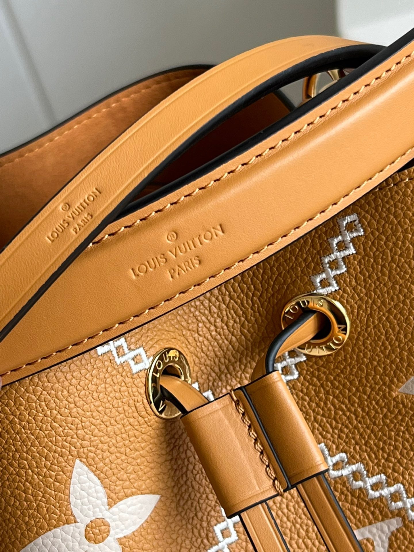 The NéoNoé bucket bag in Monogram Empreinte looks more fashionable than ever, adorned with immaculately crafted contrast stitching. The supple leather is printed, embossed, then embroidered with a distinctive pattern that recalls the quilted lining of the Maison’s trunks. The refined embellishment makes this versatile NéoNoé a statement piece for Spring 2022 and seasons to come.