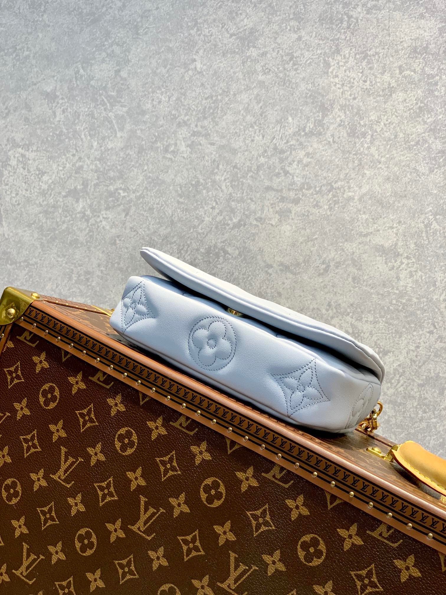 Part of the Bubblegram line, this Wallet on Strap is crafted from soft, padded calfskin, embroidered with the iconic Monogram pattern. This practical, on-trend wallet, which is secured by a magnetic flap, comes with a sporty nylon strap for shoulder or cross-body carry. When the strap is removed, it transforms into a chic, evening-ready clutch.