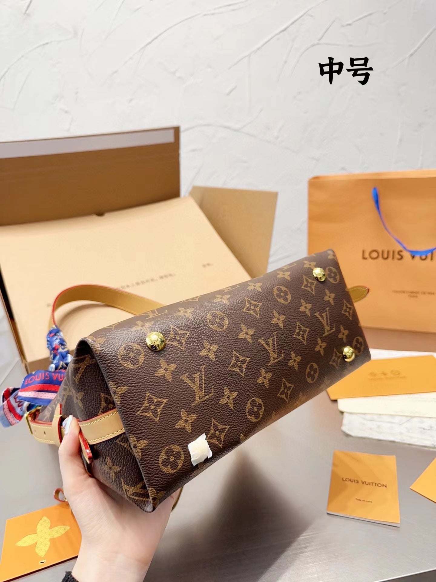- Gold-color hardware
