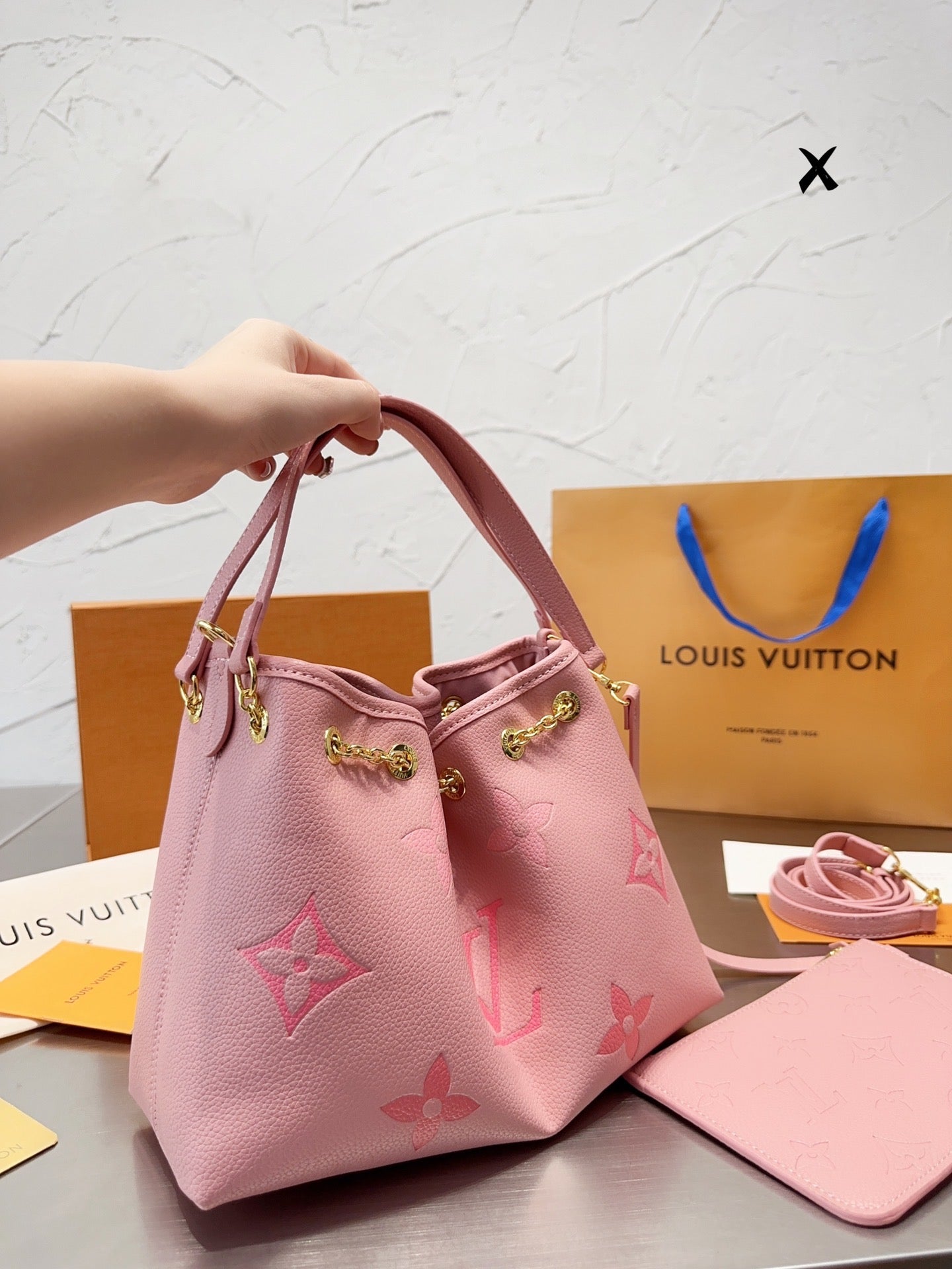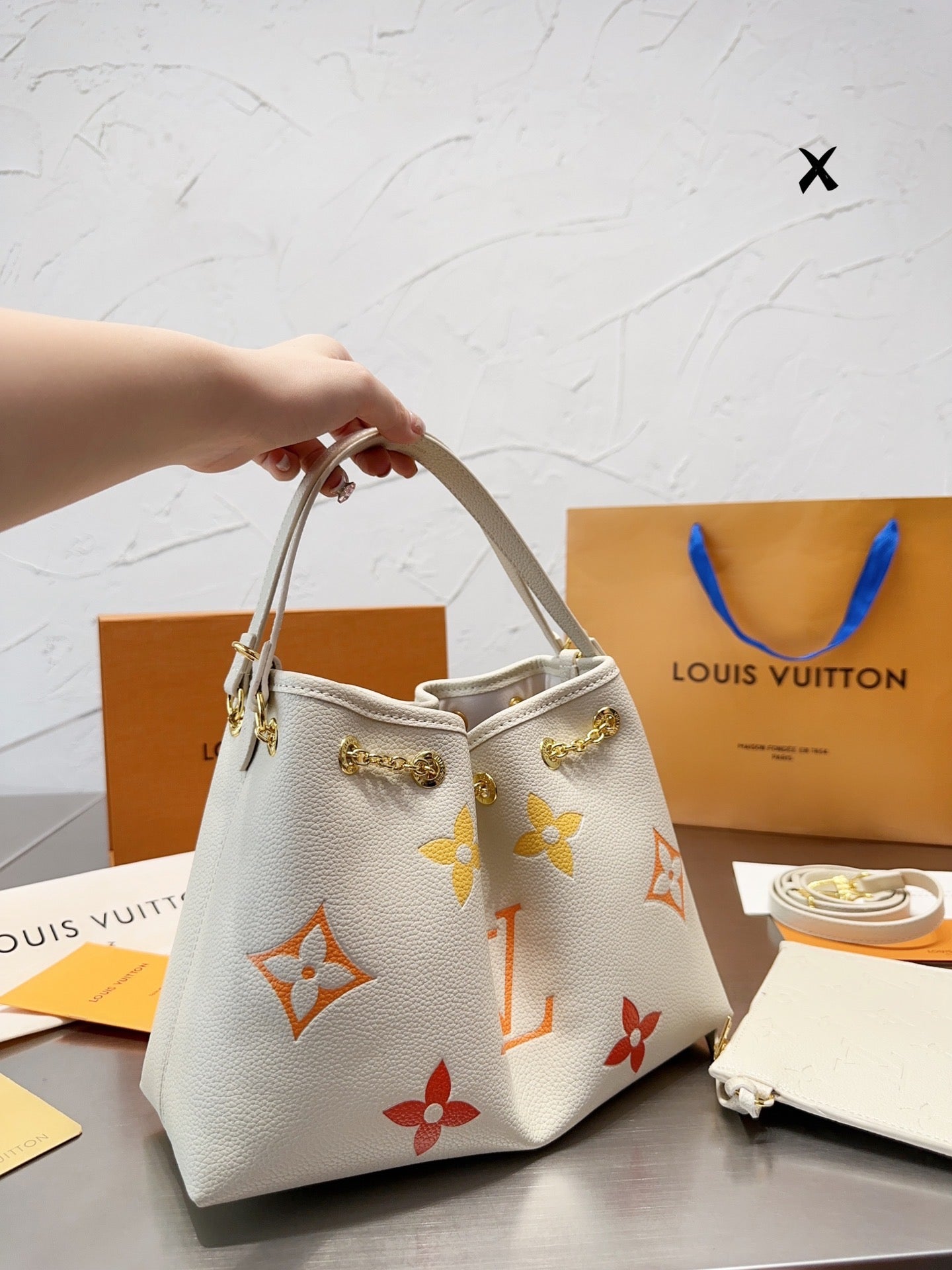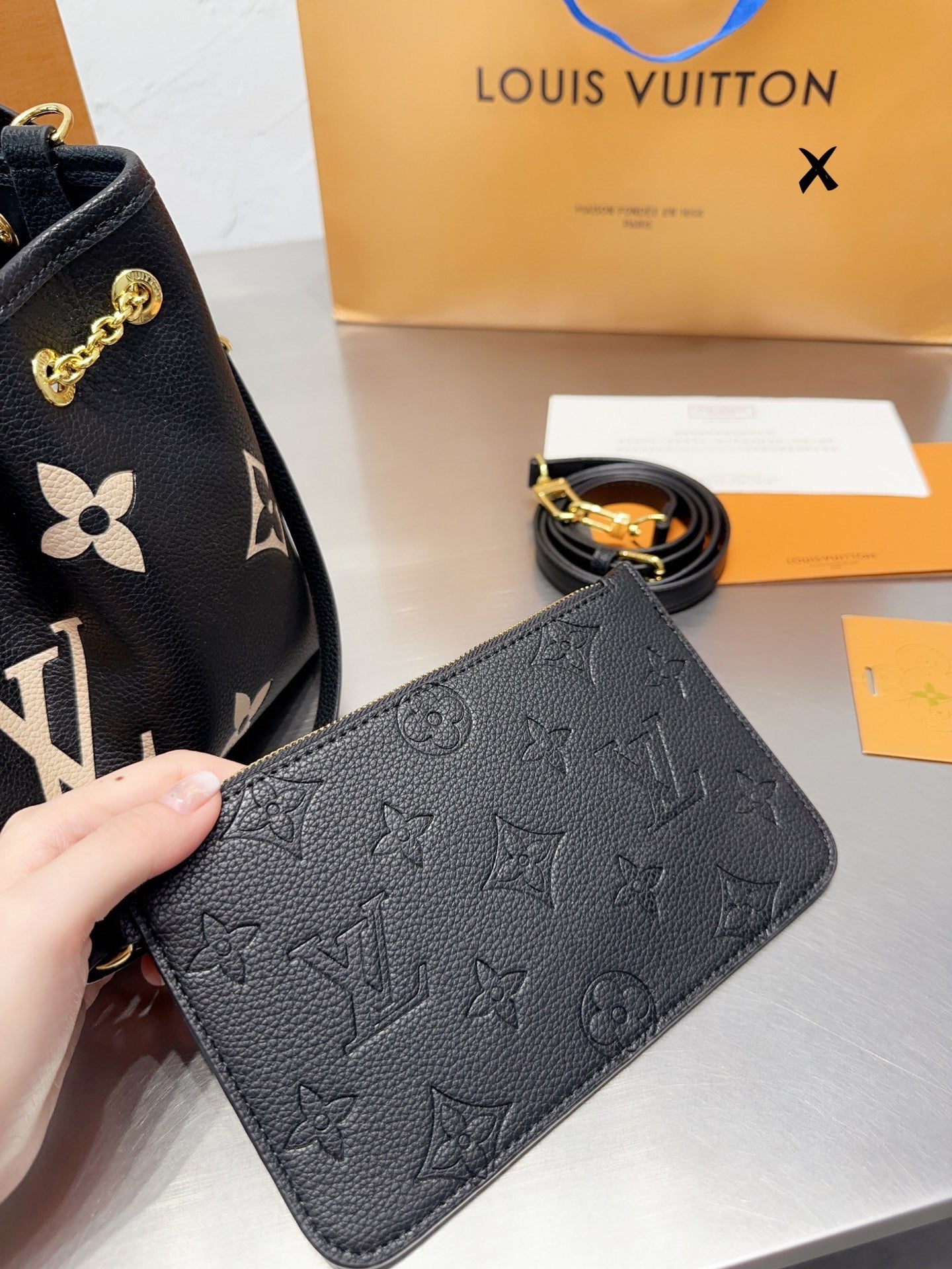 The Summer Bundle handbag is an exclusive new drawstring model, part of the summery Dégradé capsule. Crafted from embossed Monogram Empreinte leather in gradient shades, it will enhance every seasonal silhouette. The perfect midday-to-midnight companion, the bag can be styled in a host of fashionable ways, thanks to its double handles and removable cross-body strap.