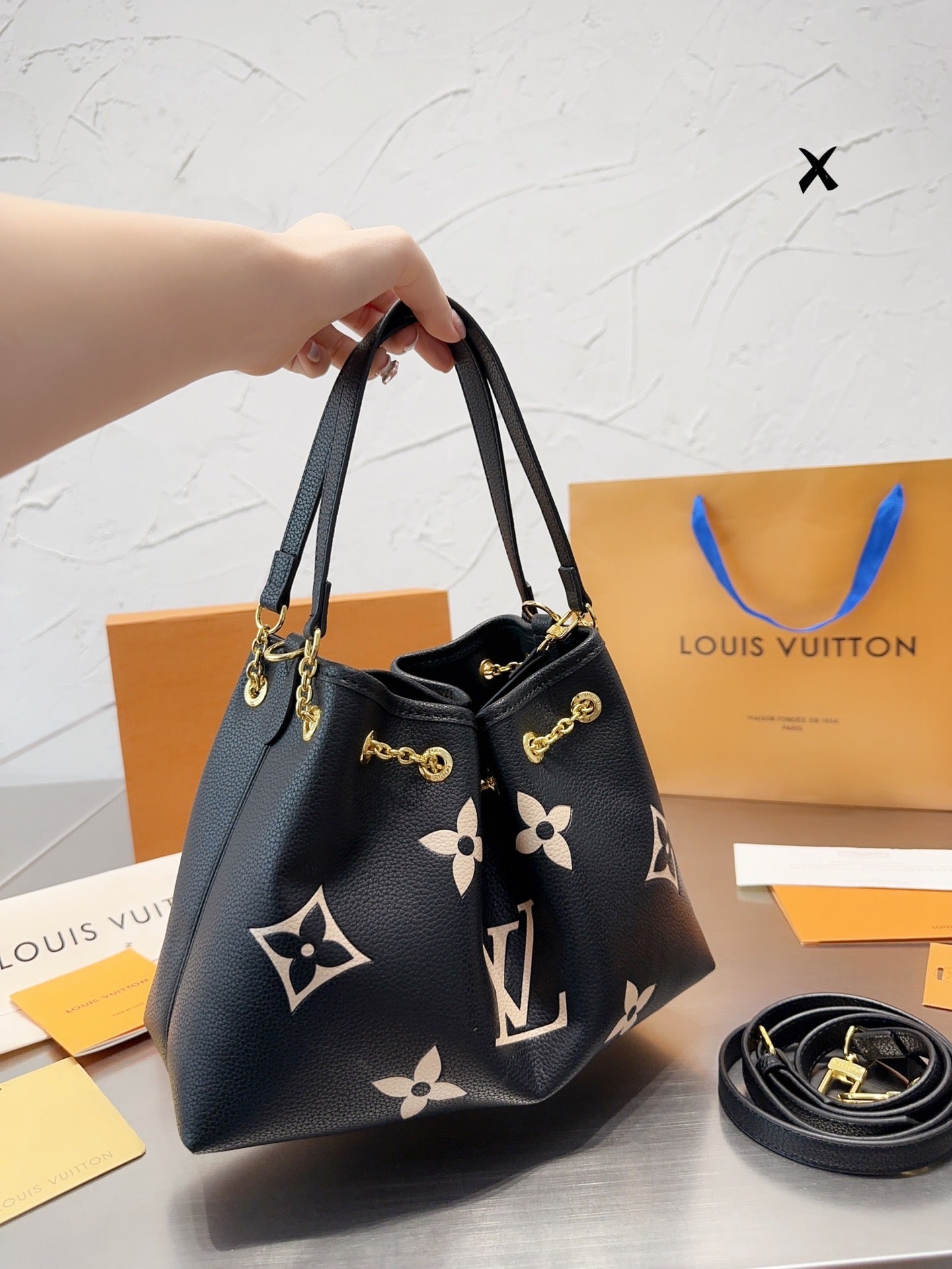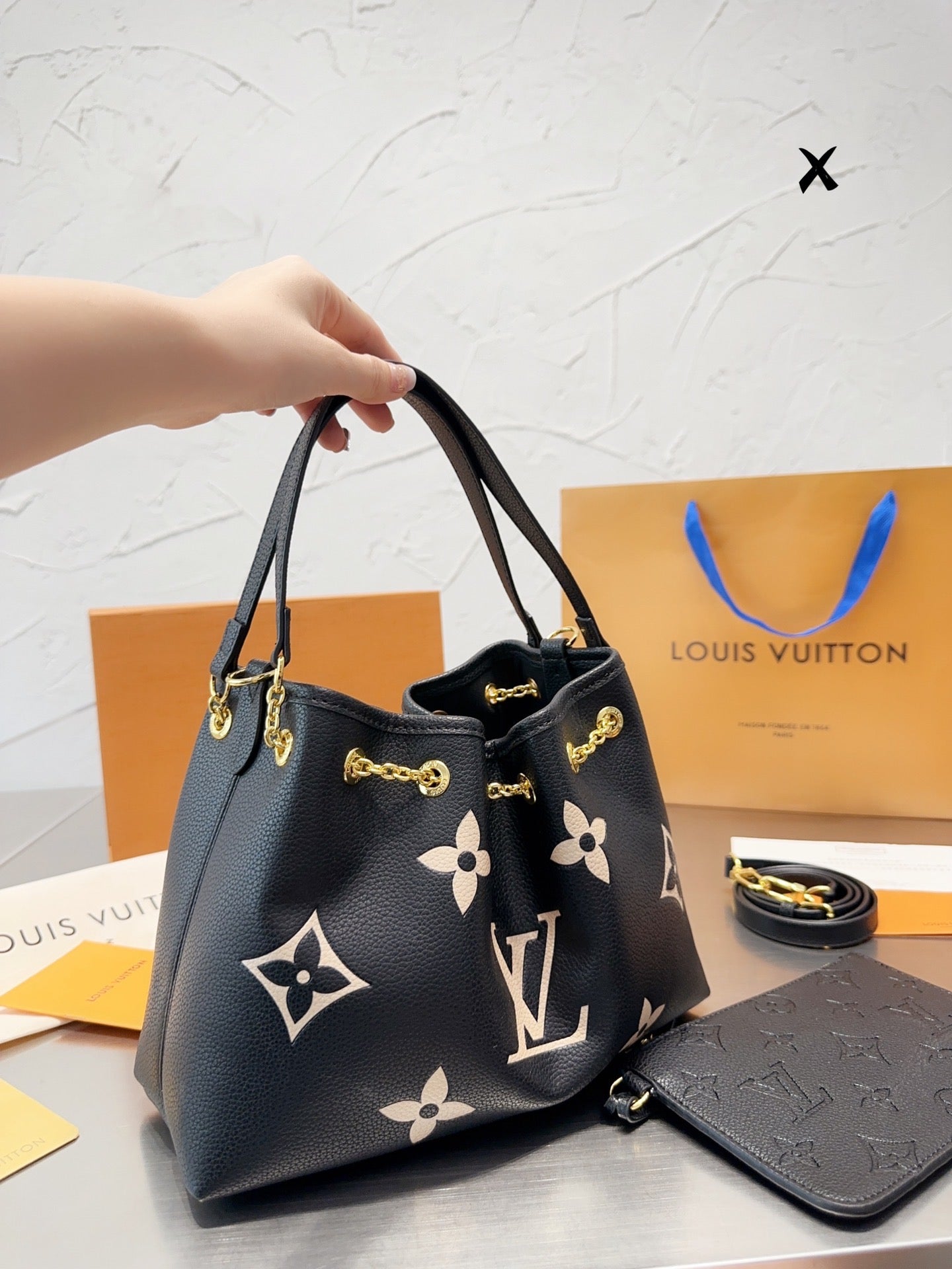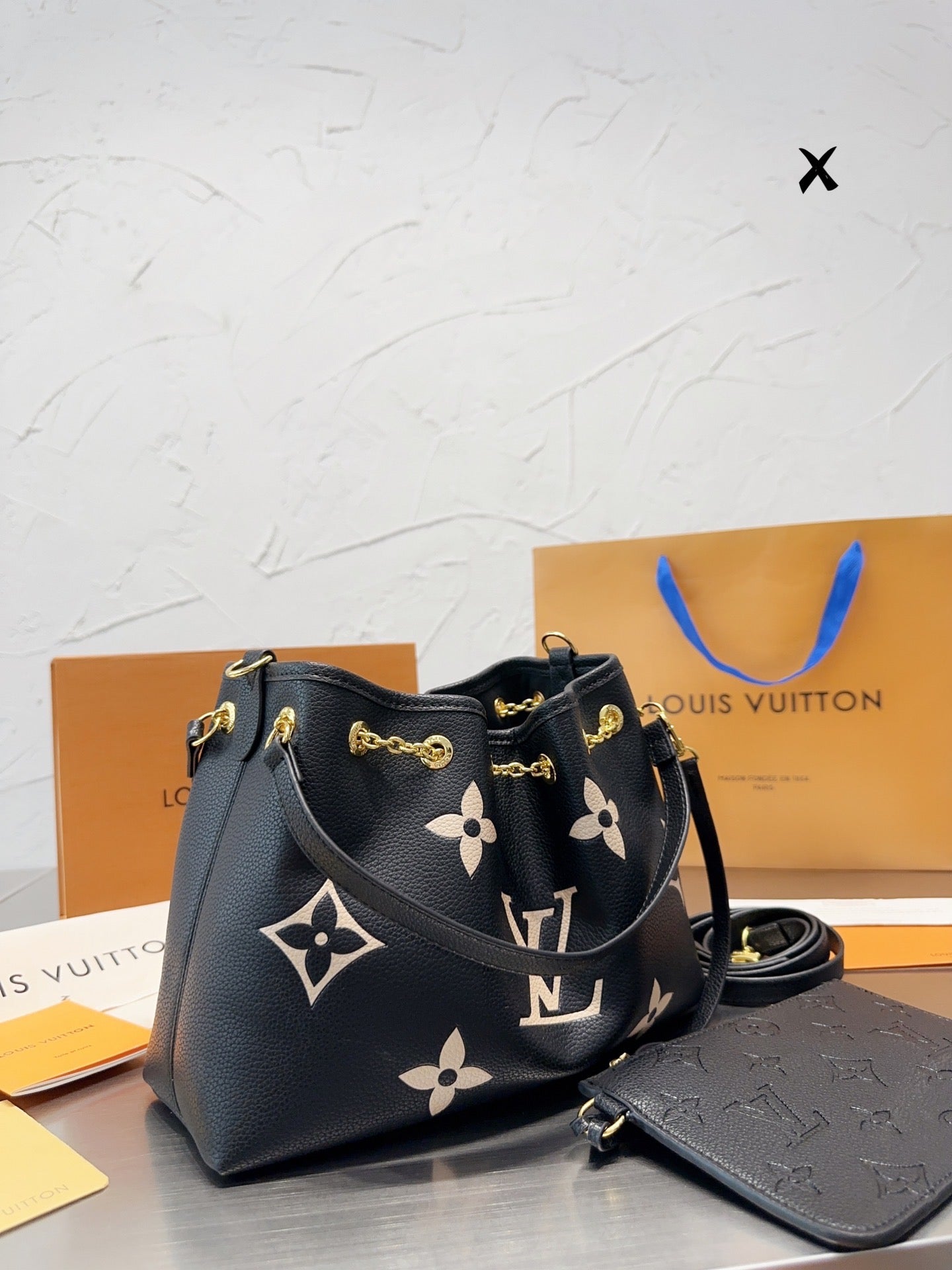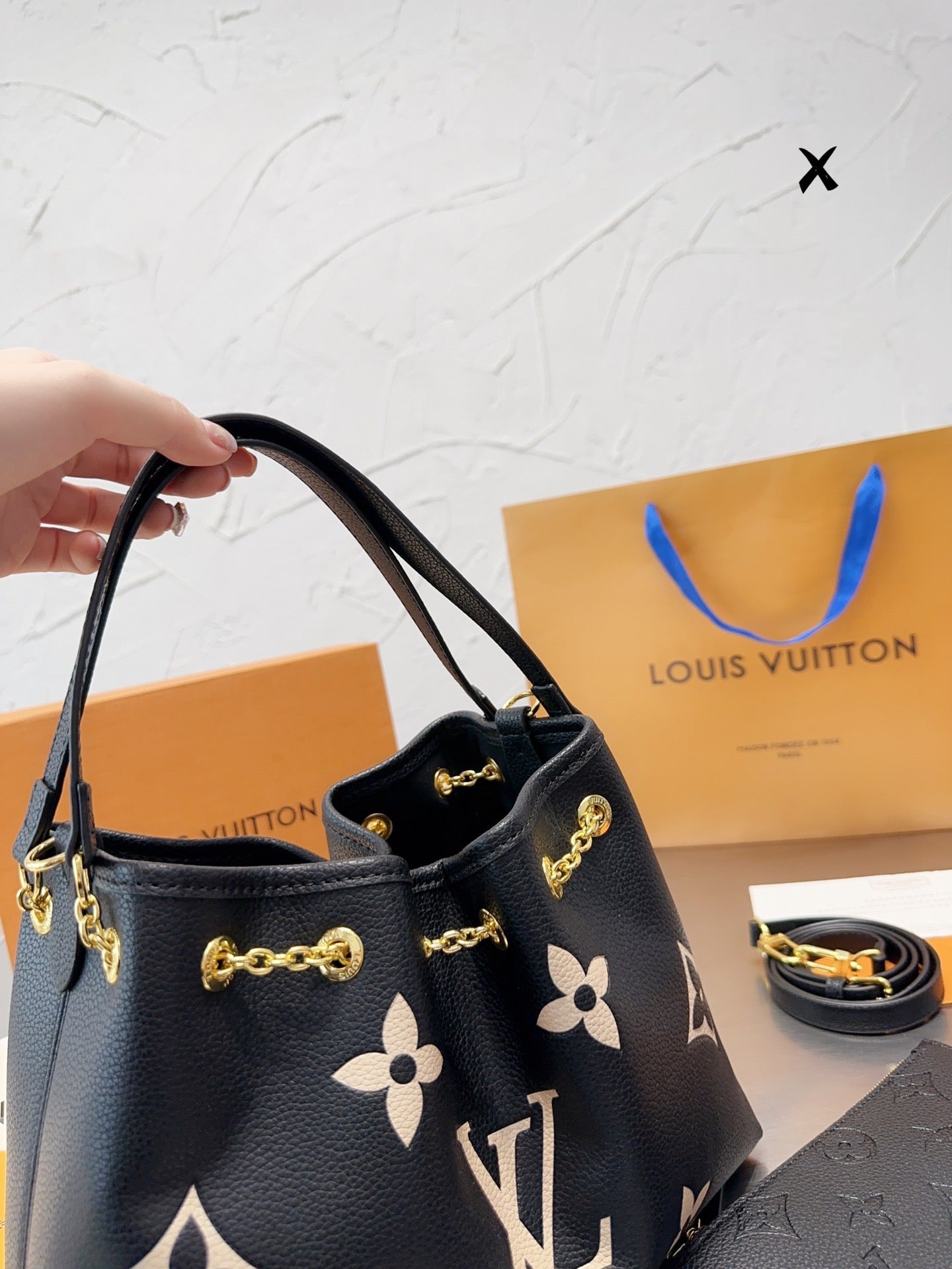 The Summer Bundle handbag is an exclusive new drawstring model, part of the summery Dégradé capsule. Crafted from embossed Monogram Empreinte leather in gradient shades, it will enhance every seasonal silhouette. The perfect midday-to-midnight companion, the bag can be styled in a host of fashionable ways, thanks to its double handles and removable cross-body strap.