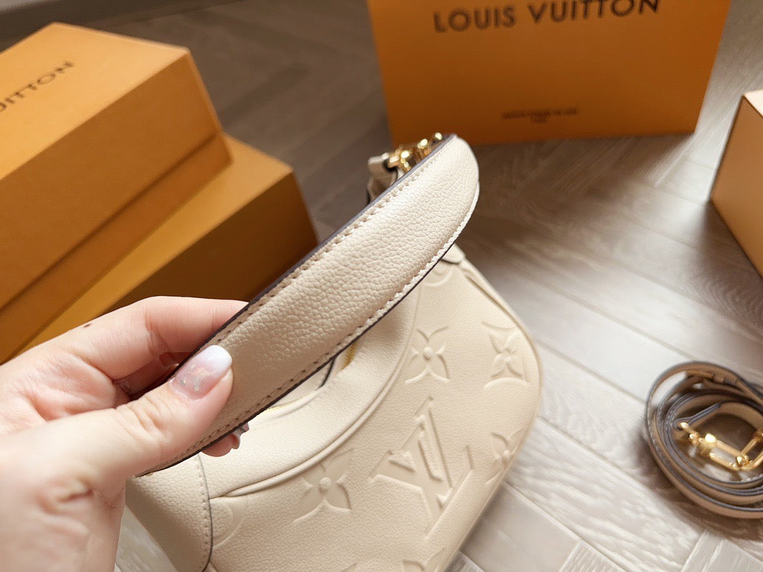 To start the season on a fresh note, the Maison introduces the Bagatelle, a feminine, mini hobo style in Monogram Empreinte leather. With its sleek lines, supple hand and versatile carry options, this model suits virtually every mood and occasion, from midday to midnight. A compact, elegant bag, the Bagatelle is sized to hold all one’s daily essentials.