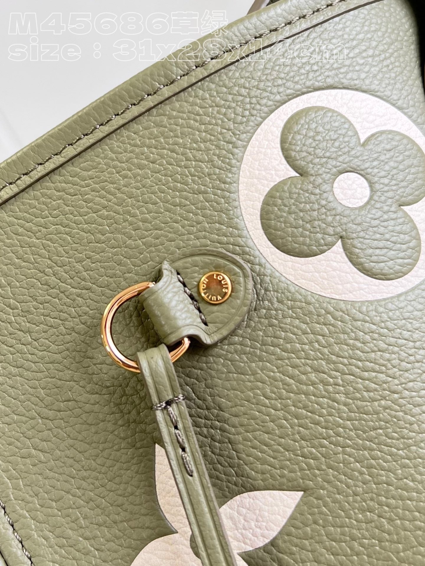 This Neverfull MM tote bag is fashioned from grained Monogram Empreinte cowhide leather. Embossed with the Giant Monogram pattern, the Neverfull is a spacious bag with side laces that cinch for a sleek allure or loosen for a casual look. Inside a removable pouch is attached to the bag by a leather cord.