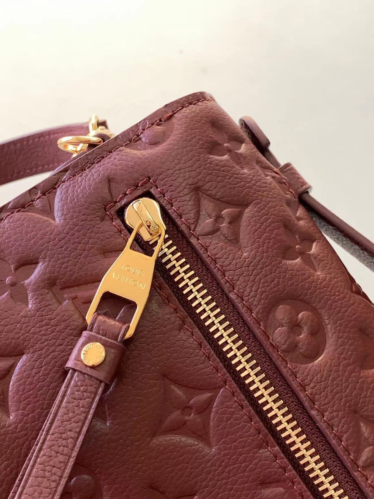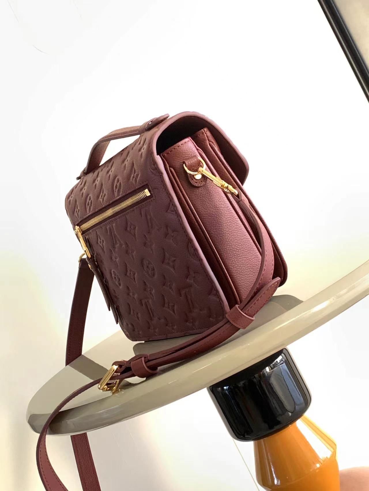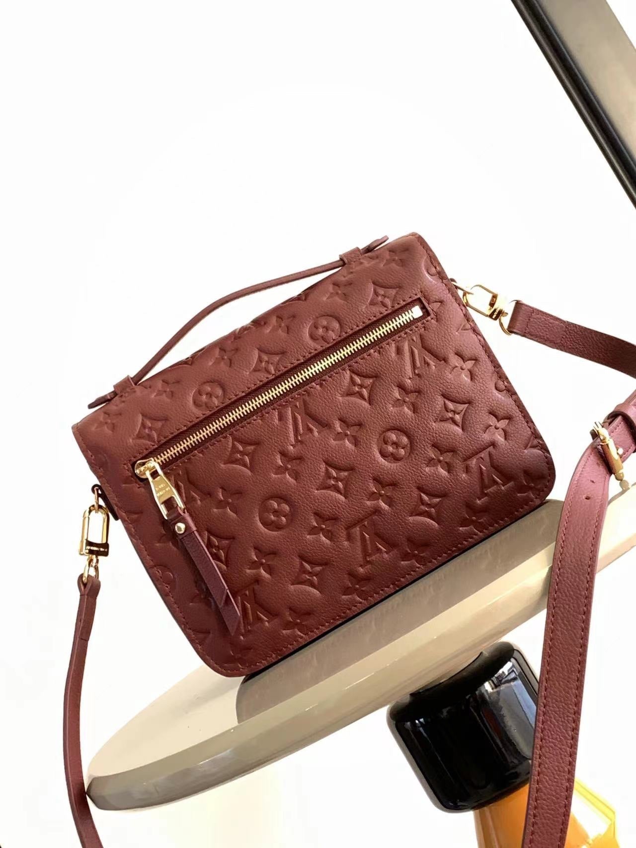 The Pochette Metis MM handbag is fashioned from supple Monogram Empreinte cowhide leather, embossed with a Giant Monogram pattern. The exquisite gold-color S-lock features a delicately embossed LV Circle signature as well as an embossed “Louis Vuitton Paris” surrounded by four golden rivets. It has an outside zipped pocket and three inside compartments.
