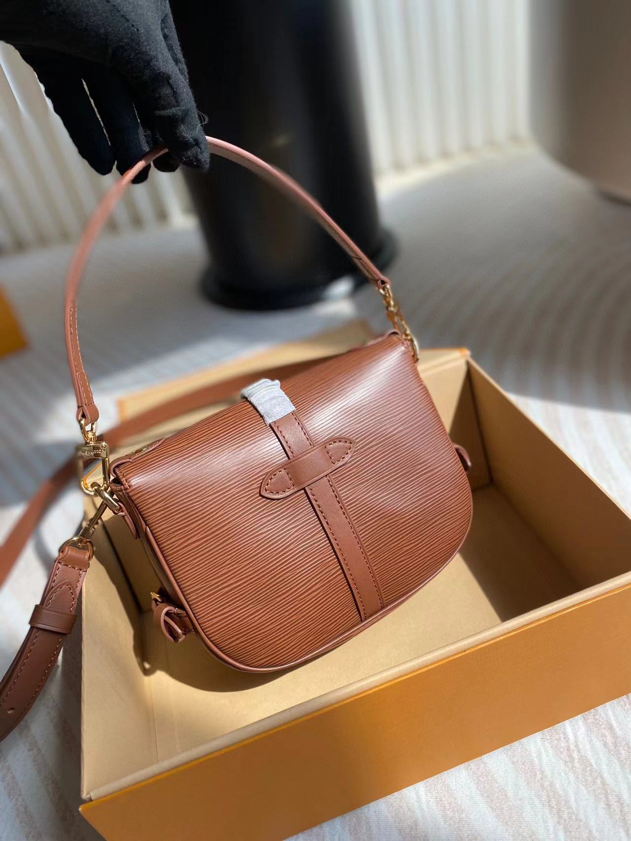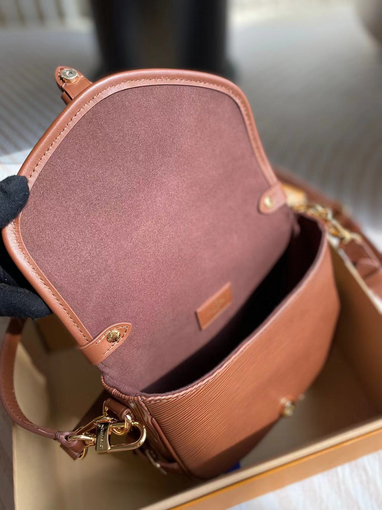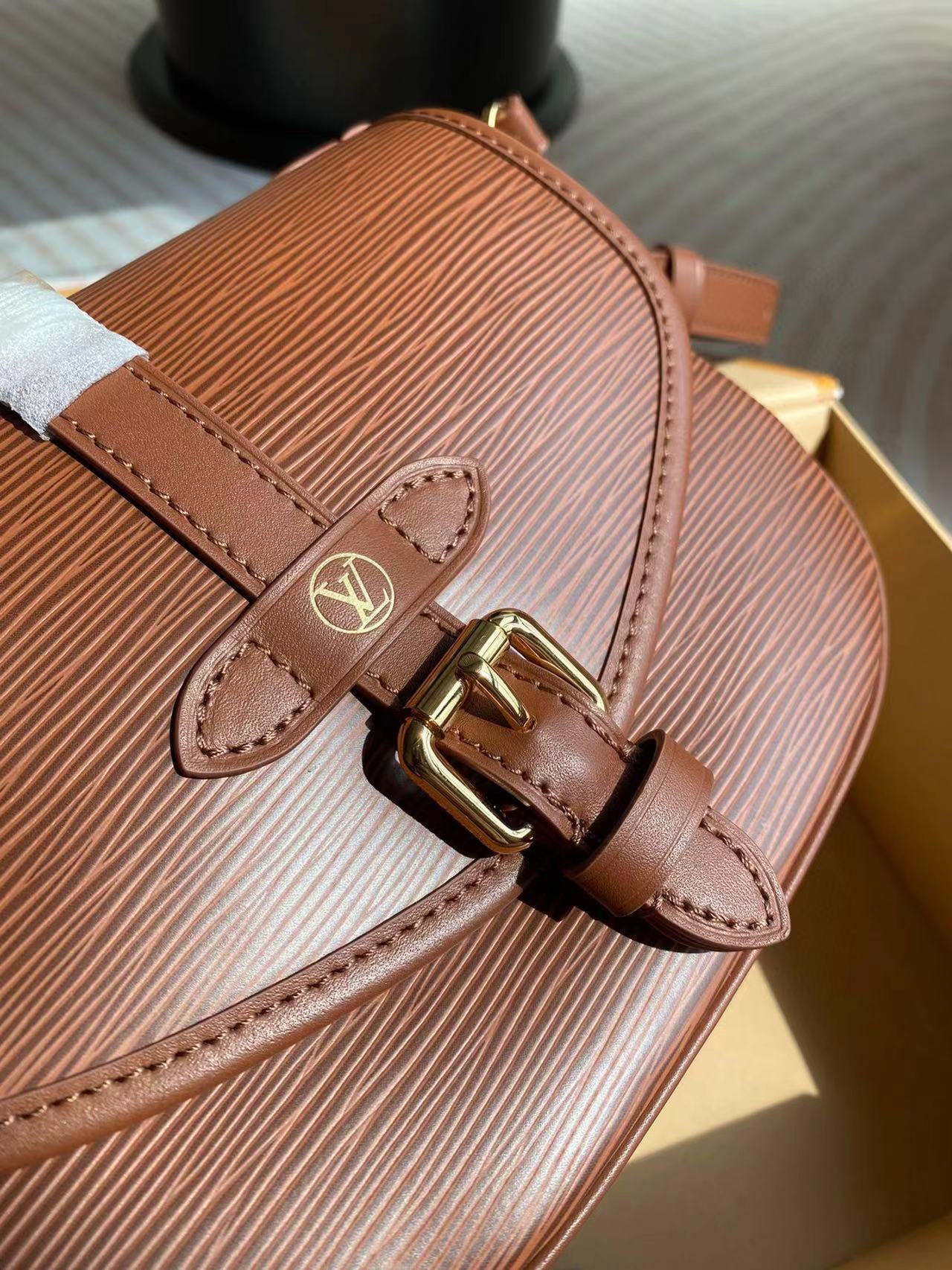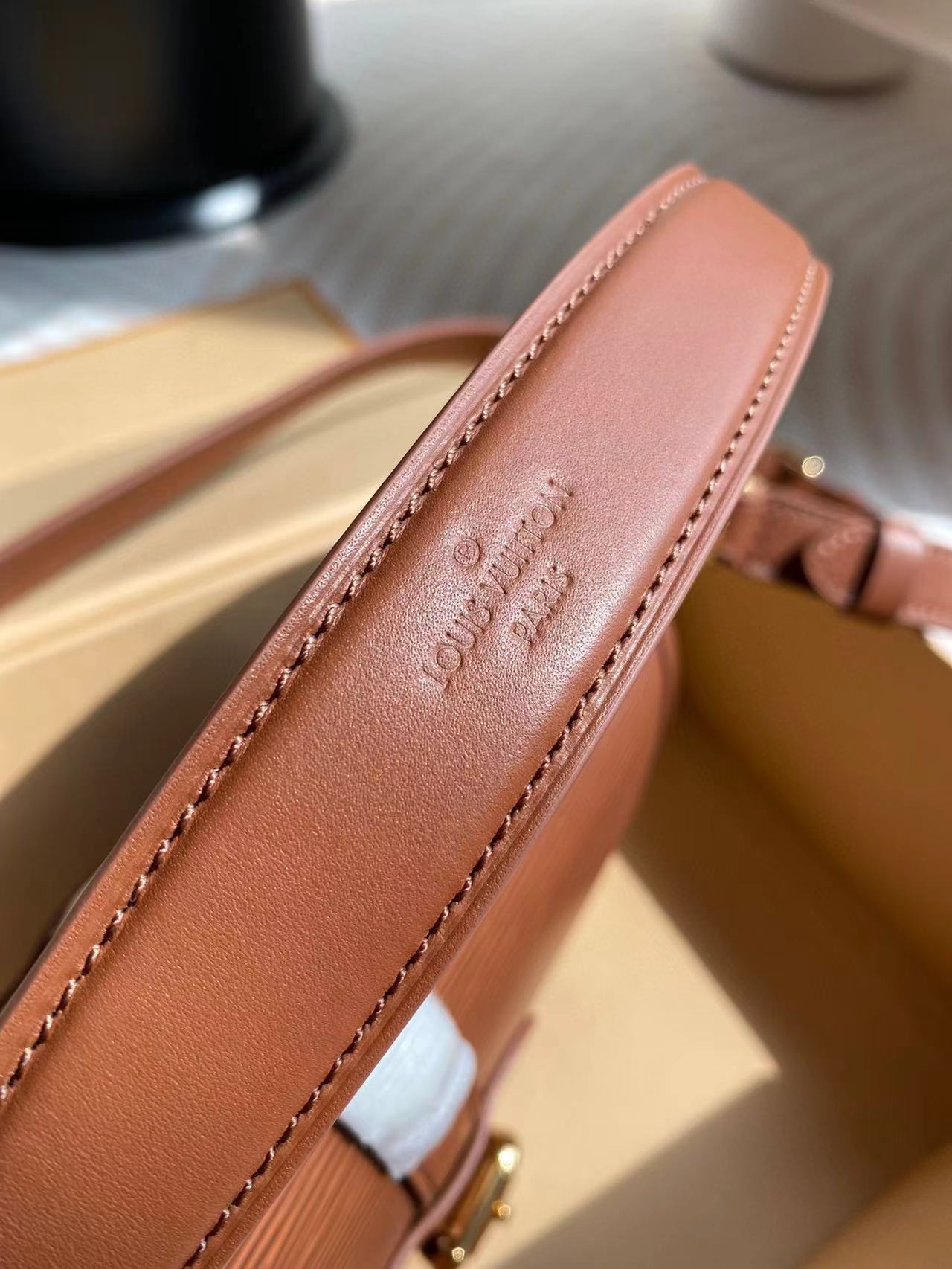 This edition of the Saumur BB in a new, softer Epi leather revisits an archival design. The saddle-bag silhouette is detailed with House signatures, including the LV Circle emblem and finely crafted buckles. The front buckle is fitted with a magnetic closure, a modern touch. The strap and top handle are both detachable, for a variety of styling options.