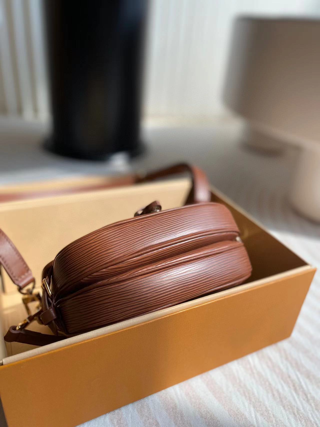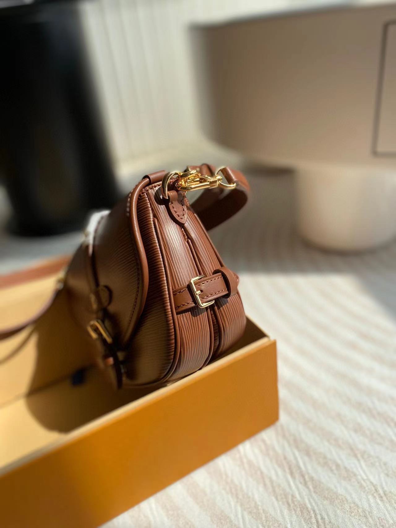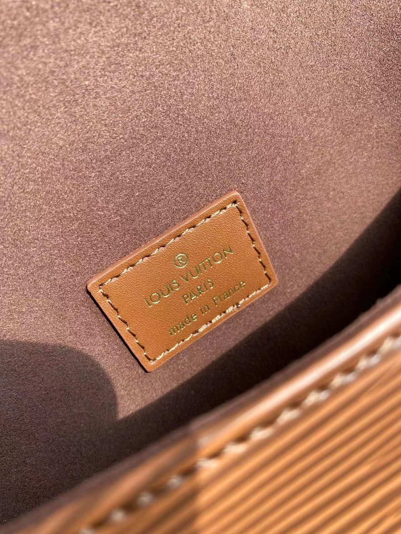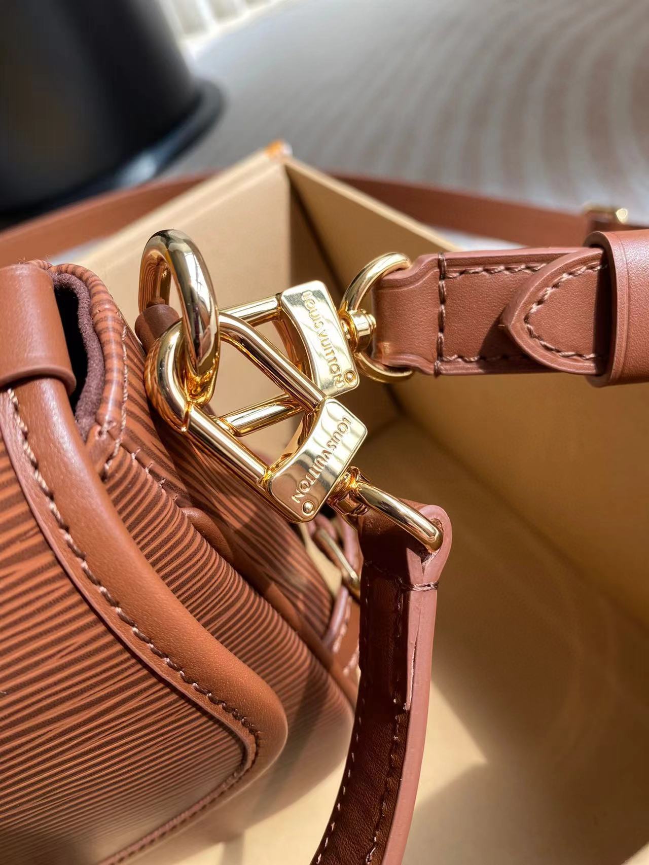 This edition of the Saumur BB in a new, softer Epi leather revisits an archival design. The saddle-bag silhouette is detailed with House signatures, including the LV Circle emblem and finely crafted buckles. The front buckle is fitted with a magnetic closure, a modern touch. The strap and top handle are both detachable, for a variety of styling options.