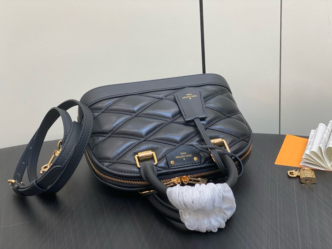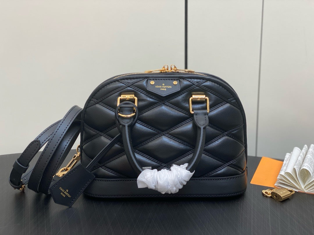 Nicolas Ghesquière invents a colorful new version of the House’s historic quilting on this Alma BB. Made from lambskin, it features an elegant pastel colorway with a tastefully smoky aspect, evoking the magnificent interiors of the Borromeo Palace. Two top handles and a detachable strap mean the Alma can be carried in a variety of ways.