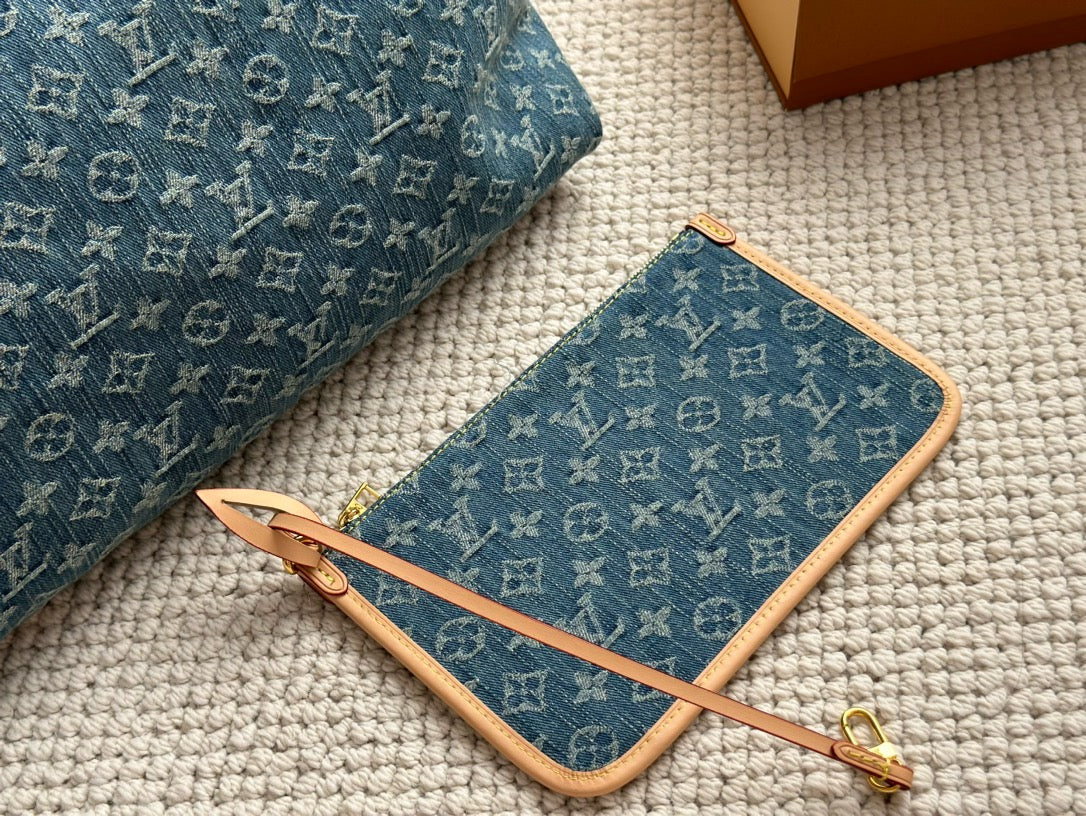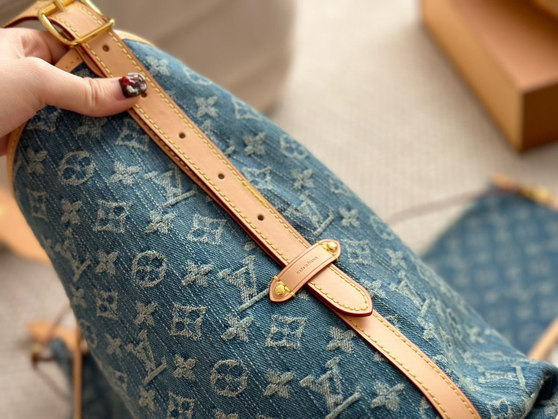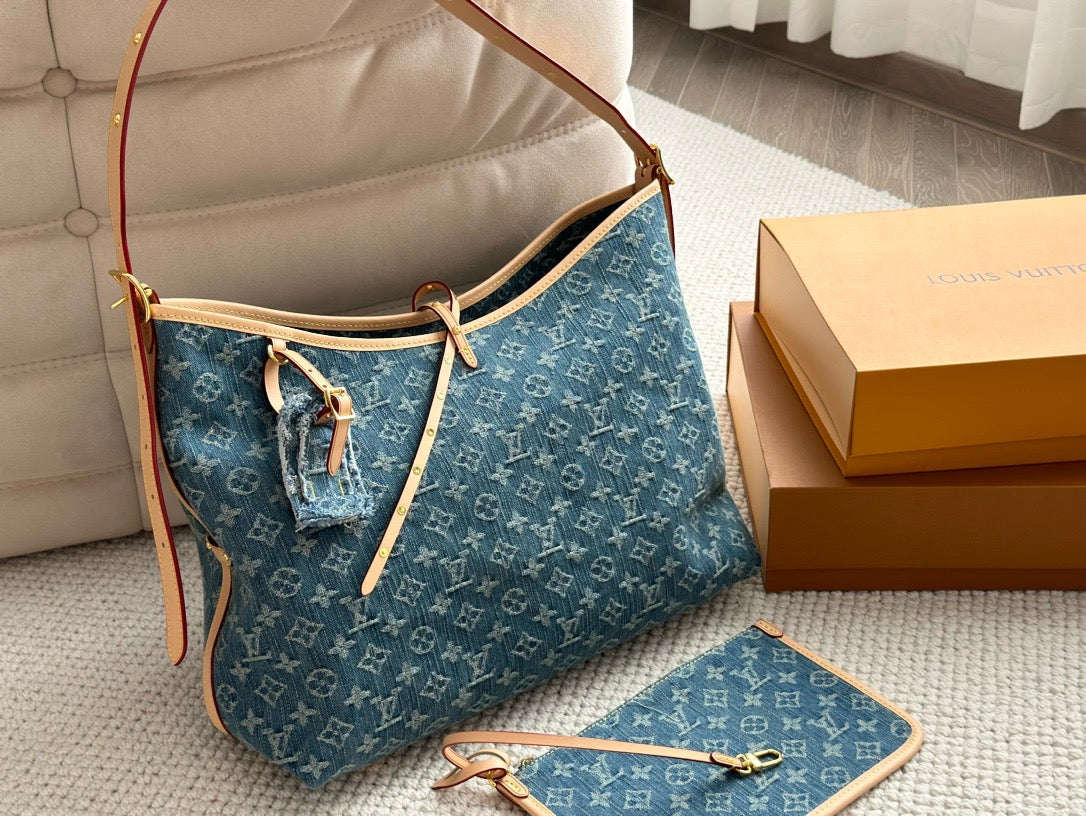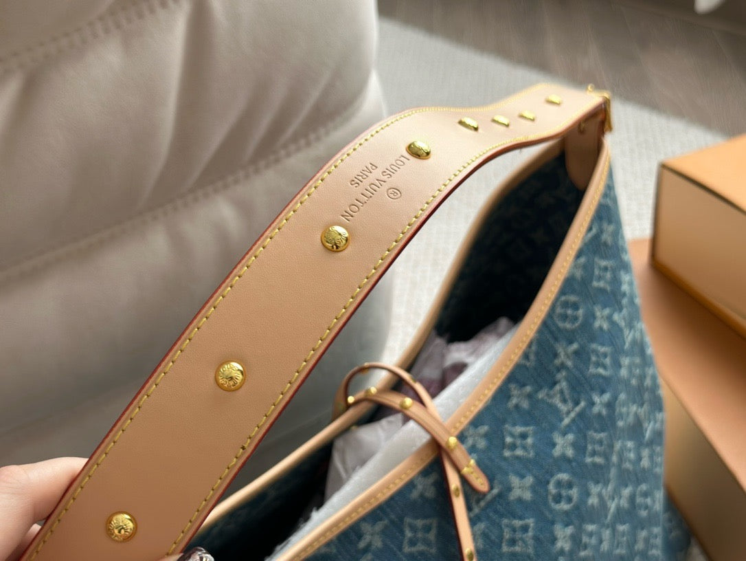 The roomy Carryall MM bag in Monogram Denim canvas with natural cowhide-leather trim combines style with functionality. The body-friendly design and spacious interior make it a versatile everyday bag. There’s an inside zipped pocket and a leather drawstring, in addition to the magnetic closure. The adjustable shoulder strap enables a comfortable carry.