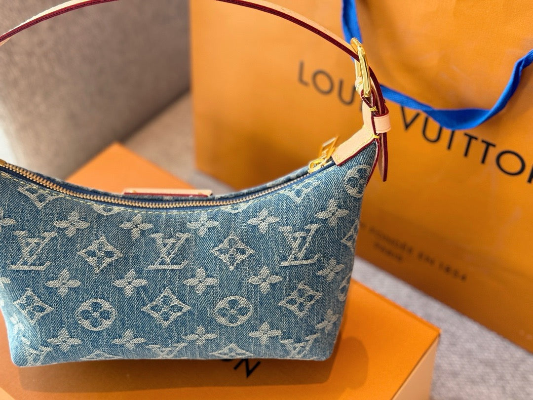 Fashioned from Monogram Denim, the Hills Pochette is made with certified organic cotton. The Monogramed denim, with its stone-washed feel, perfectly complements the lines of this small bag. The adjustable shoulder strap enables comfortable short-shoulder carry. The Hills Pochette fits an iPhone as well smaller items such as a card holder, lipstick, and keys.