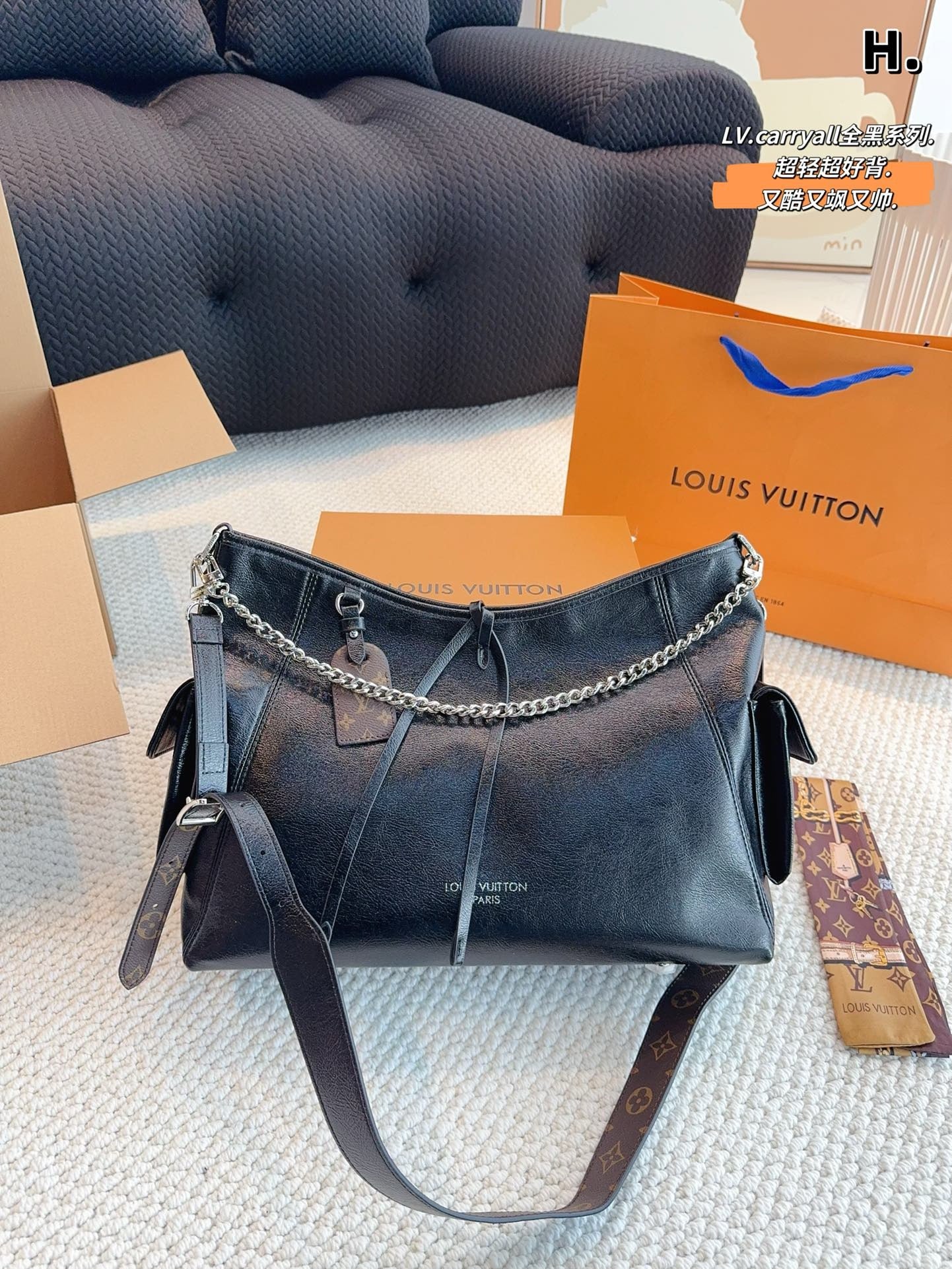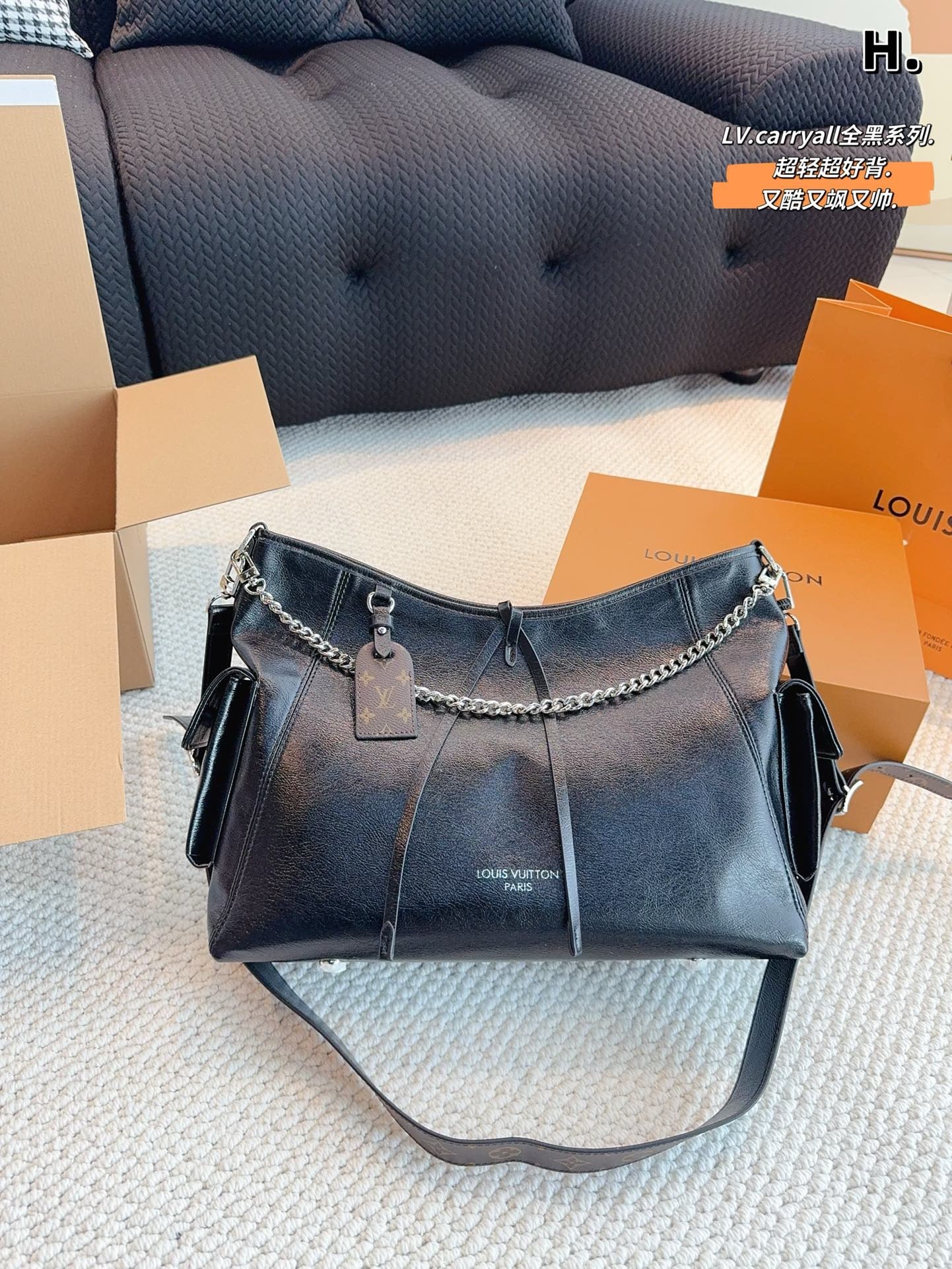 With its dark allure and slouchy silhouette, the CarryAll Cargo PM handbag is crafted from ultra-soft lambskin with a cool, slightly “rumpled” aspect and is accented with polished palladium-finish hardware. This day-to-evening piece offers great styling potential, thanks to a removable strap and a chic, detachable chain.