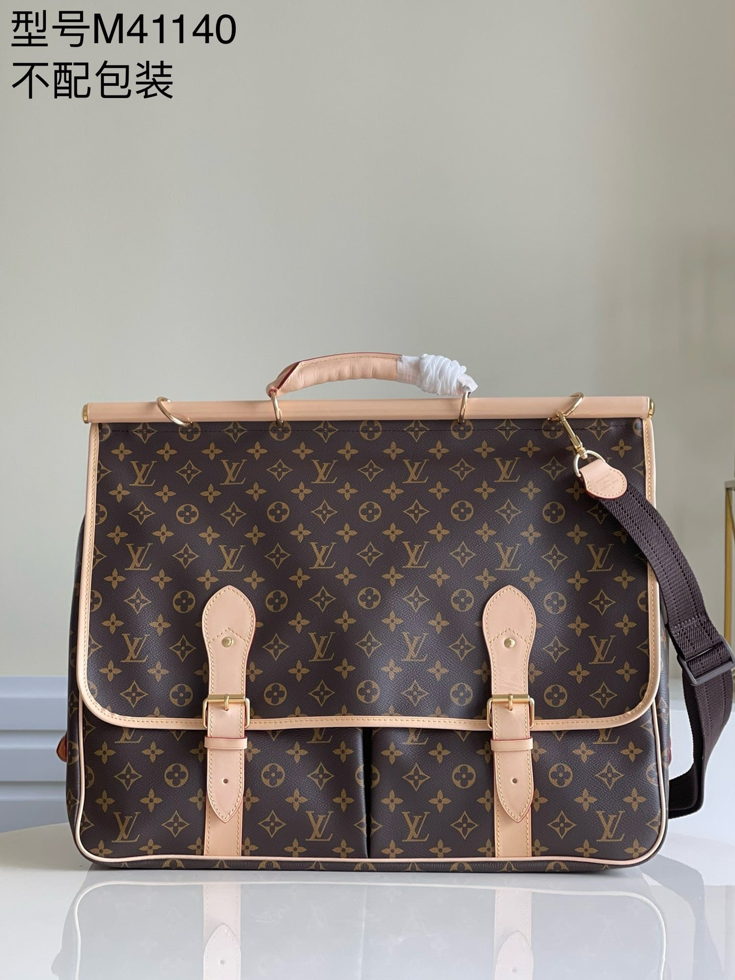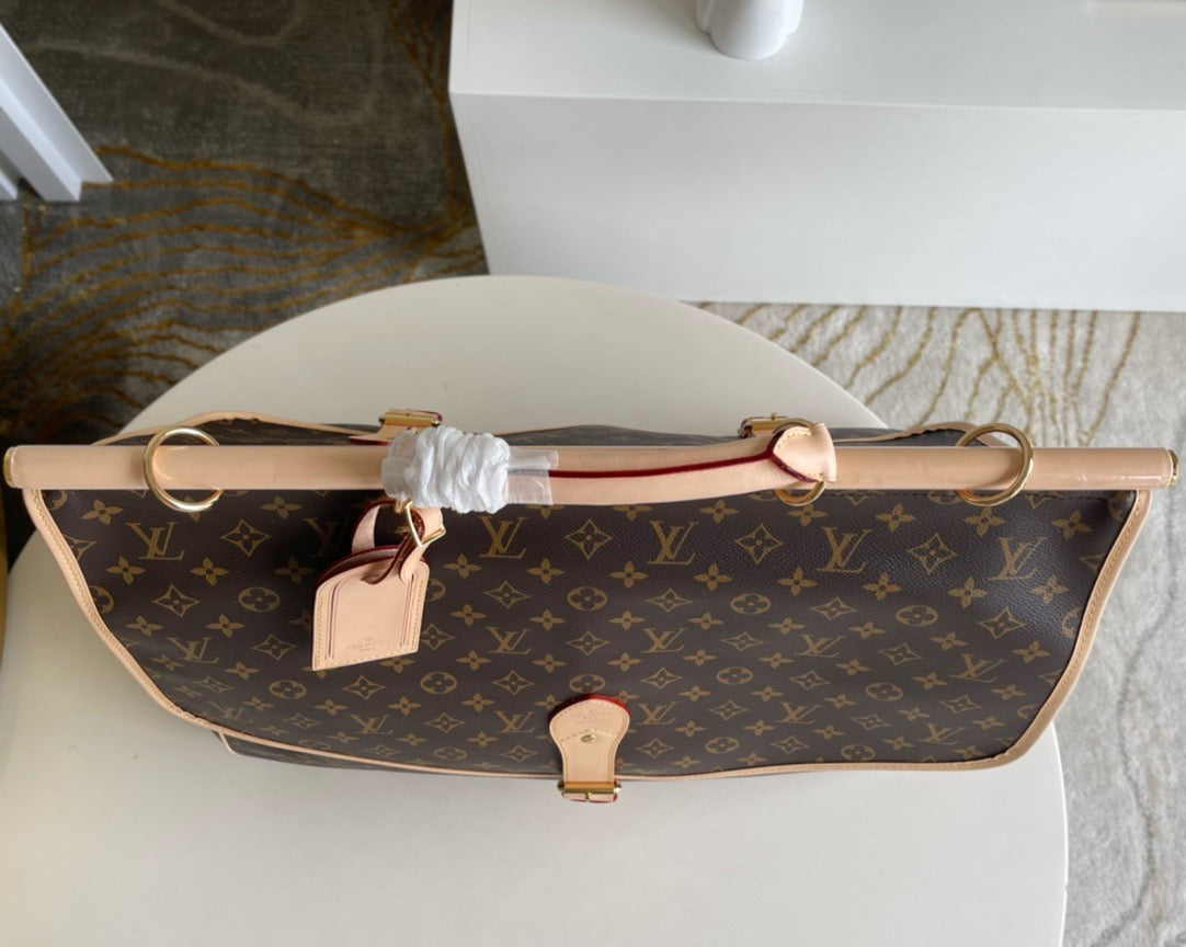 The hunting bag in Monogram canvas boasts two inside compartments. It features comfortable leather handles and a detachable shoulder strap.
